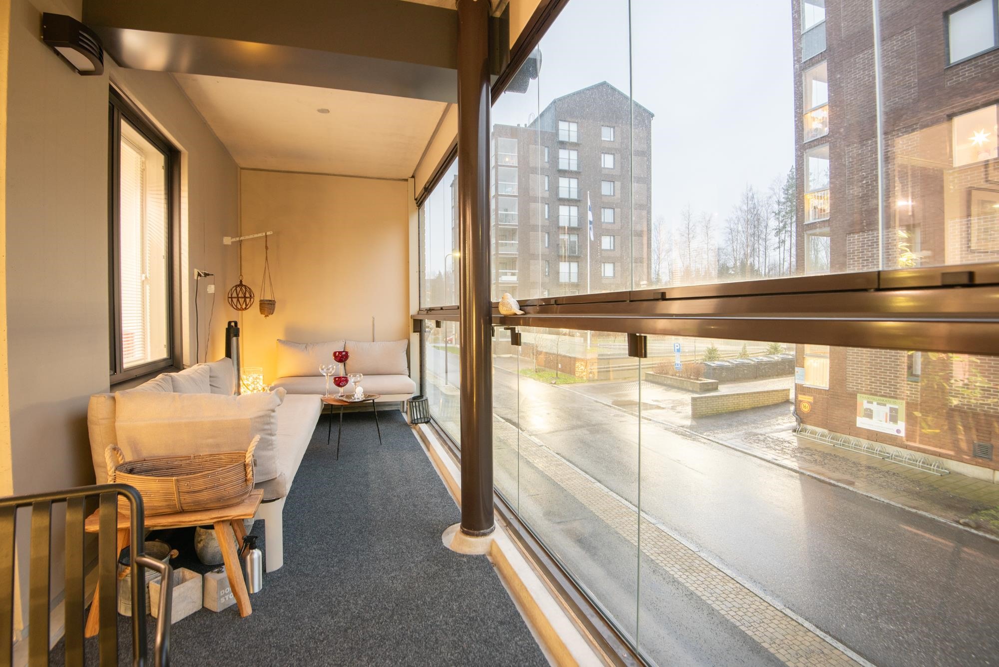 - Erittäin tilava lasitettu parveke.