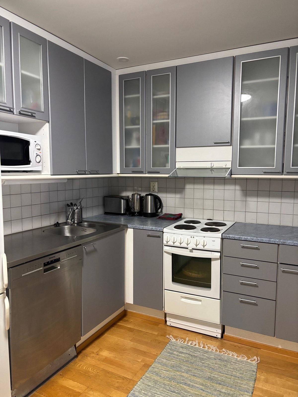- Jääkaappipakastin, sähköliesi, liesituuletin, astianpesukone, kaapistot, kiinteät valaisimet.