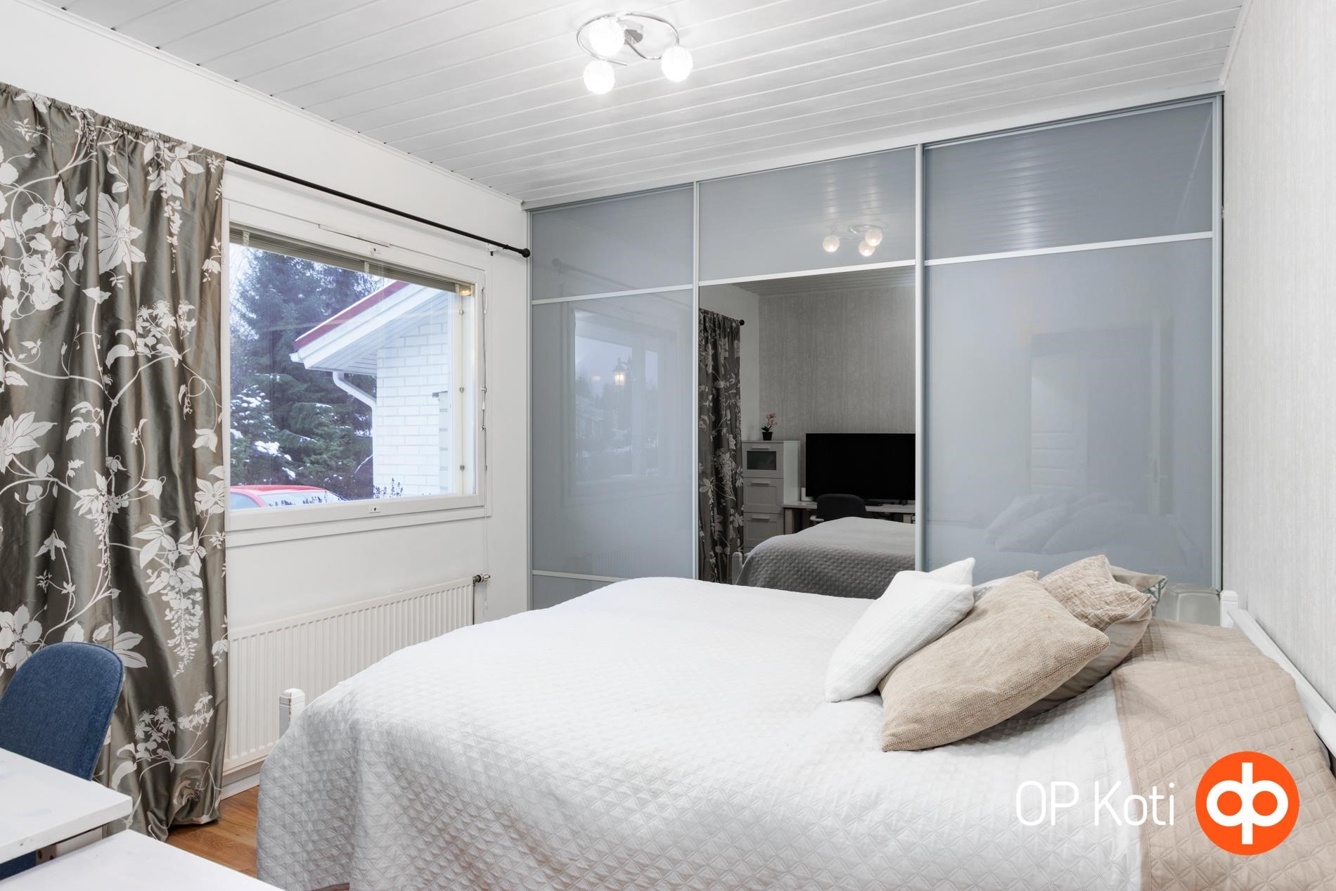 Keittiö: parkettilattia, maaliseinät. Olohuone: parkettilattia, tapettiseinät. Makuuhuone 1: laminaattilattia, tapettiseinät. Makuuhuone 2: laminaattilattia, tapettiseinät. Makuuhuone 3: laminaattilattia, tapettiseinät. Kodinhoitohuone: laattalattia, laattaseinät. Sauna: laattalattia, paneeliseinät. Kylpyhuone: laattalattia, laattaseinät. Eteinen: parkettilattia. Wc: laattalattia, osalaatoitus/ maali.