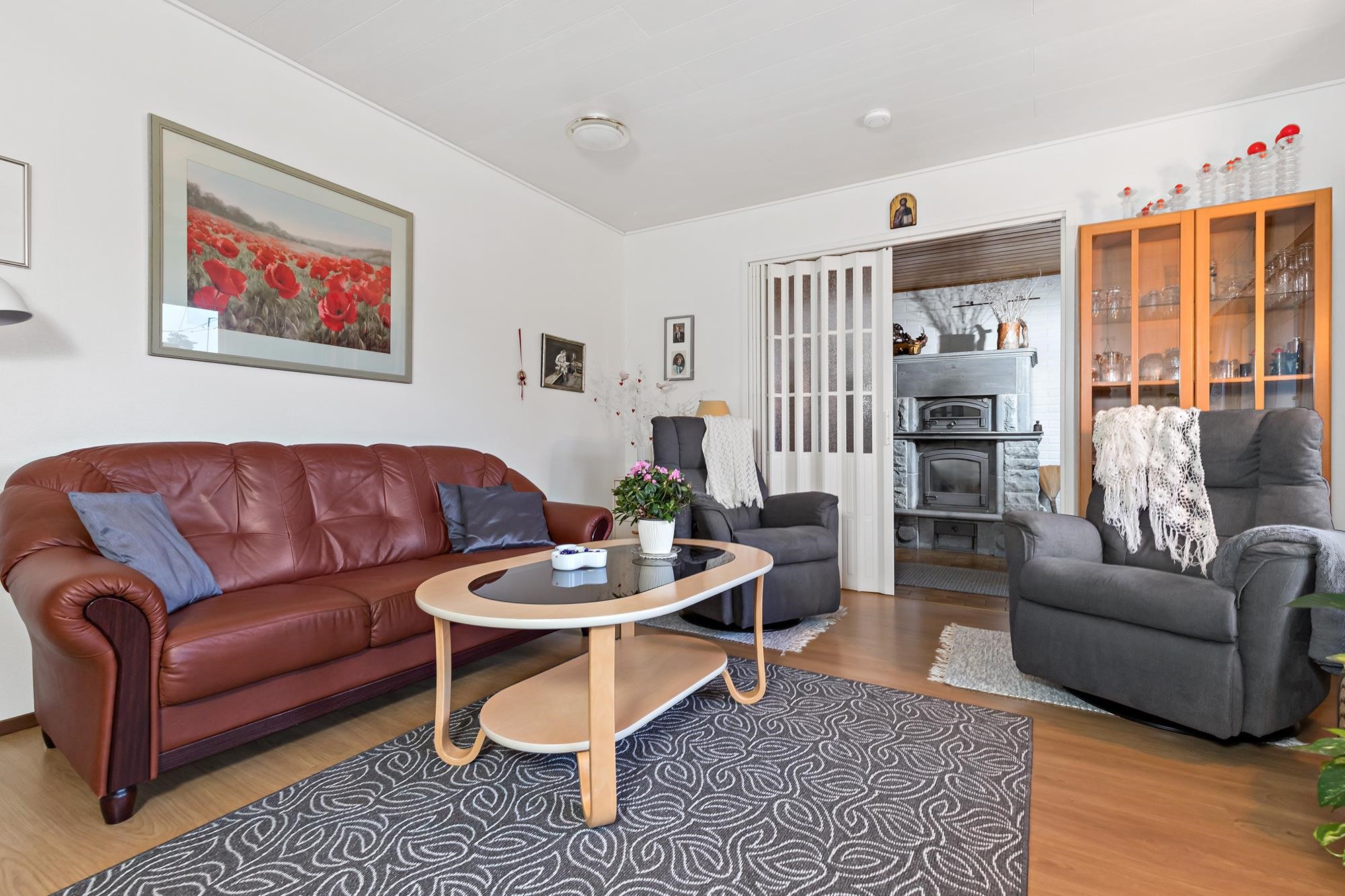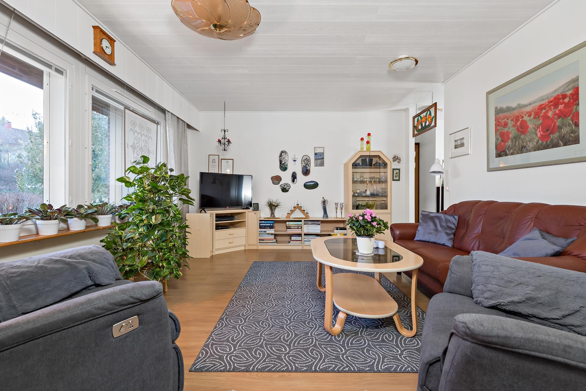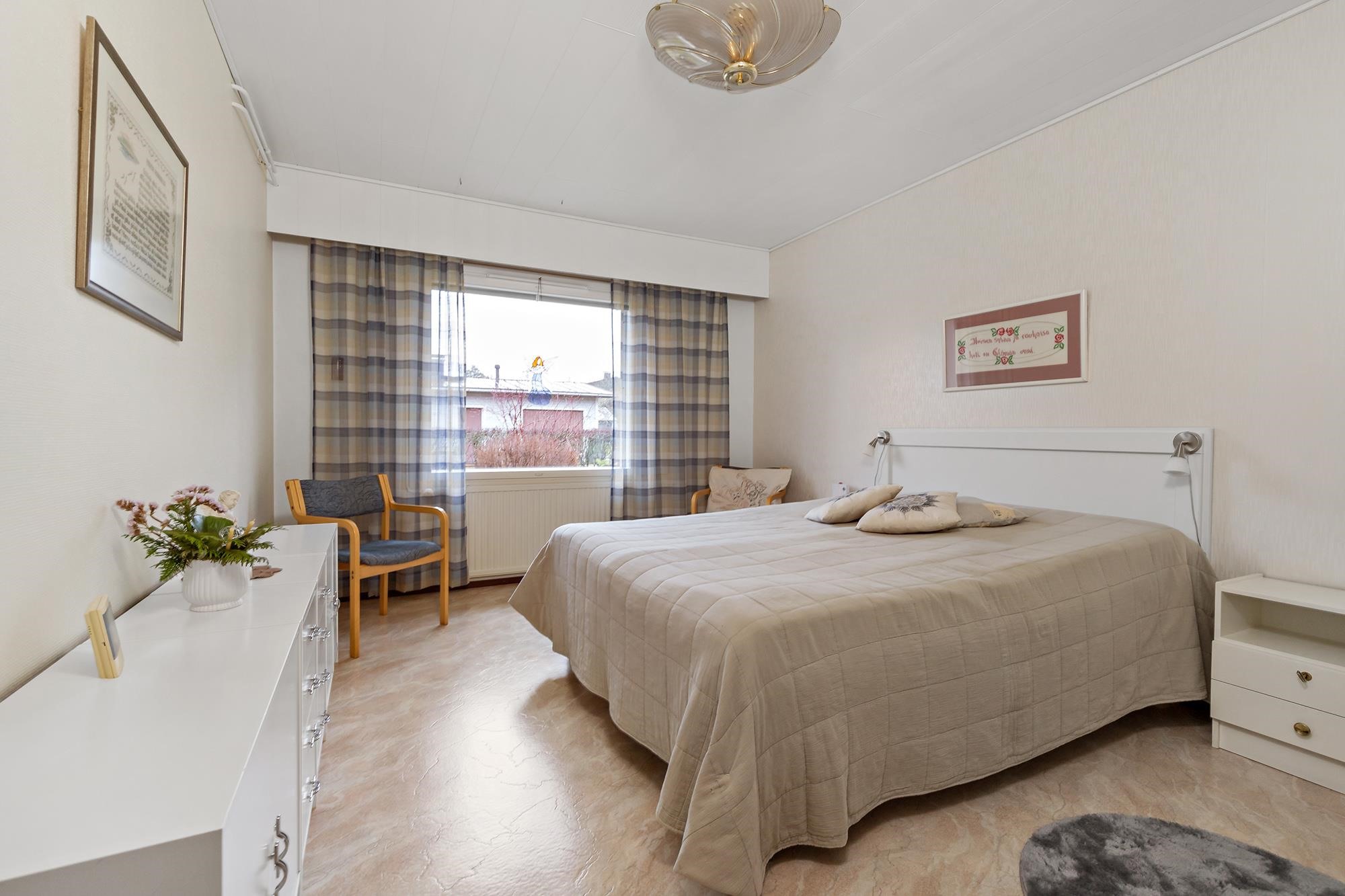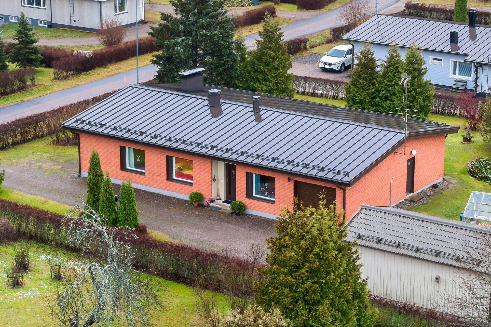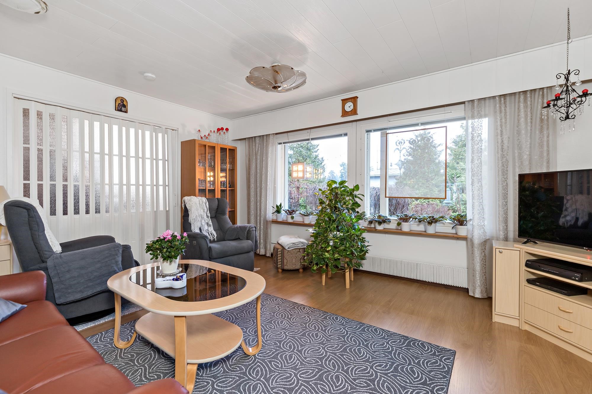 Tervetuloa tutustumaan tähän siistiin ja erittäin hyvin pidettyyn omakotitaloon, joka sijaitsee tasaisella ja vehreällä puutarhatontilla rauhallisella asuinalueella ilman läpiajoliikennettä. Taloa on remontoitu runsaasti vuosien varrella, ja siitä on pidetty erinomaista huolta. Kodissa on toimiva ja viihtyisä pohjaratkaisu. Takkahuoneesta on suora käynti suojaisalle sisäpihan patiolle, joka kutsuu nauttimaan kesäpäivistä ja rauhallisesta pihapiiristä. Monipuolista säilytys- ja harrastetilaa tarjoavat varastot sekä talouskellari yhden varaston alapuolella. Pihapiiri tarjoaa erinomaiset puitteet viherpeukalolle, kasvihuone on valmiina ja kastelukaivo helpottaa puutarhan hoitoa. Lisäksi pihalta löytyy erillinen autotalli. Tämä koti sopii erinomaisesti sinulle, joka arvostat rauhallista sijaintia, huolellisesti hoidettua kotia ja toimivia säilytysratkaisuja.