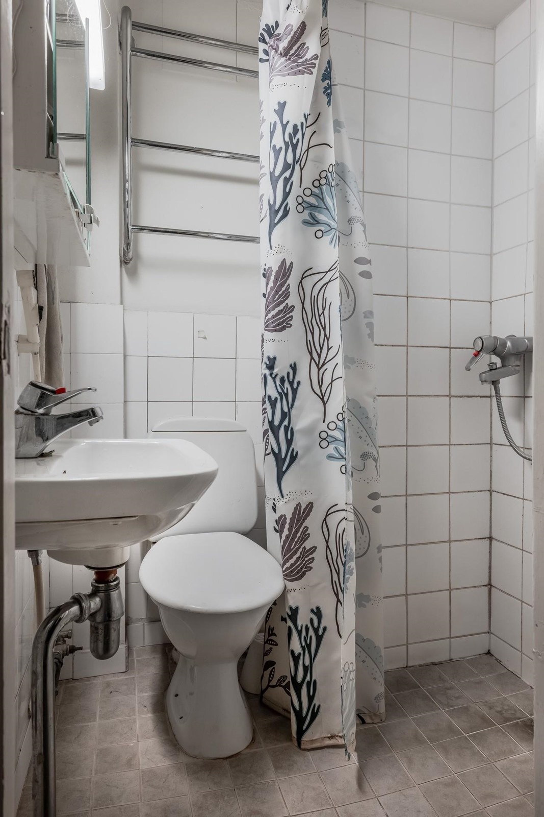 - Kylpyhuone, suihku, peilikaappi, lattialämmitys (sähkö).