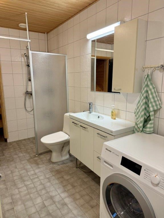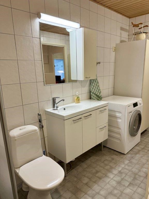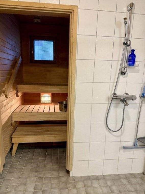 - Sauna, sähkökiuas, suihku, suihkuseinä, peilit, peilikaappi, kaapit, allaskaappi, pesukoneliitäntä, lattialämmitys, kiinteät valaisimet. Allaskaappi ja peilin valaisin uusittu 2019