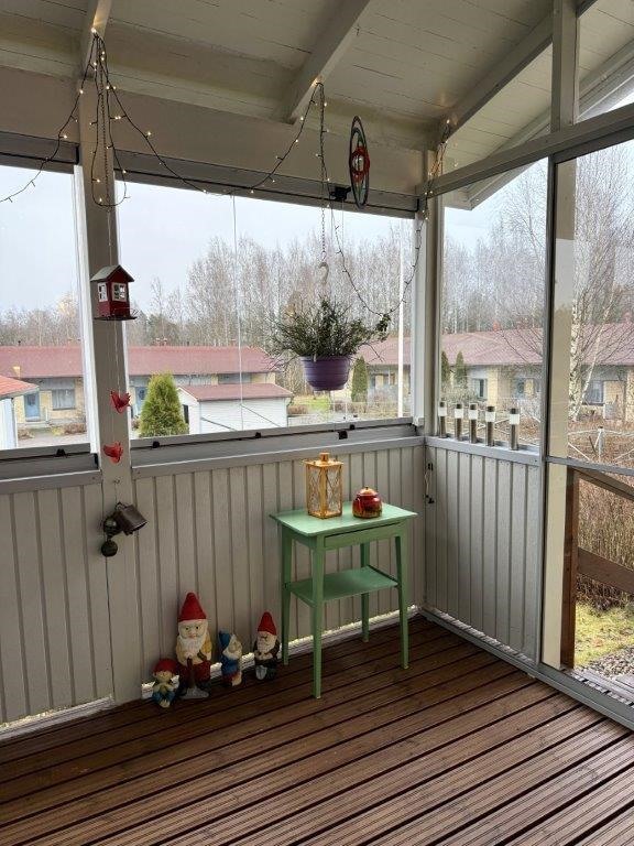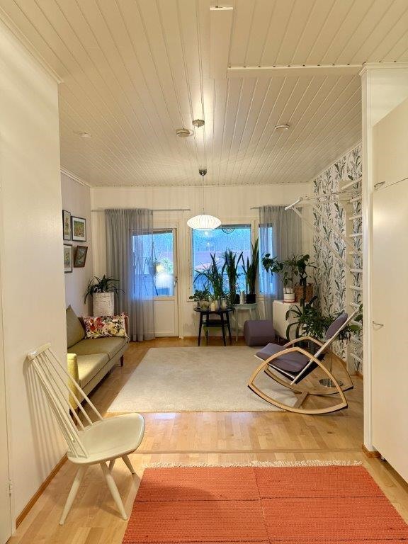 Tervetuloa tutustumaan tähän valoisaan ja viihtyisään rivitalon päätyhuoneistoon Vääksyn keskustan tuntumassa! Keittiö on varustettu kaikilla arjen mukavuuksilla, mukaan lukien astianpesukone. Olohuoneesta avautuu kulku lasitetulle kuistille, joka tarjoaa lisää tilaa ja suojaa säältä. Lisäksi asunnossa on tilava kylpyhuone ja oma sauna, jotka tuovat arkeen ripauksen luksusta. Tämä koti tarjoaa helppoa ja mukavaa asumista rauhallisella, vehreällä alueella, josta on erinomaiset liikenneyhteydet ja lyhyt matka palveluiden äärelle. Tule paikan päälle tutustumaan ja ihastumaan!