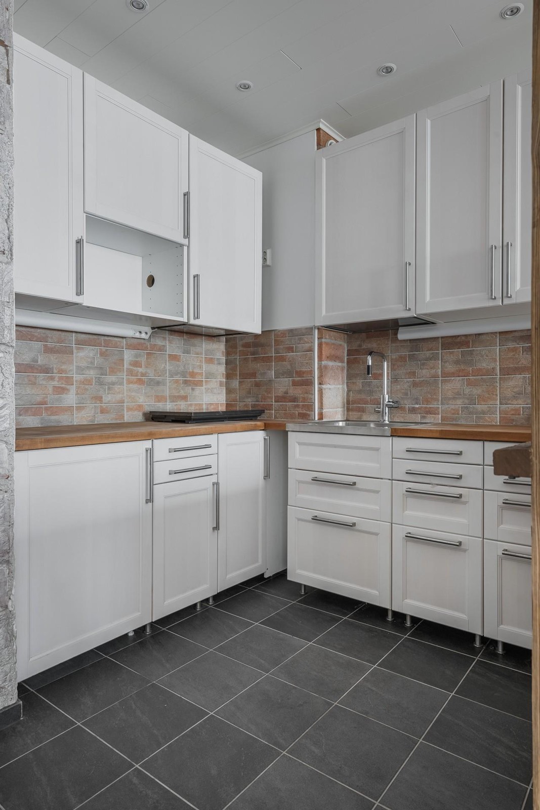 - Jääkaappipakastin, sähköliesi Erillinen pöydällä, kaapistot, kiinteät valaisimet.