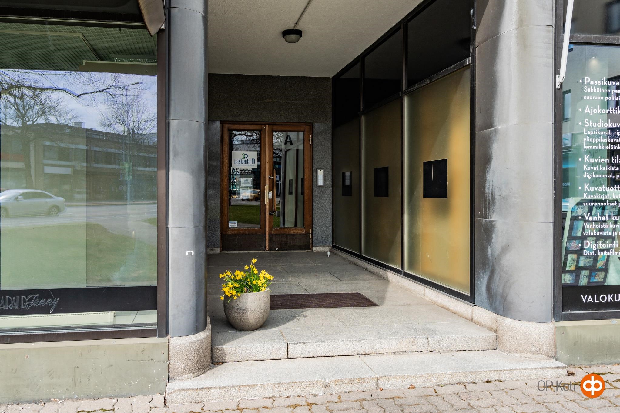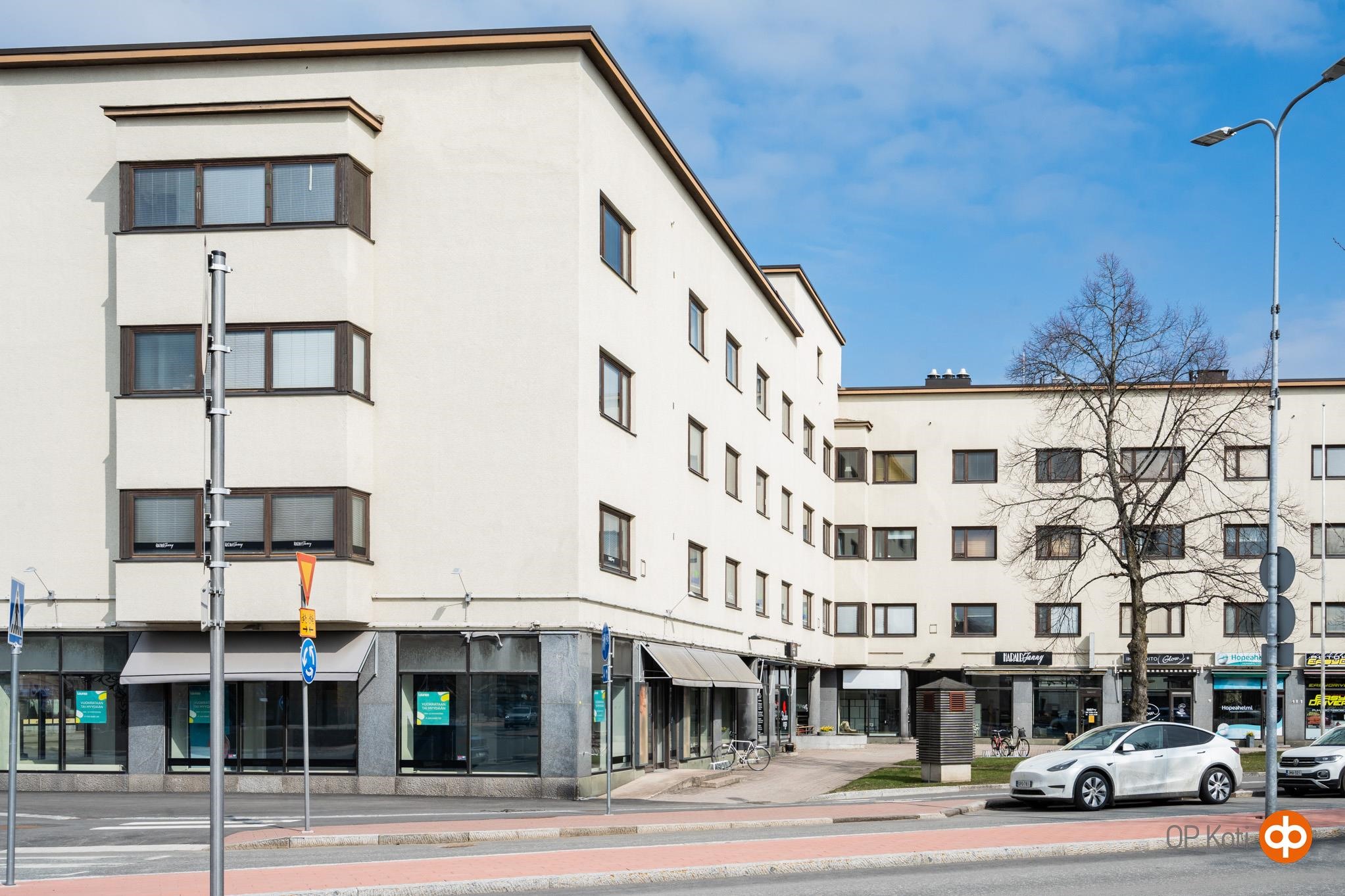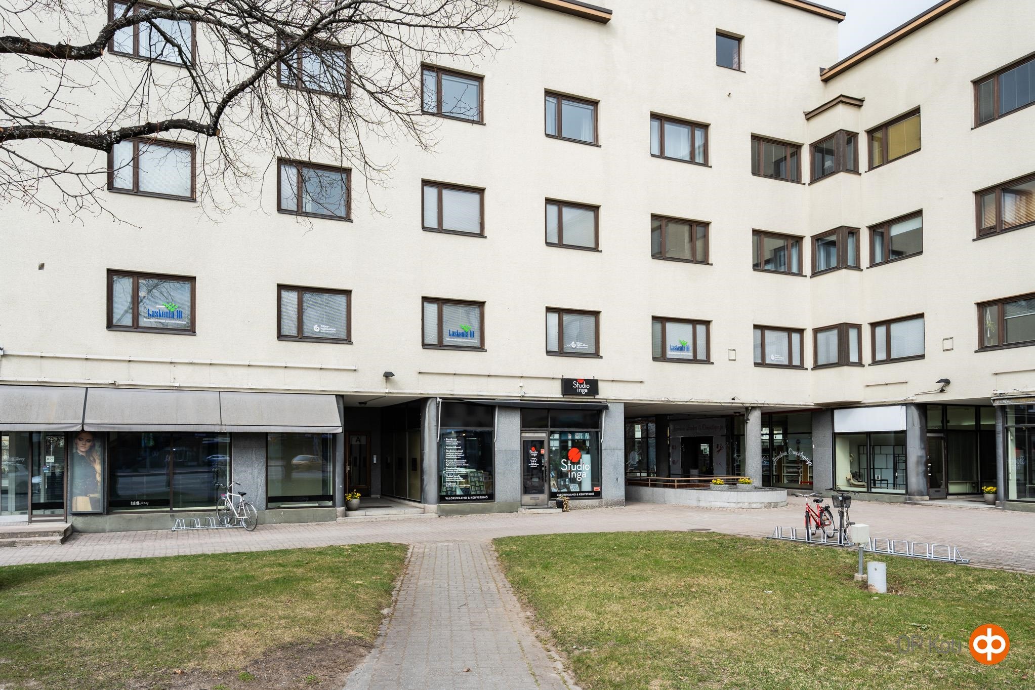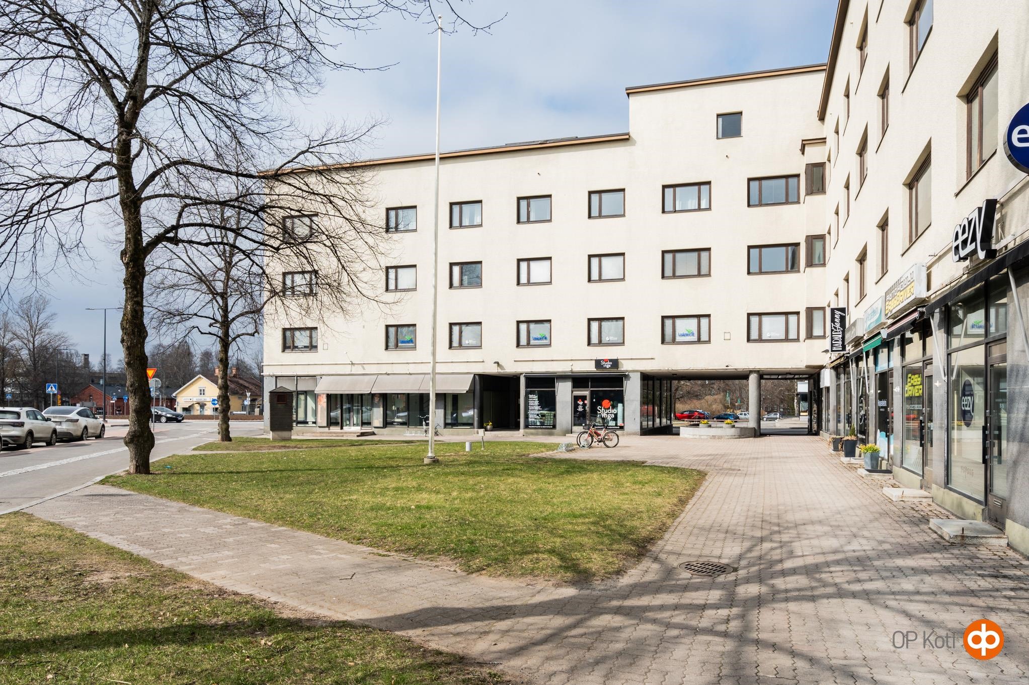 Hissitalon kerrostalokaksio kaupungin ydinkeskustasta.