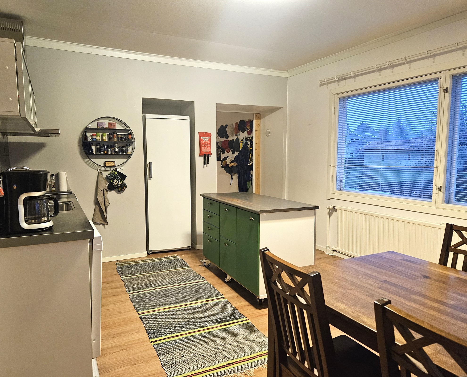 - Jääkaappi, keraaminen liesi, liesituuletin, astianpesukone, kaapistot.