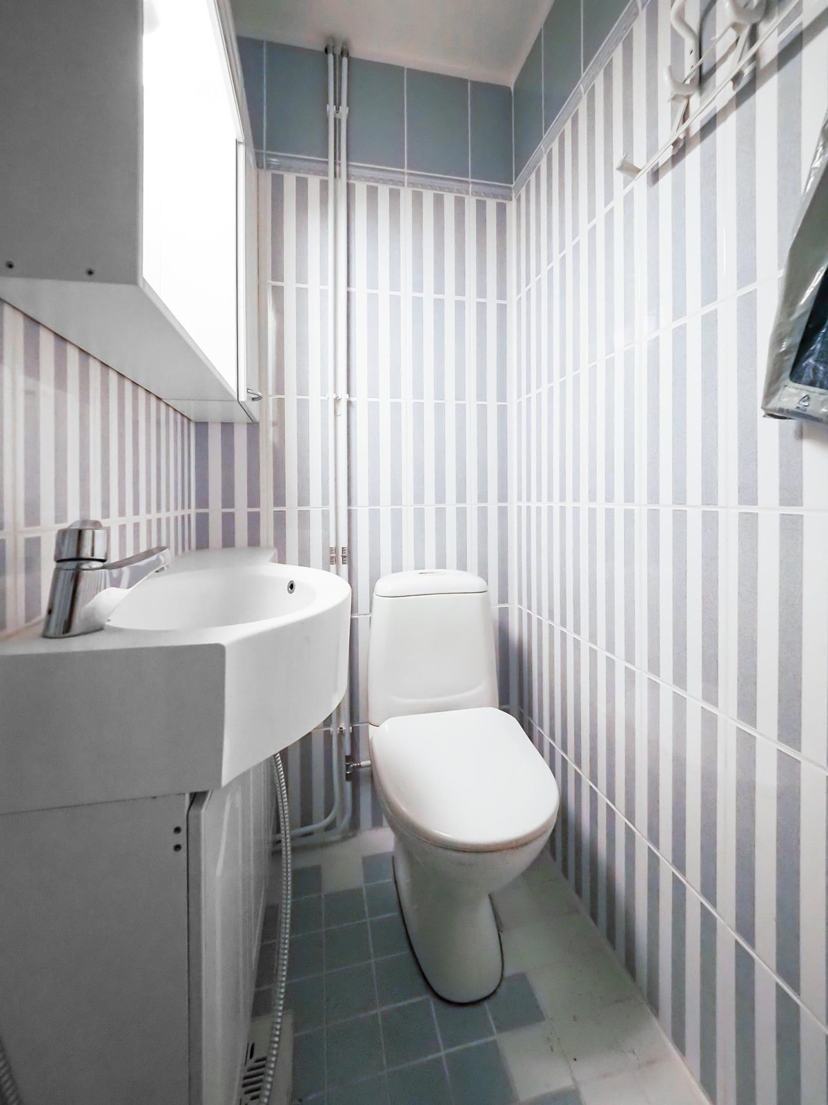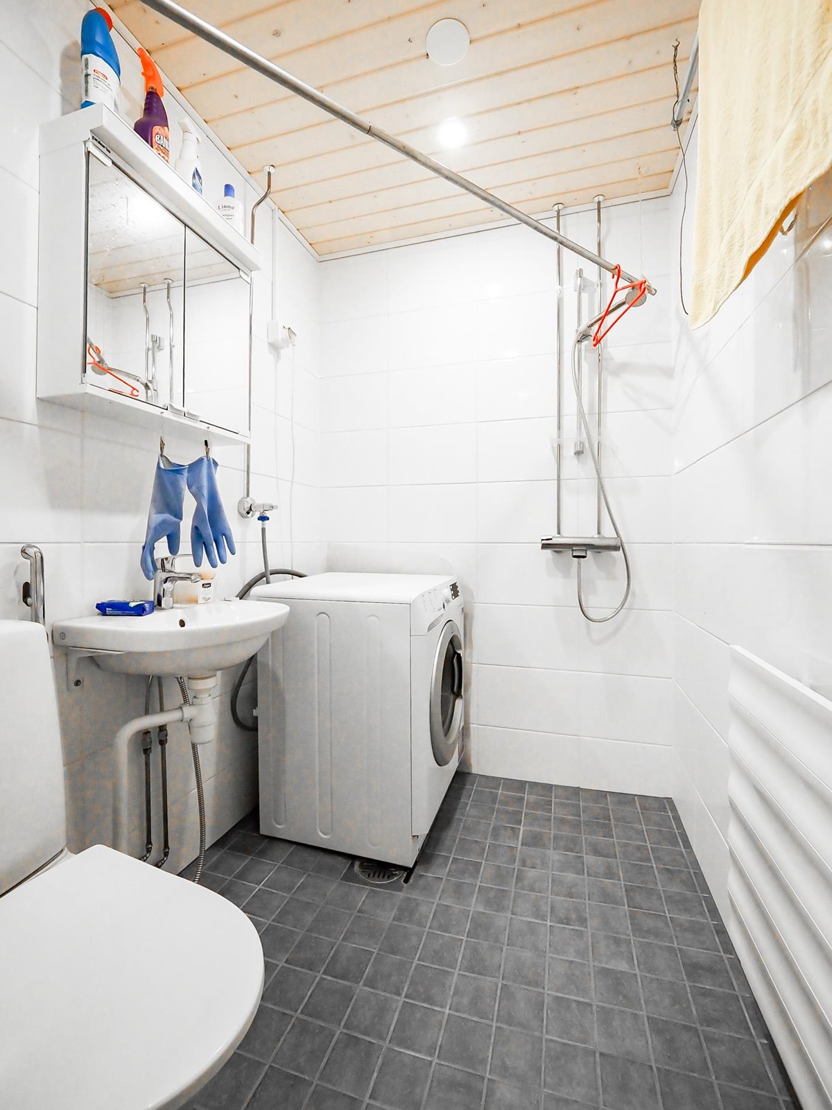- Kylpyhuone, erillinen wc, suihku, peilikaappi, allaskaappi, pesukoneliitäntä, kiinteät valaisimet. Kph uusittu 2018