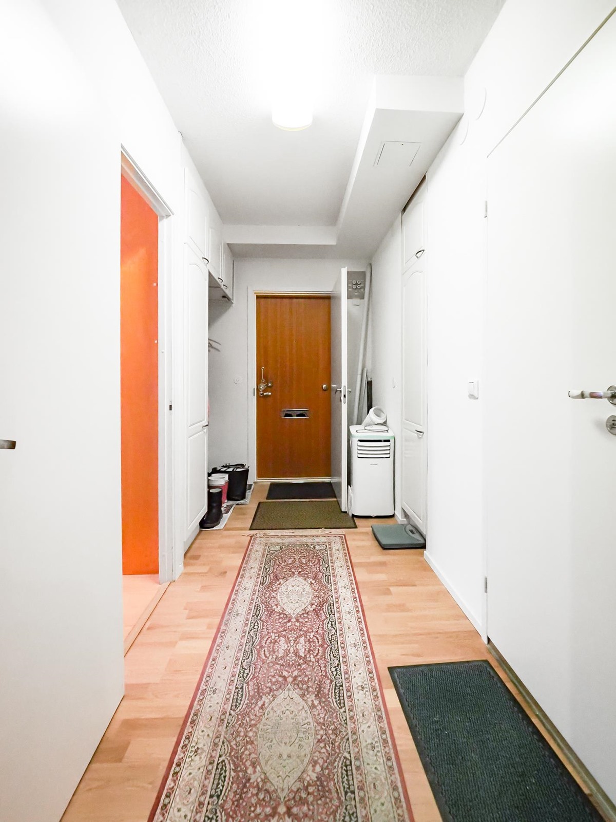 Keittiö: Seinät maalattu, parkettilattia. Olohuone: Seinät maalattu, parkettilattia. Makuuhuone 1: Seinät tapetoitu, parkettilattia. Makuuhuone 2: Seinät tapetoitu, laminaattilattia. Kylpyhuone: Kaakeloitu. Eteinen: Seinät maalattu, laminaattilattia. Wc: Kaakeloitu.