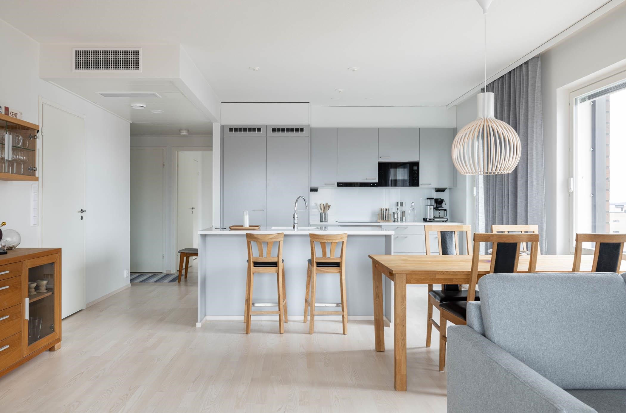 - Keskitetty koneellinen tulo ja poisto, LTO. Huoneistokohtainen jäähdytys.