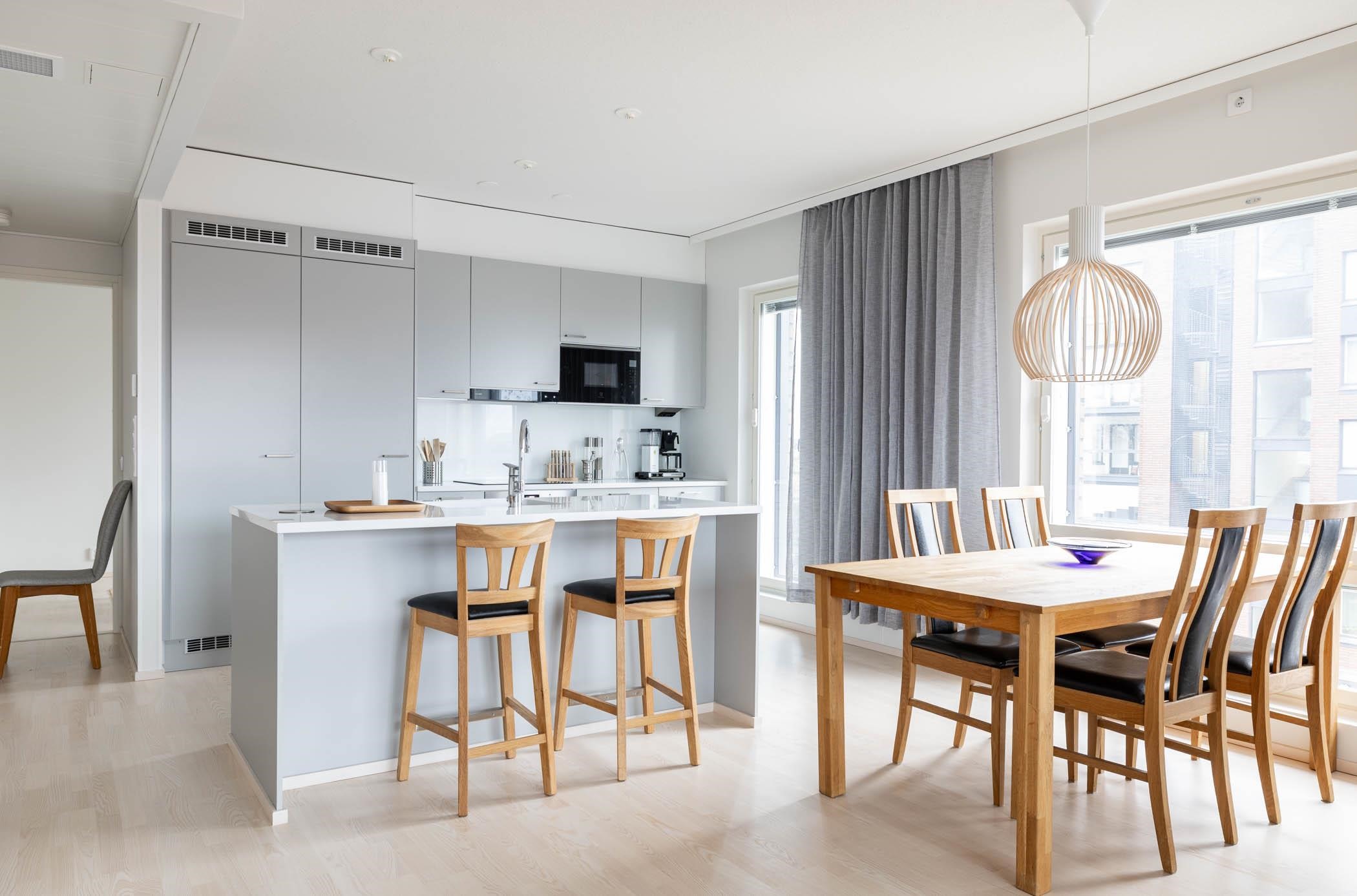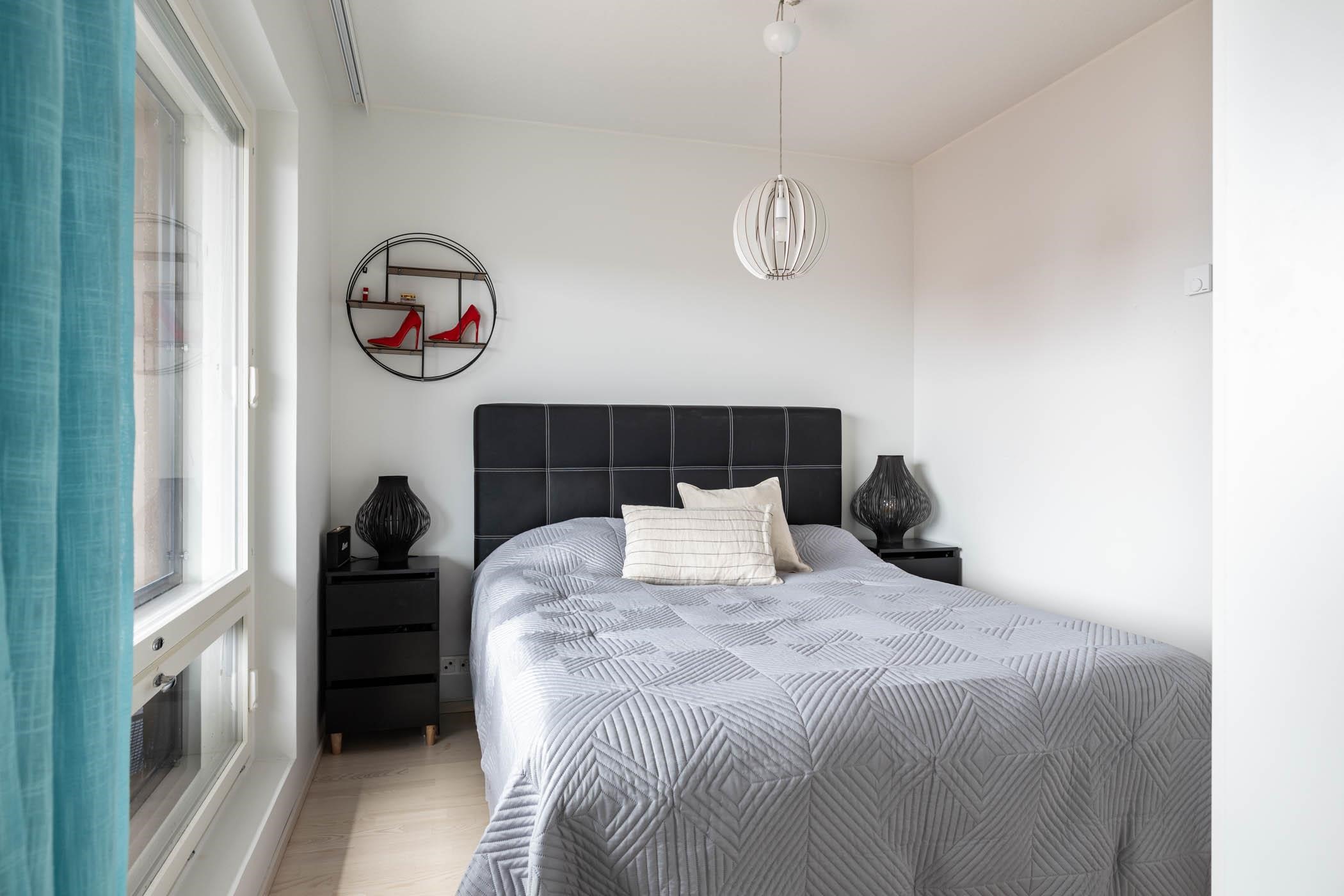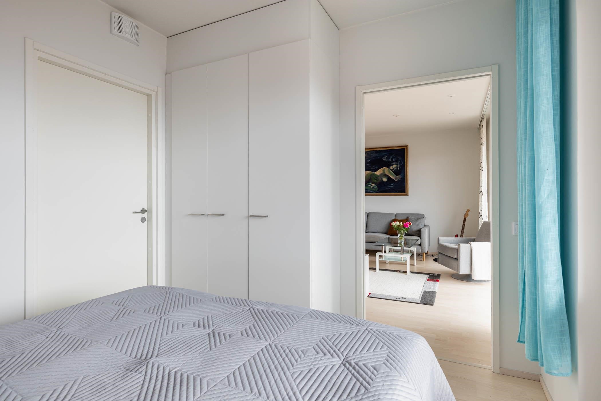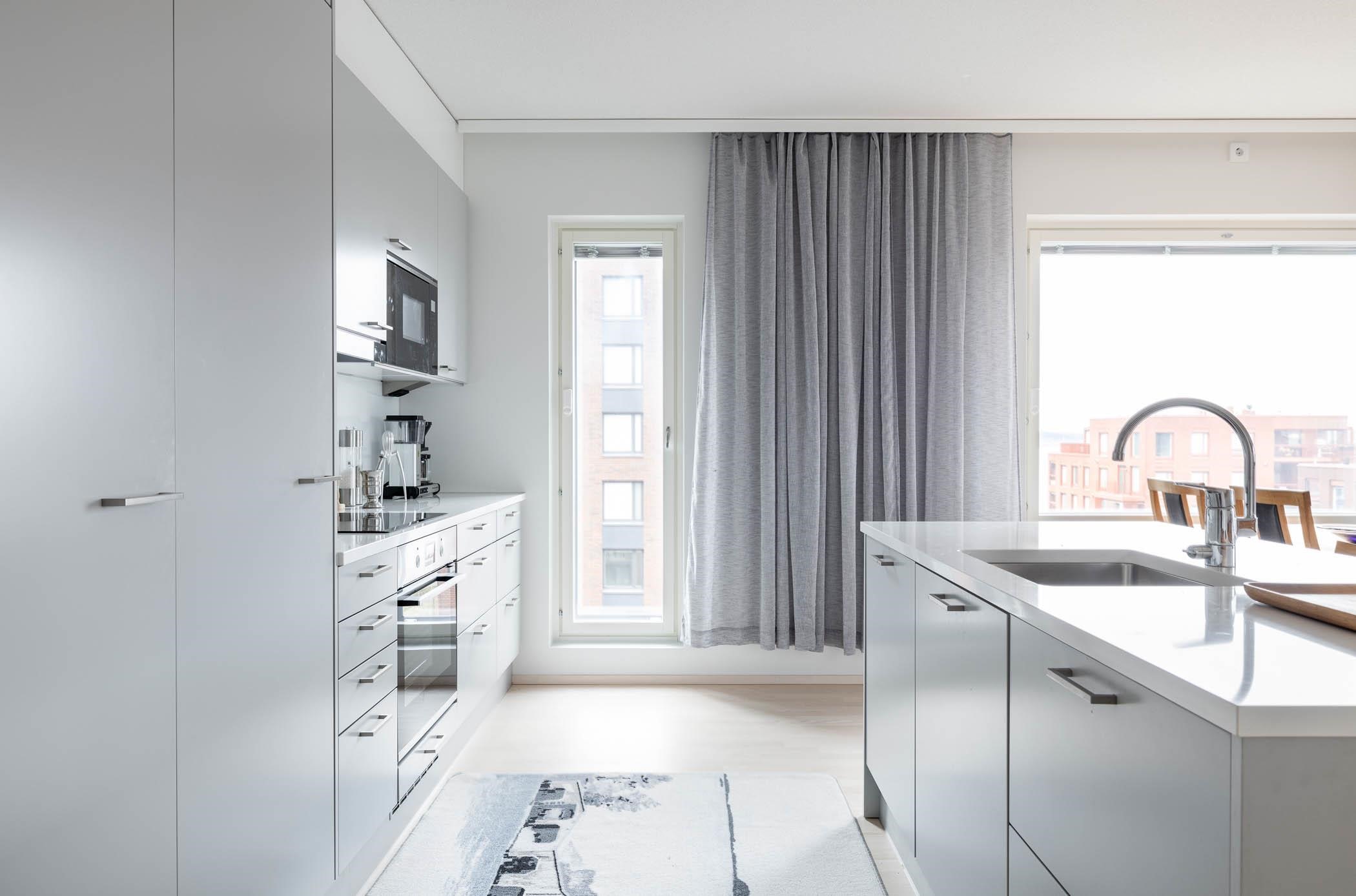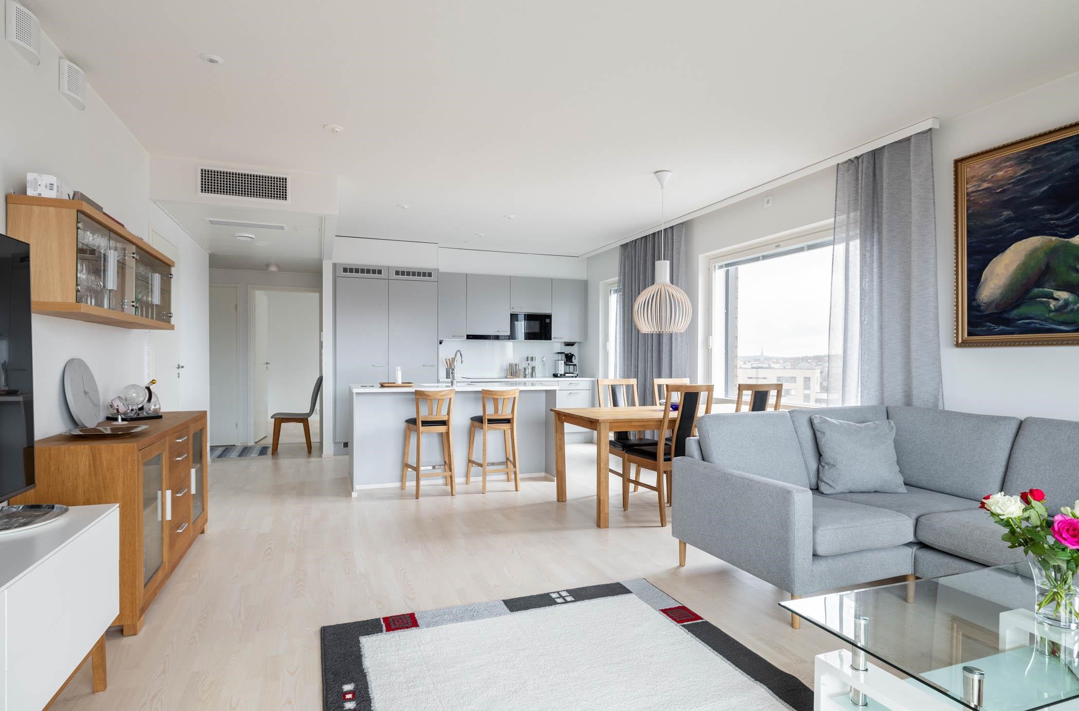 Tämä 84 m²:n kolmio on suunniteltu tyylikkäästi ja käytännöllisesti. Pohjaratkaisu on toimiva, ja taipuukin monenlaiseen eri elämäntilanteeseen. Suuret ikkunat tuovat päivänvaloa asuntoon, ja parvekkeelta on mukava ihastella auringonlaskuja. Asuintilojen lämmönjako on toteutettu miellyttävällä vesikiertoisella lattialämmityksellä, ja kesähelteitä varten löytyy myös viilennys.