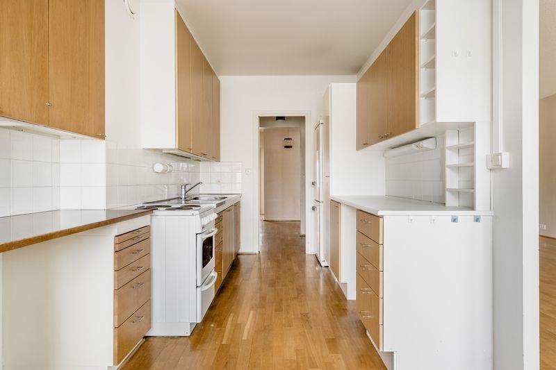 - Jääkaappipakastin, sähköliesi, kaapistot, kiinteät valaisimet.