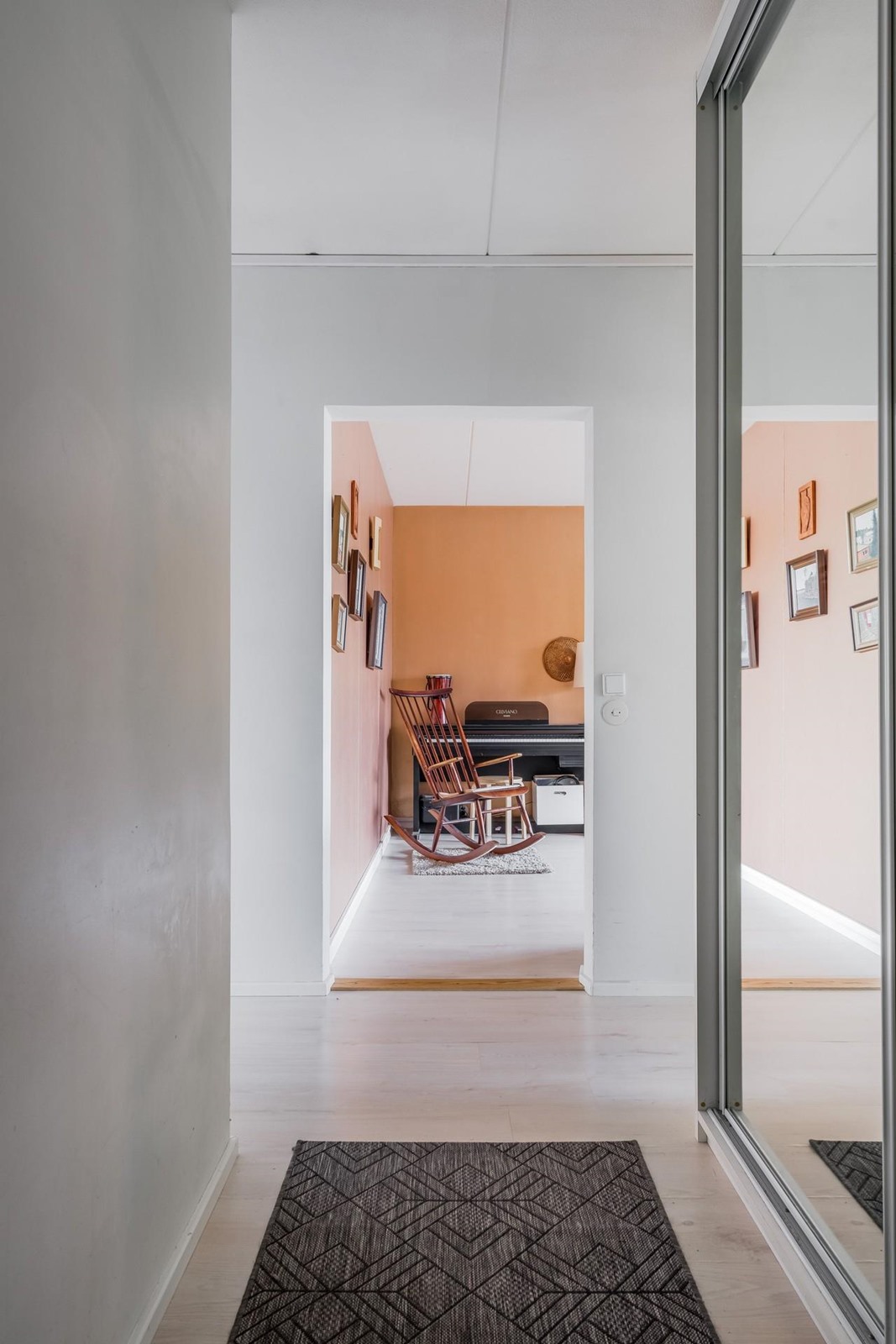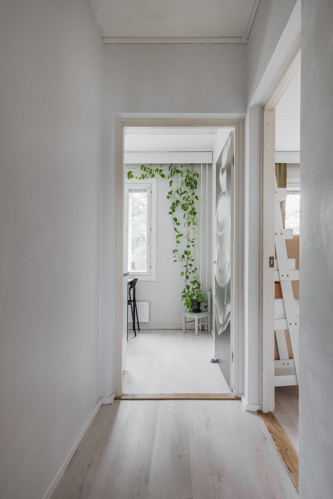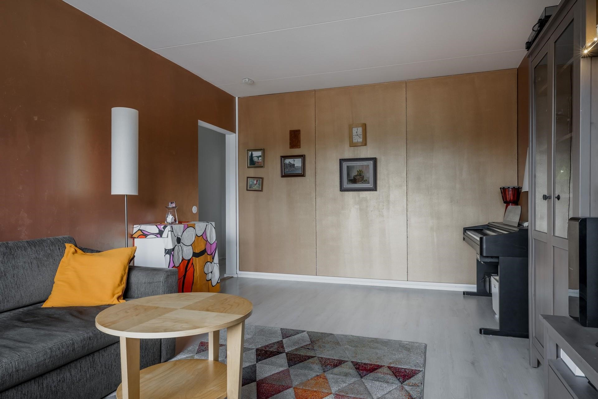 Keittiö: laminaatti lattia, maalatut seinät. Olohuone: laminaatti lattia,maalatut seinät. Makuuhuone 1: laminaatti lattia,maalatut seinät, yksi seinä tapetoitu. Makuuhuone 2: laminaatti lattia, maalatut seinät, yksi seinä tapetoitu. Eteinen: laminaatti lattia, maalatut seinät.