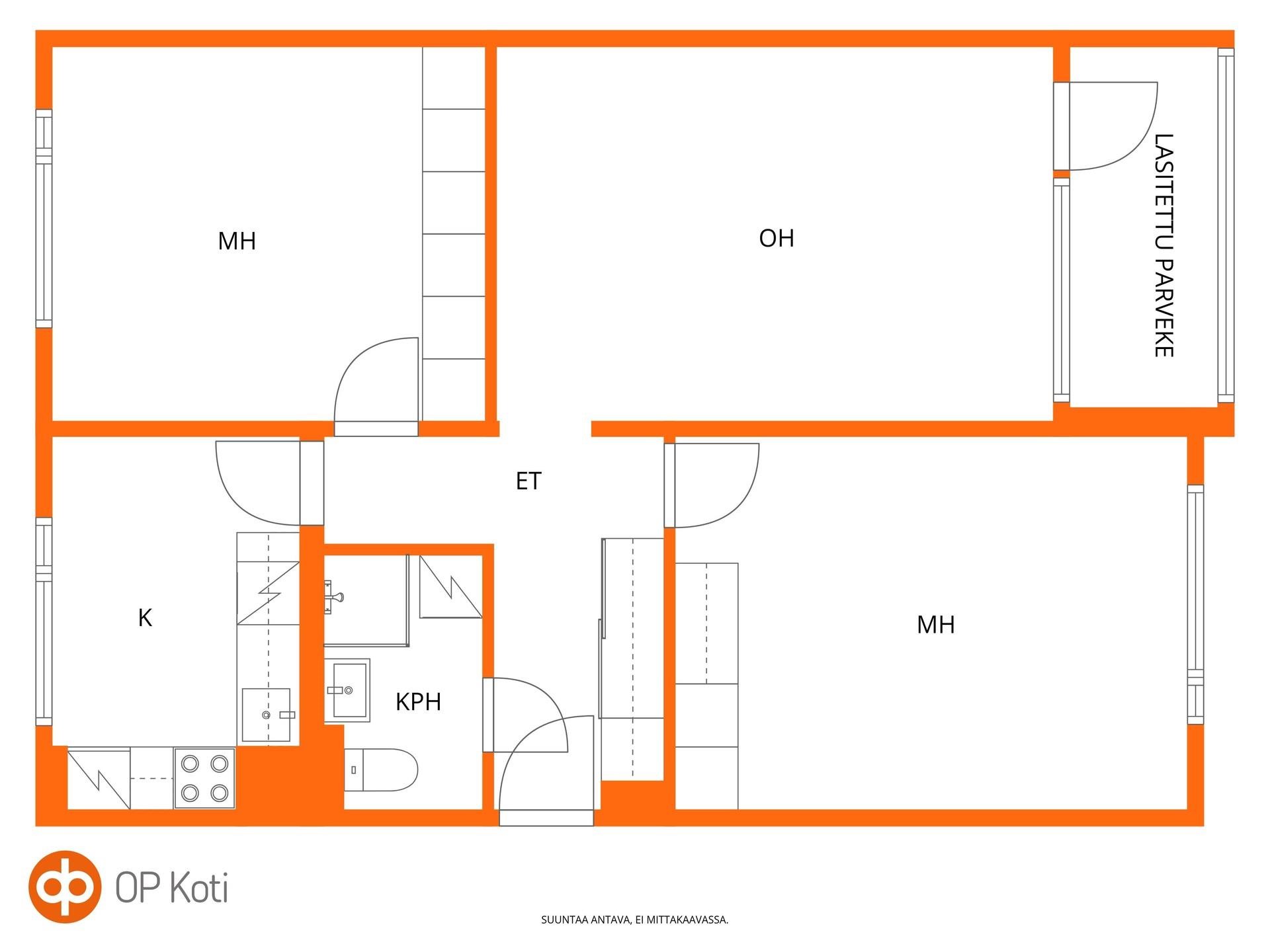 - 3h + k + kph + lasitettu parveke (yj. 3h + k)