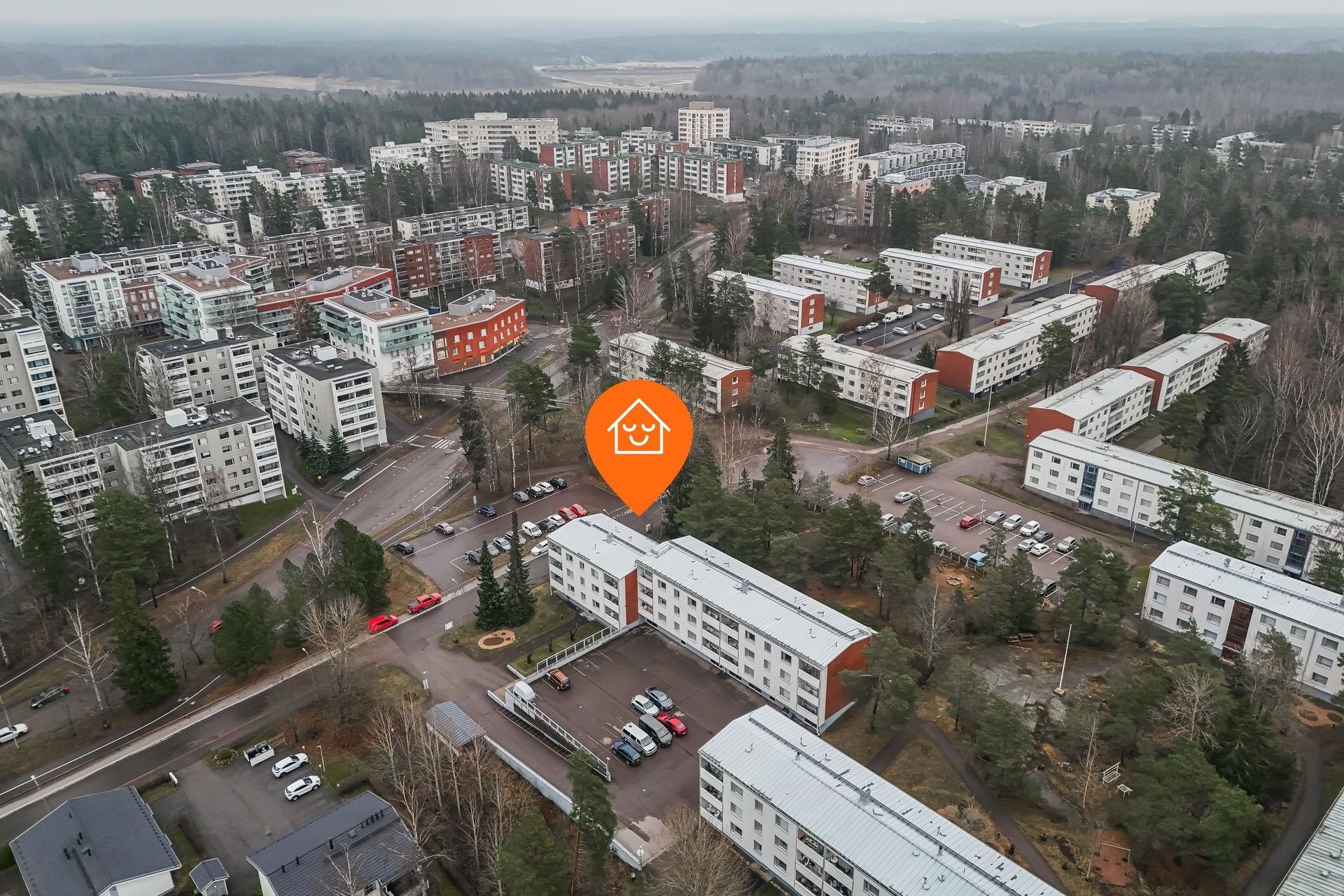 Hyvin hoidetussa taloyhtiössä on siistit saunatilat sekä pesula asukkaiden käytössä. Yhtiö sijaitsee omalla tontilla päättyvän tien varrella, mikä takaa rauhallisen asumisympäristön. Vehreä ja viihtyisä piha-alue kallioineen ja viheralueineen tarjoaa erinomaiset puitteet lasten leikeille ja vapaa-ajan viettoon.