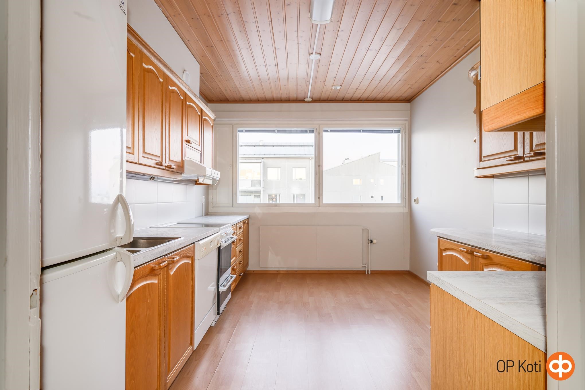 Tämä neljännen kerroksen huoneisto tarjoaa tilavat ja käytännölliset asuintilat - ylimmän kerroksen rauhallisuus ja näkymät etelään ja pohjoiseen tekevät siitä viihtyisän kodin. Asunnossa on erillinen keittiö, jossa on hyvin tilaa kaapistoille sekä ruokailuryhmälle. Pintaremontilla päivität keittiön tämän päivän vaatimusten mukaiseksi. Olohuoneesta pääset lasitetulle parvekkeelle, jossa voit nauttia etelän suunnan auringonsäteistä. Kylpyhuone ja sauna on remontoitu vuonna 2024, ja niiden nykyaikaiset materiaalit ja sähköinen lattialämmitys lisäävät asumismukavuutta.