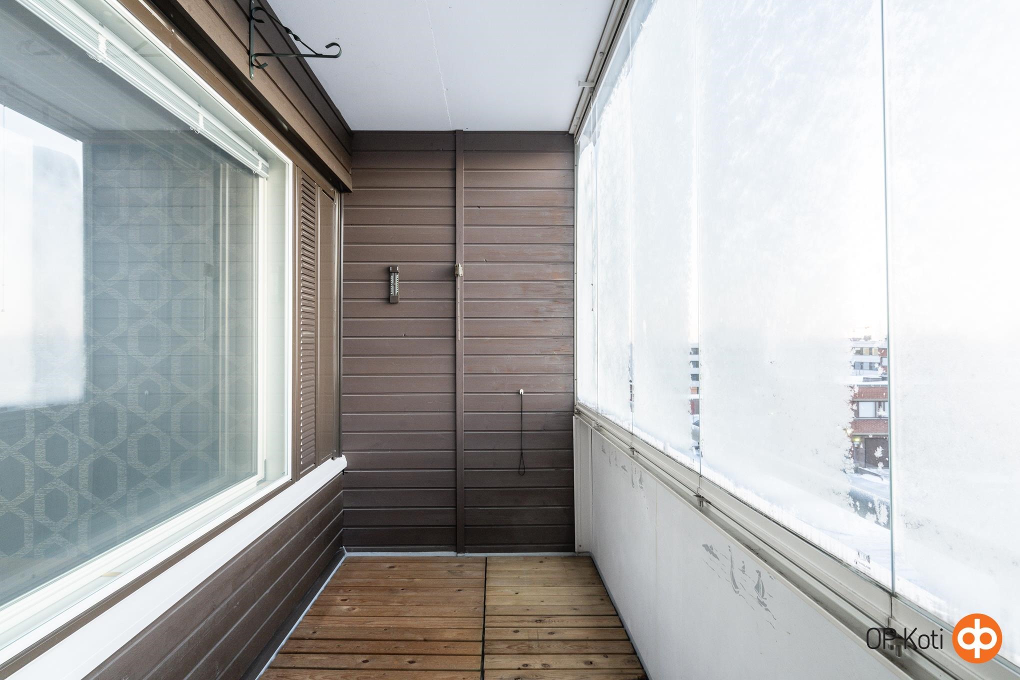 Ylimmän kerroksen valoisa huoneisto, jossa lasitettu parveke ja täysin remontoitu kylpyhuone ja sauna. Keskeinen sijainti, keskustan palvelut kävelyetäisyydellä.