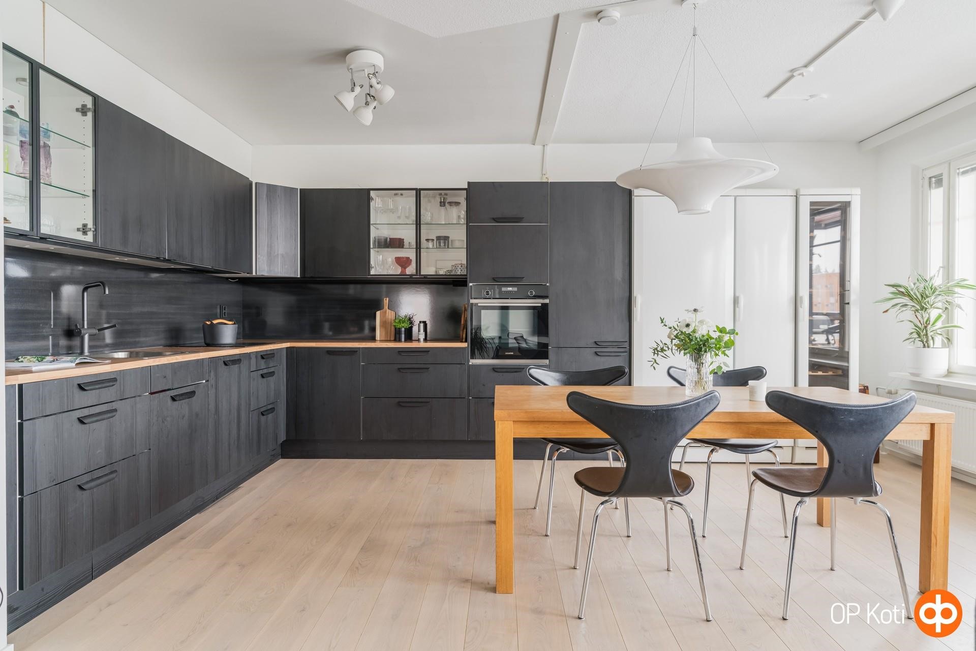 Tervetuloa ihastumaan tähän 5/5 kerroksen muuttovalmiiseen, saunalliseen kulmahuoneistoon. Valoisan kodin tyylikäs ilme on vuodelta 2024, jolloin uusittiin kodin avokeittiö sekä kodin pinnat.
