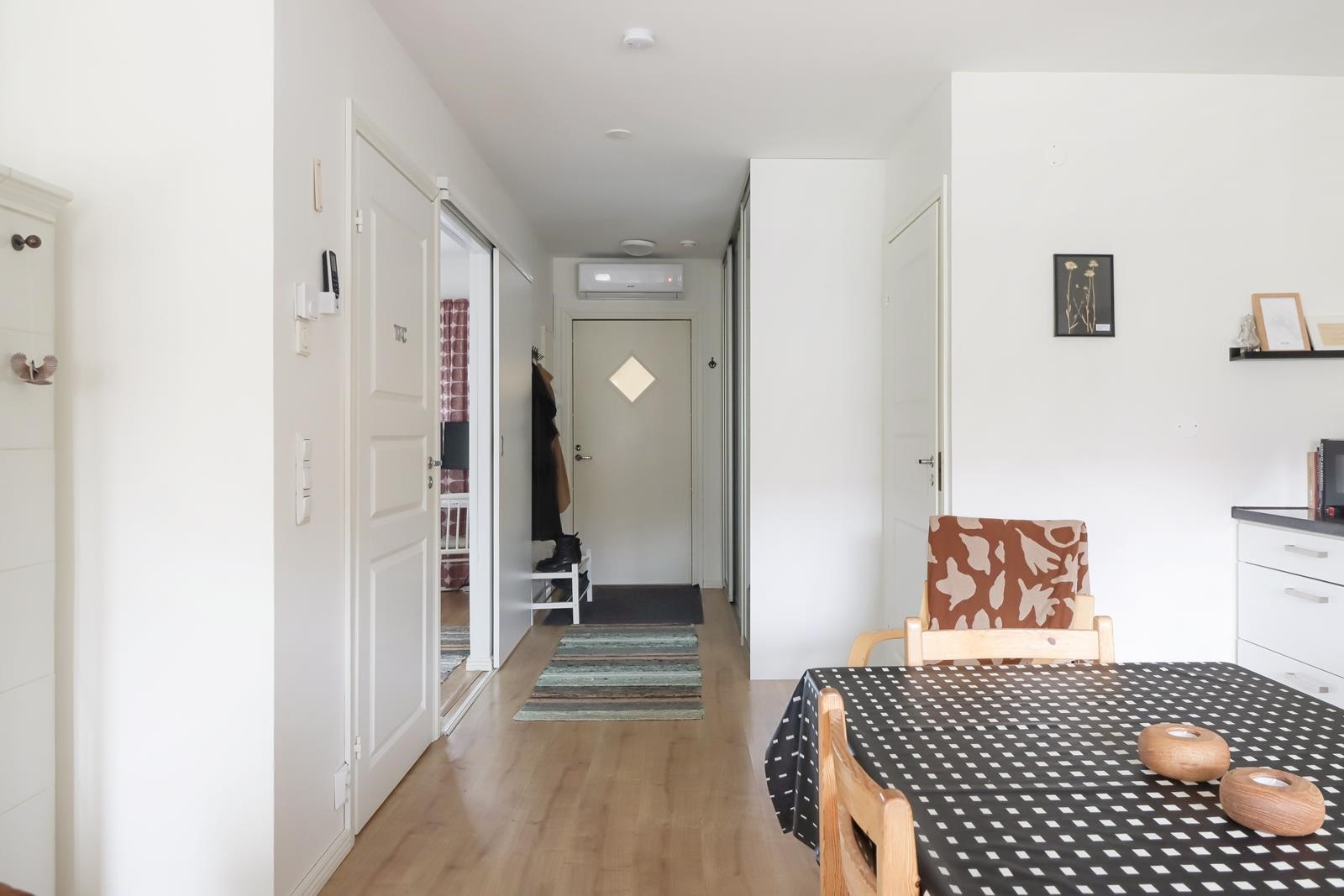 Nyt on kiva koti kaupan! 2007 valmistuneen pienen taloyhtiön saunallinen kaksio. Talo sijaitsee pellon laidassa, päättyvän kadun päässä. Yhtiö on kaukolämmössä, joten lämmitys sisältyy vastikkeeseen. Olohuoneessa on myös takka, jos tykkäät nautiskella ja tunnelmoida todella lämpimässä. Vastaavasti kesäkuuman viilennykseen on olemassa jäähdyttävä ilmalämpöpumppu. Asunnon värimaailma on neutraalin valkoinen. Olohuone-keittiö on trendikkäästi avoin. Keittiön laatikostot vetävät hyvin tavaraa ja työskentelytilaakin on pöytätasoilla kivasti. Makuuhuoneen yhteydessä on vaatehuone ja lisää säilytystilaa löytyy lämpimästä ulkovarastosta. Wc on erillisenä. Autot saat käytännöllisesti asunnon eteen, toiselle katospaikka. Tervetuloa tustustumaan uuteen kotiisi yksityisesittelyyn: Jaana Aalto 040 544 5725 jaana.aalto@op.fi