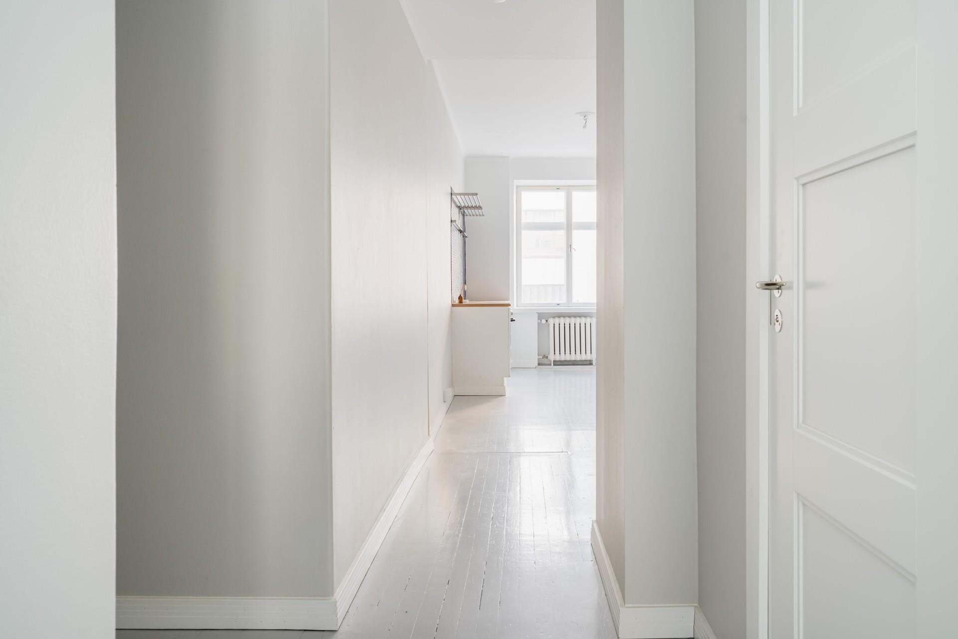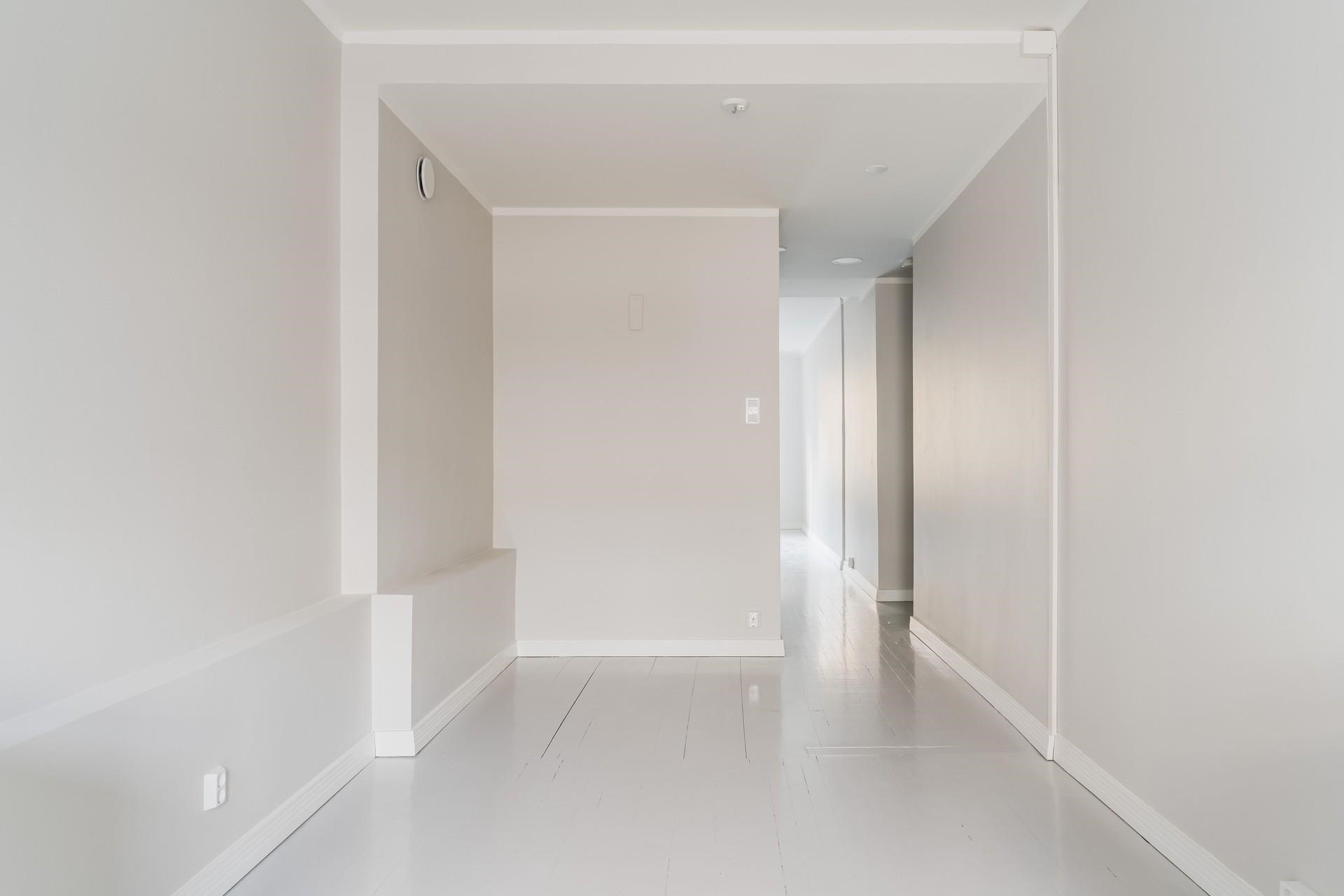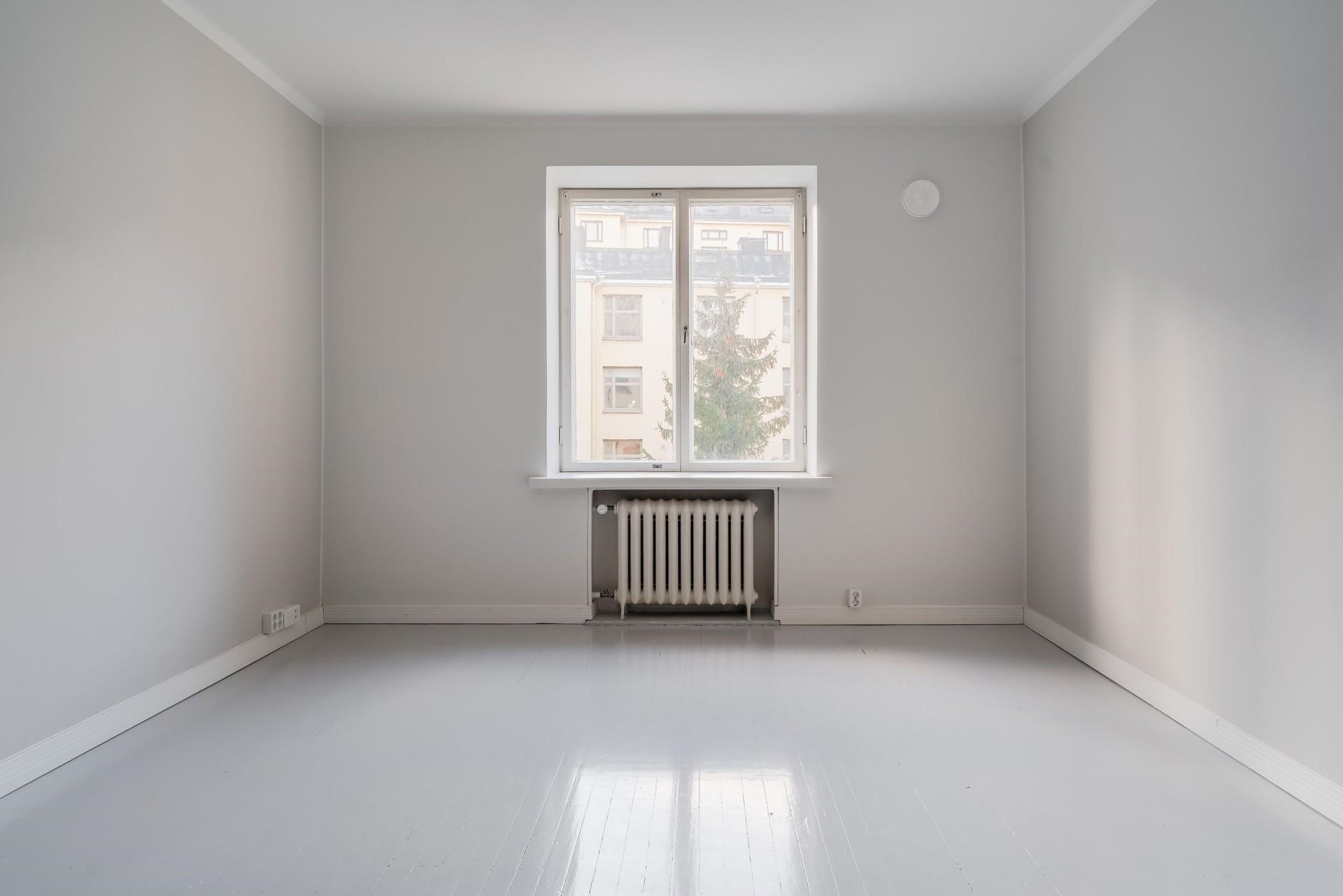 Asuintiloissa: Alkuperäinen, vaalean harmaa lautalattia, seinät maalattu.