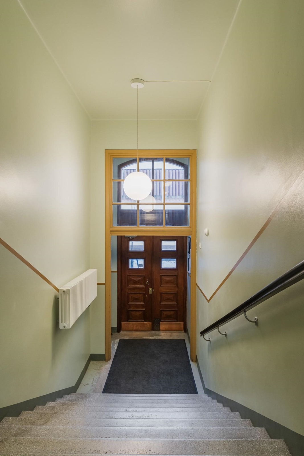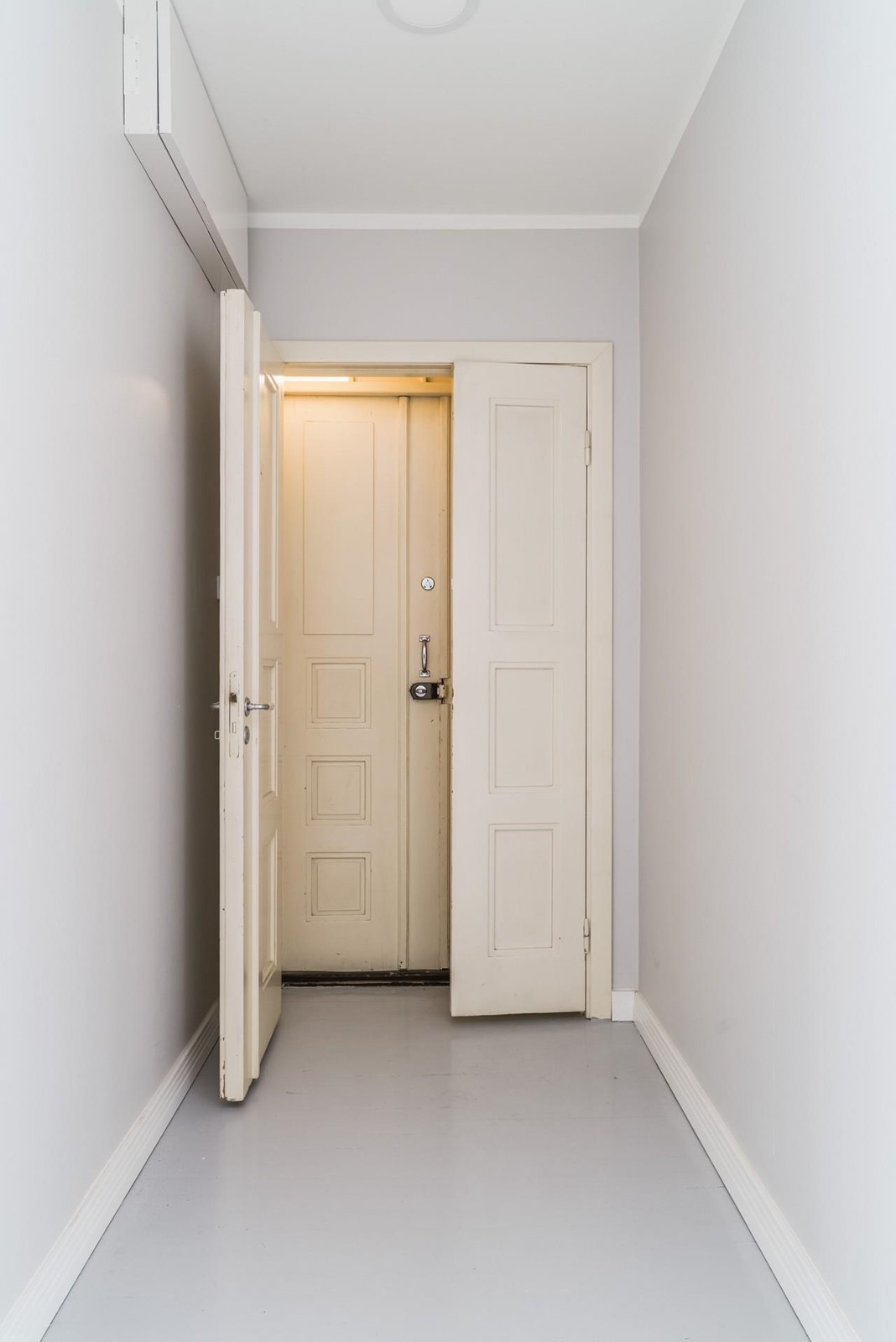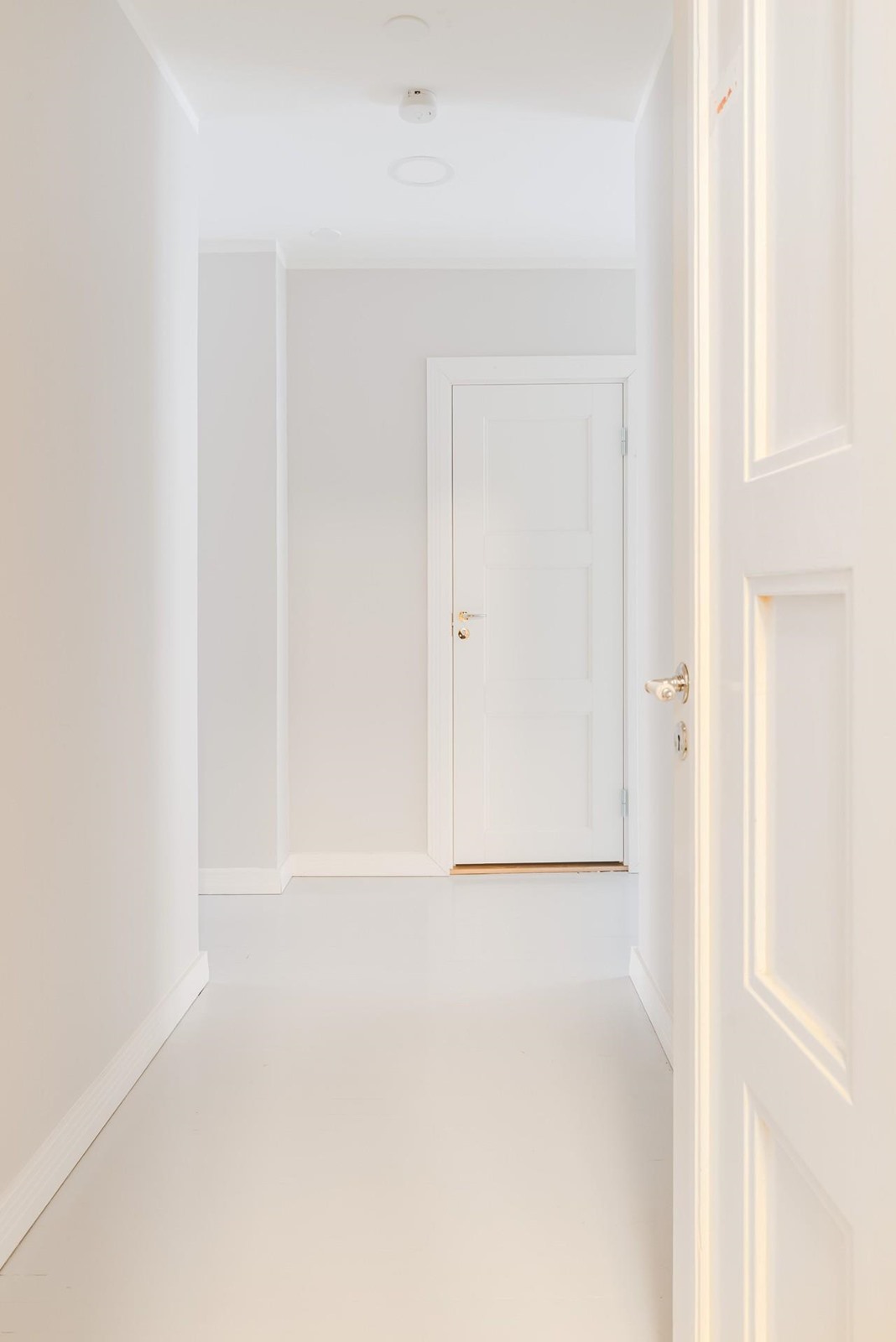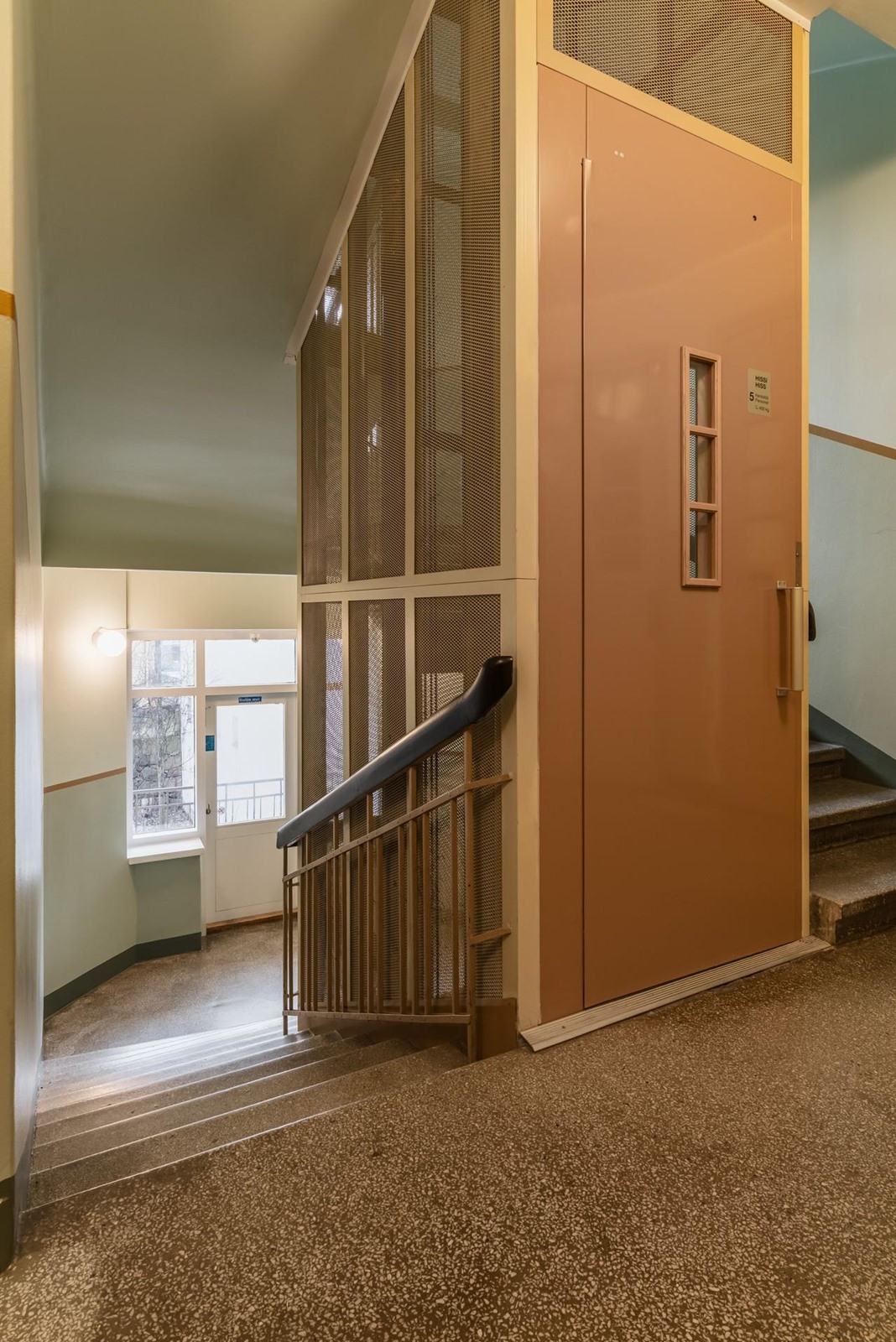 Asuintiloissa: Alkuperäinen, vaalean harmaa lautalattia, seinät maalattu.