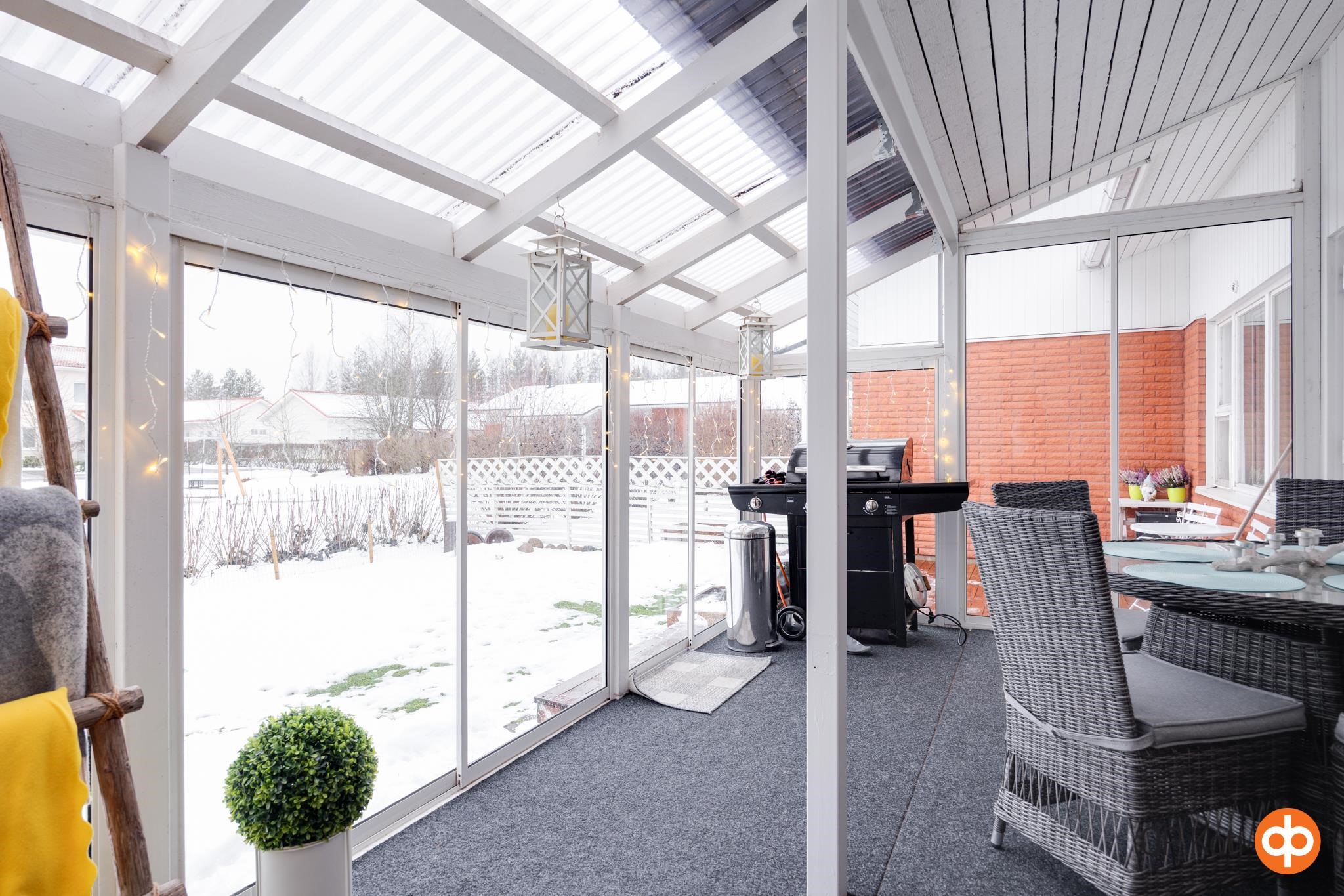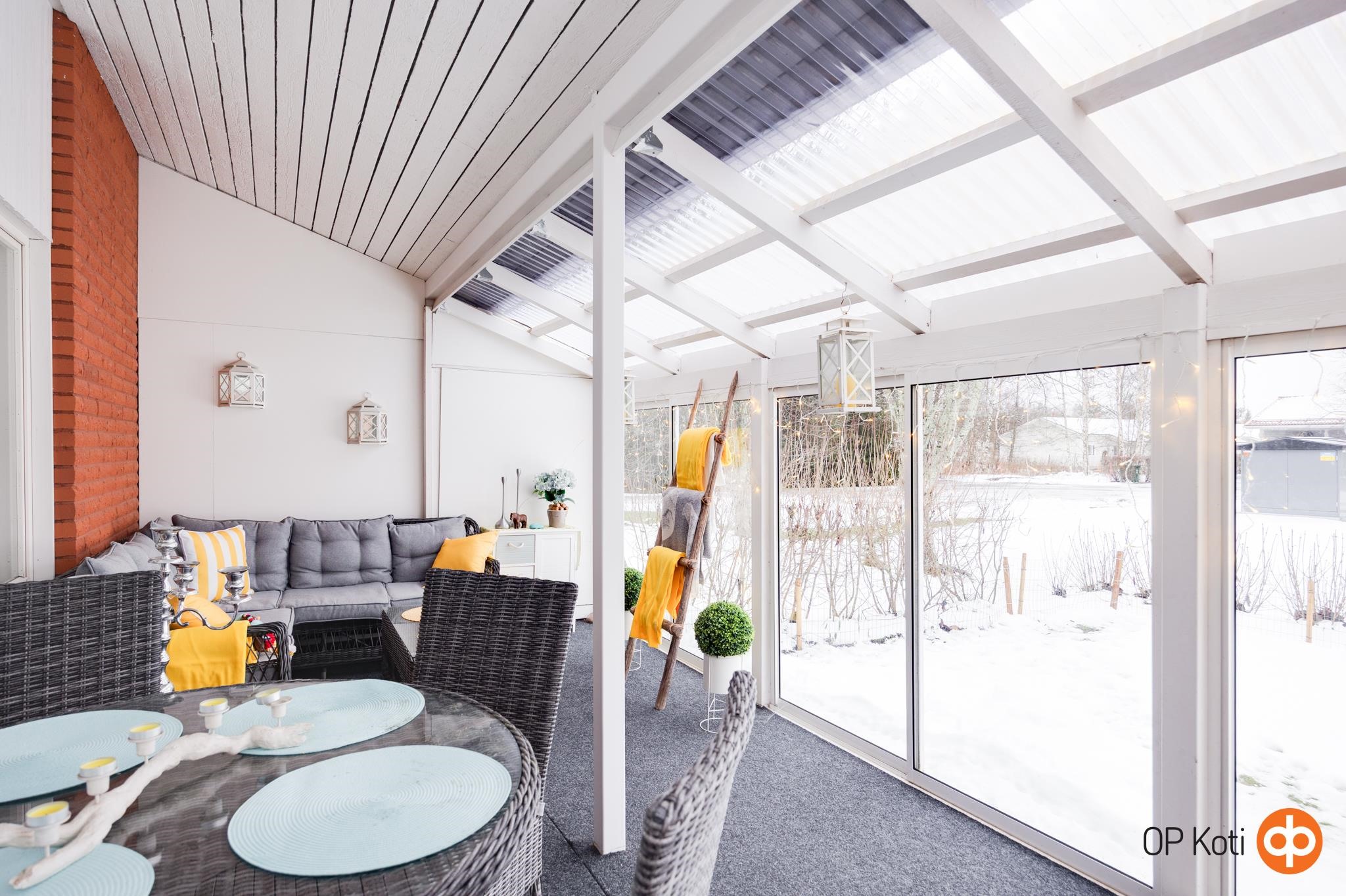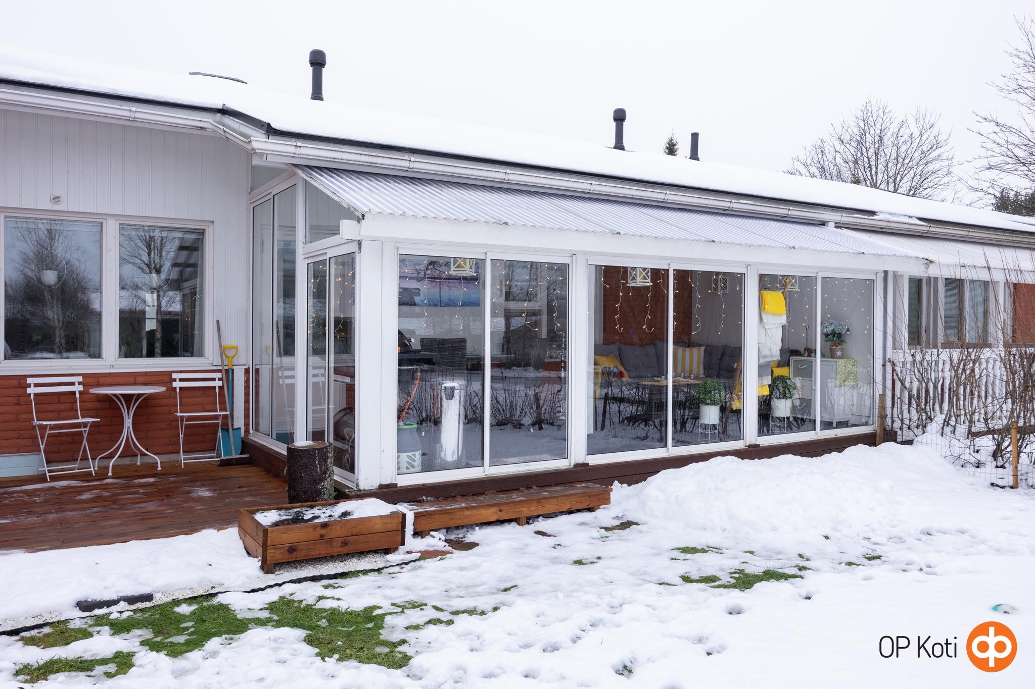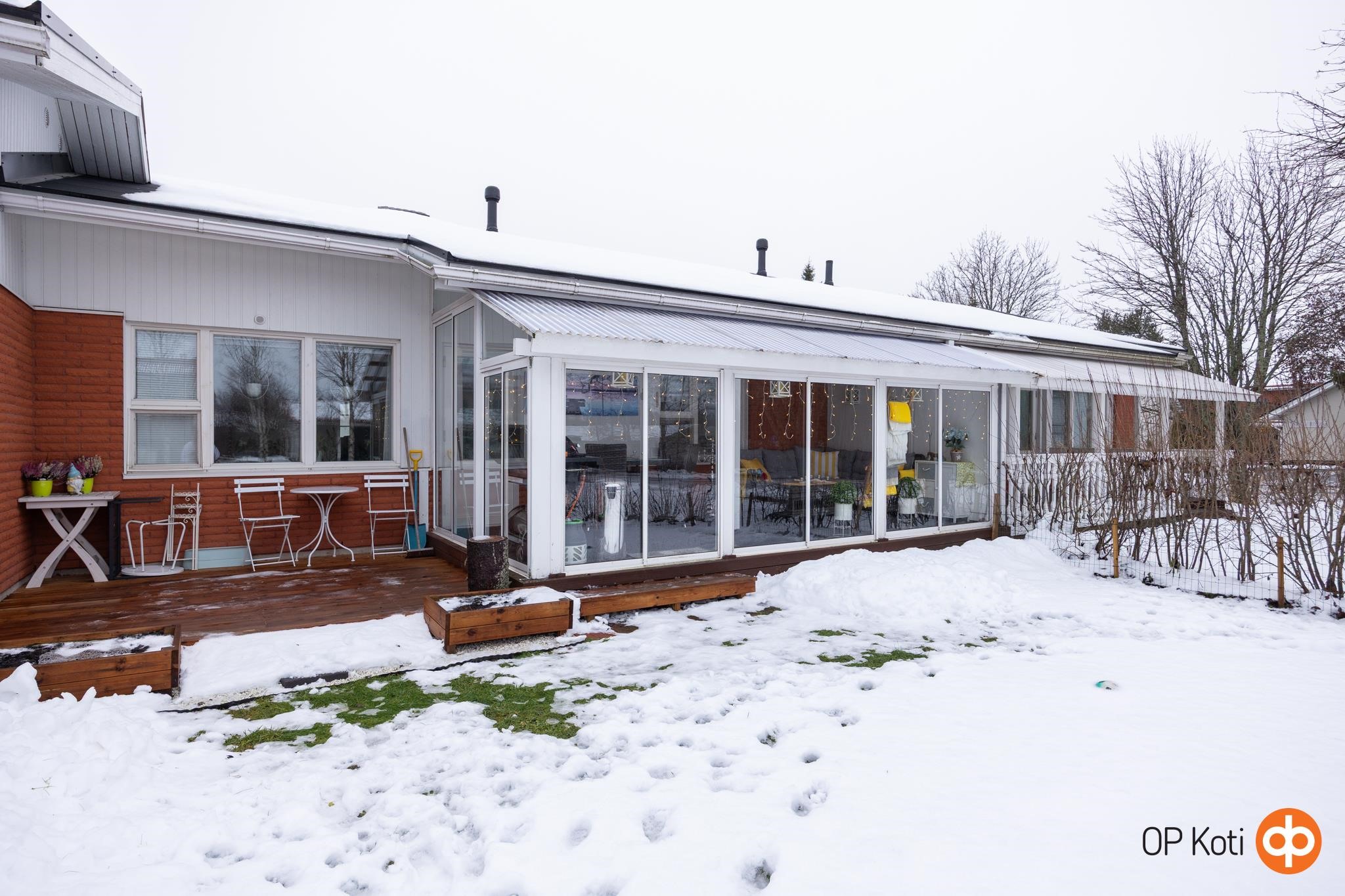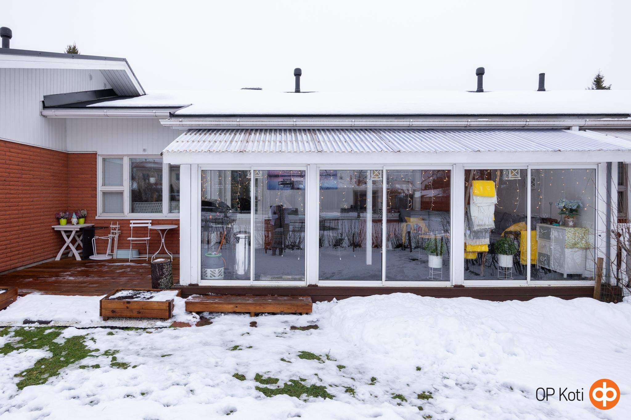 Rauhallisella sijainnilla sijaitseva rivitalokolmio tarjoaa viihtyisän kodin, jossa on iso lasitettu terassi ja autotallipaikka varastolla. Takapiha rajoittuu puistoalueeseen, mikä tuo lisärauhaa.