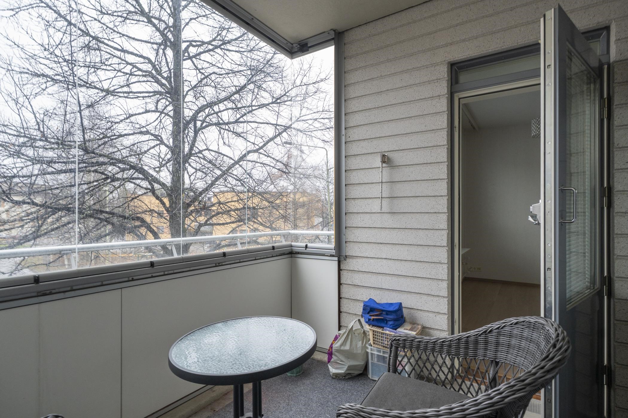 - Kaikki ikkunat ja parveke avautuvat etelään.