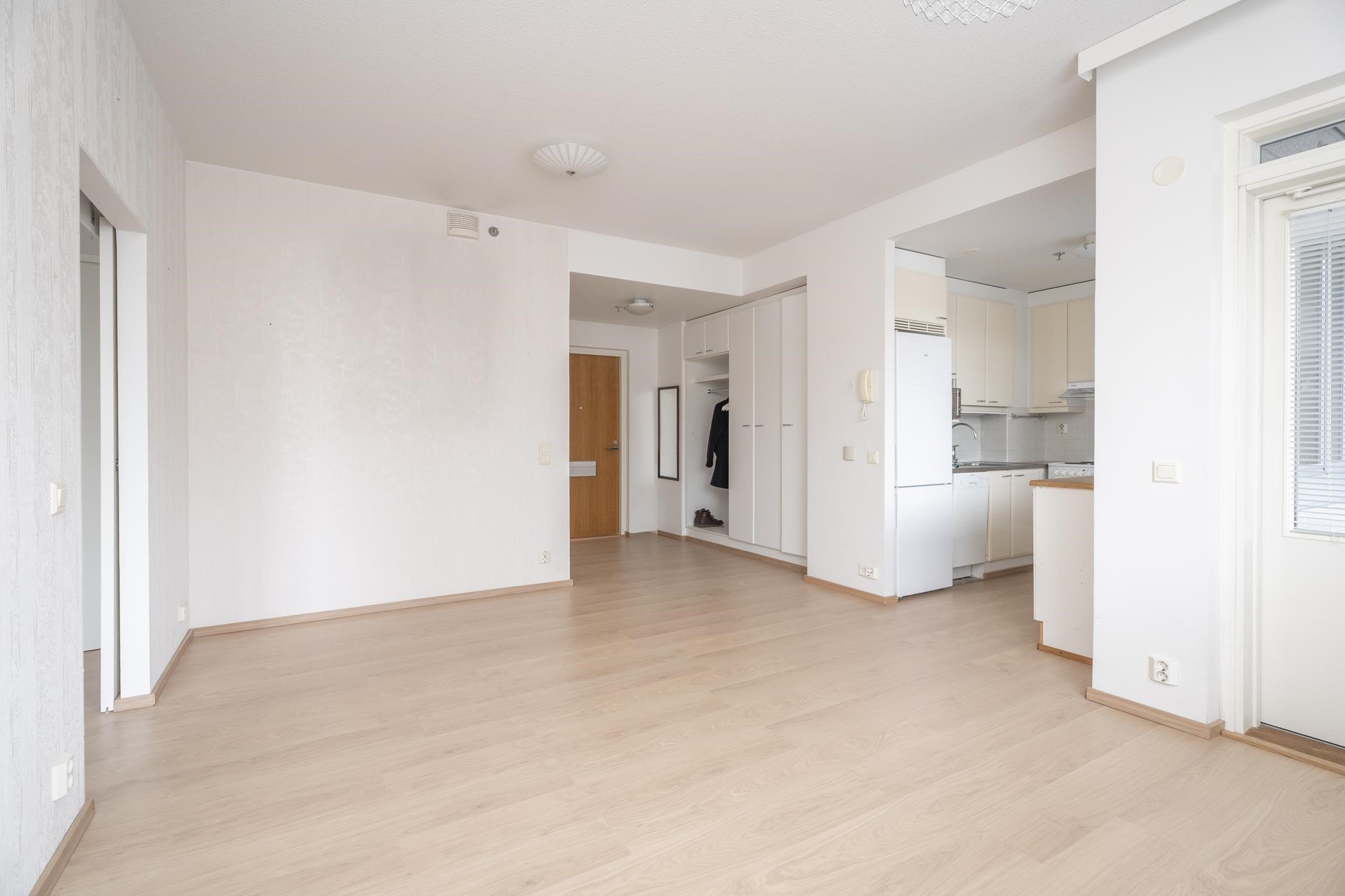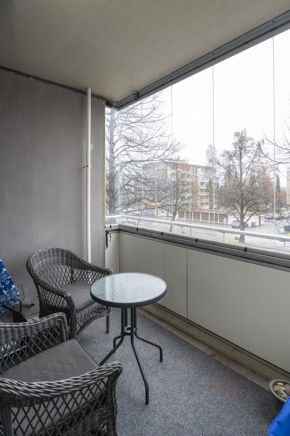 Valoisa kaksio sijaitsee hissitalon toisessa kerroksessa, ja sen tilavat huoneet sekä etelään suuntautuva lasitettu parveke luovat avaran ja miellyttävän tunnelman. Huoneistossa on juuri uusittu laminaattilattia vuonna 2025. Keittiö on hyvin varusteltu sisältäen jääkaappipakastimen, lattialieden, liesituulettimen, astianpesukoneen ja hyvän määrän kaappitilaa. Asunnon pintamateriaalit ovat laadukkaita ja ajattomia ja kokonaisuuden kruunaa sauna, jossa sähkökiuas takaa rentouttavat löylyt silloin, kun sinulle parhaiten sopii.