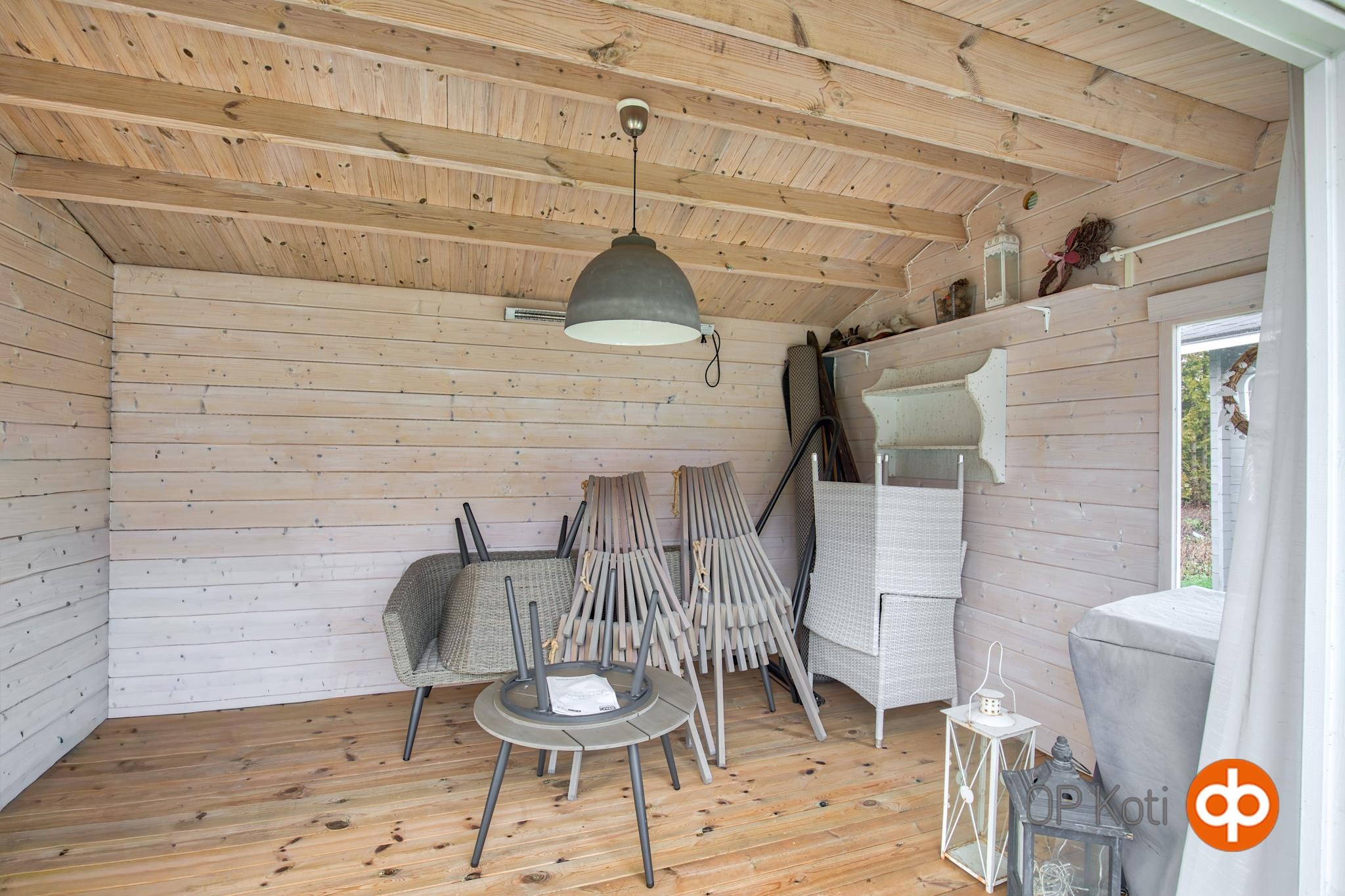 - Vaatehuone, ulkovarasto, kaapistot, lämmin varastotila/autotalli