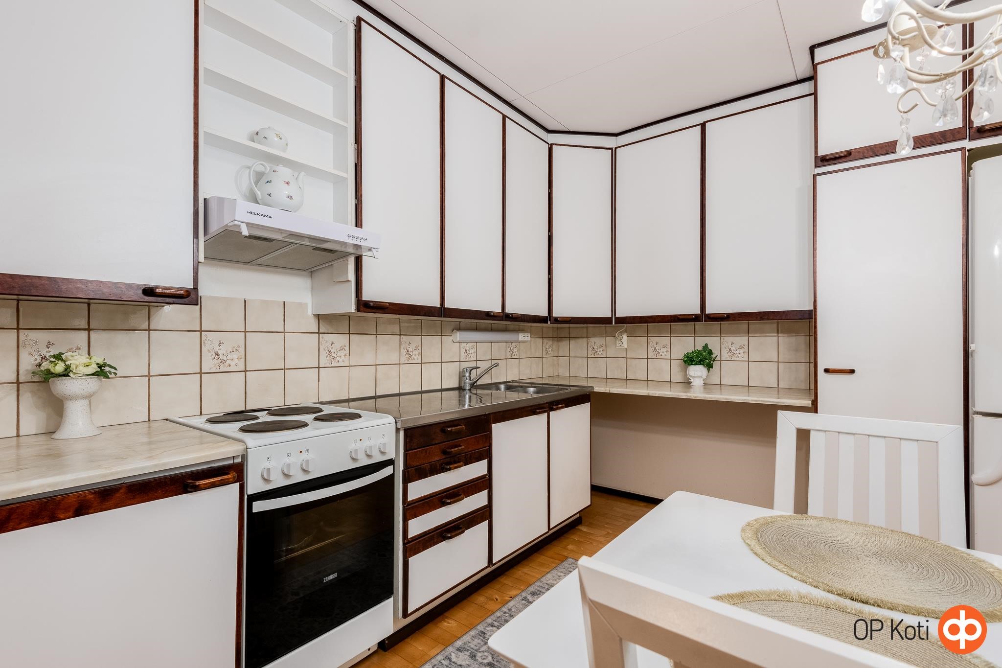 - Jääkaappipakastin, sähköliesi, liesituuletin, kaapistot, kiinteät valaisimet.