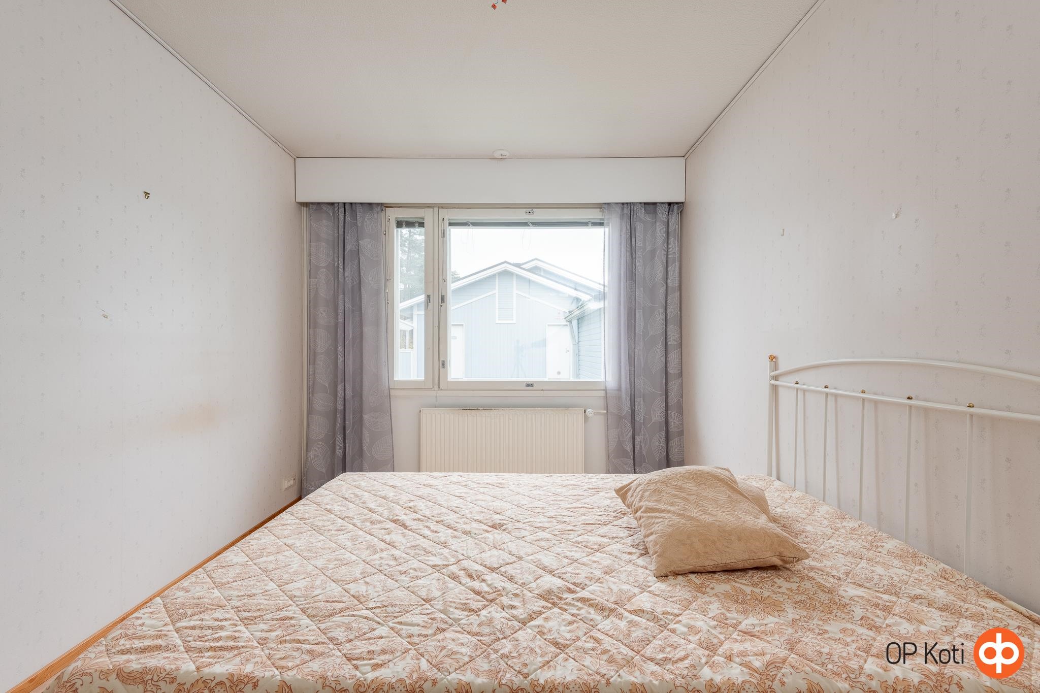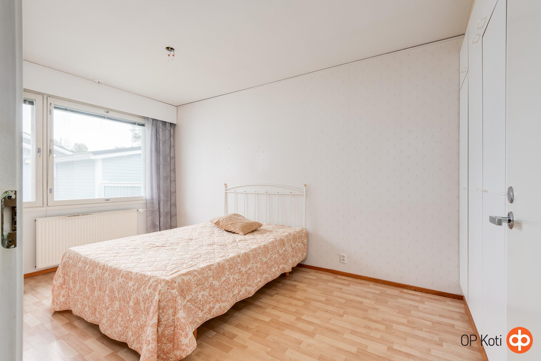 Makuuhuoneen ikkunat koilliseen tarjoavat näkymän talojen reunustamalle sisäpihalle. Katettu terassi takapihalla kutsuu nauttimaan auringosta ja ulkoilmasta. Siisti sauna ja kylpyhuone tarjoavat rentouttavat puitteet arjen kiireiden keskellä ja täällä tilaa myös kodinhuollolle.