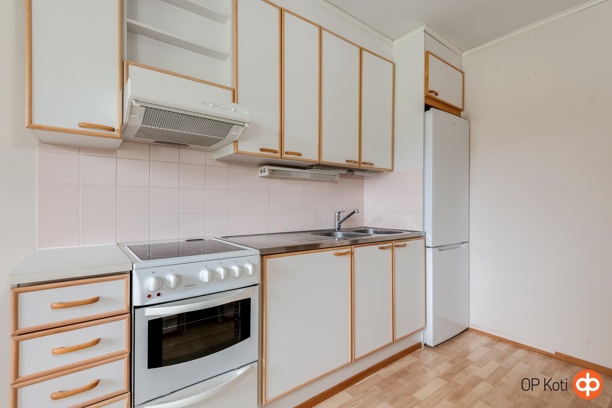 - Jääkaappipakastin (2022), sähköliesi, liesituuletin, kaapistot, kiinteät valaisimet.