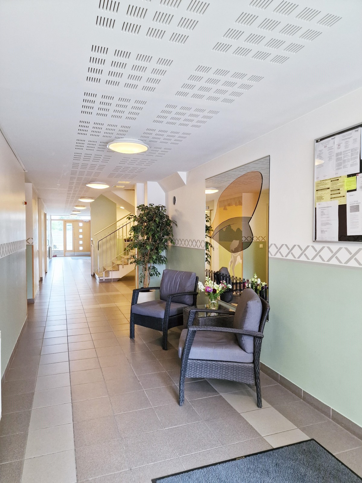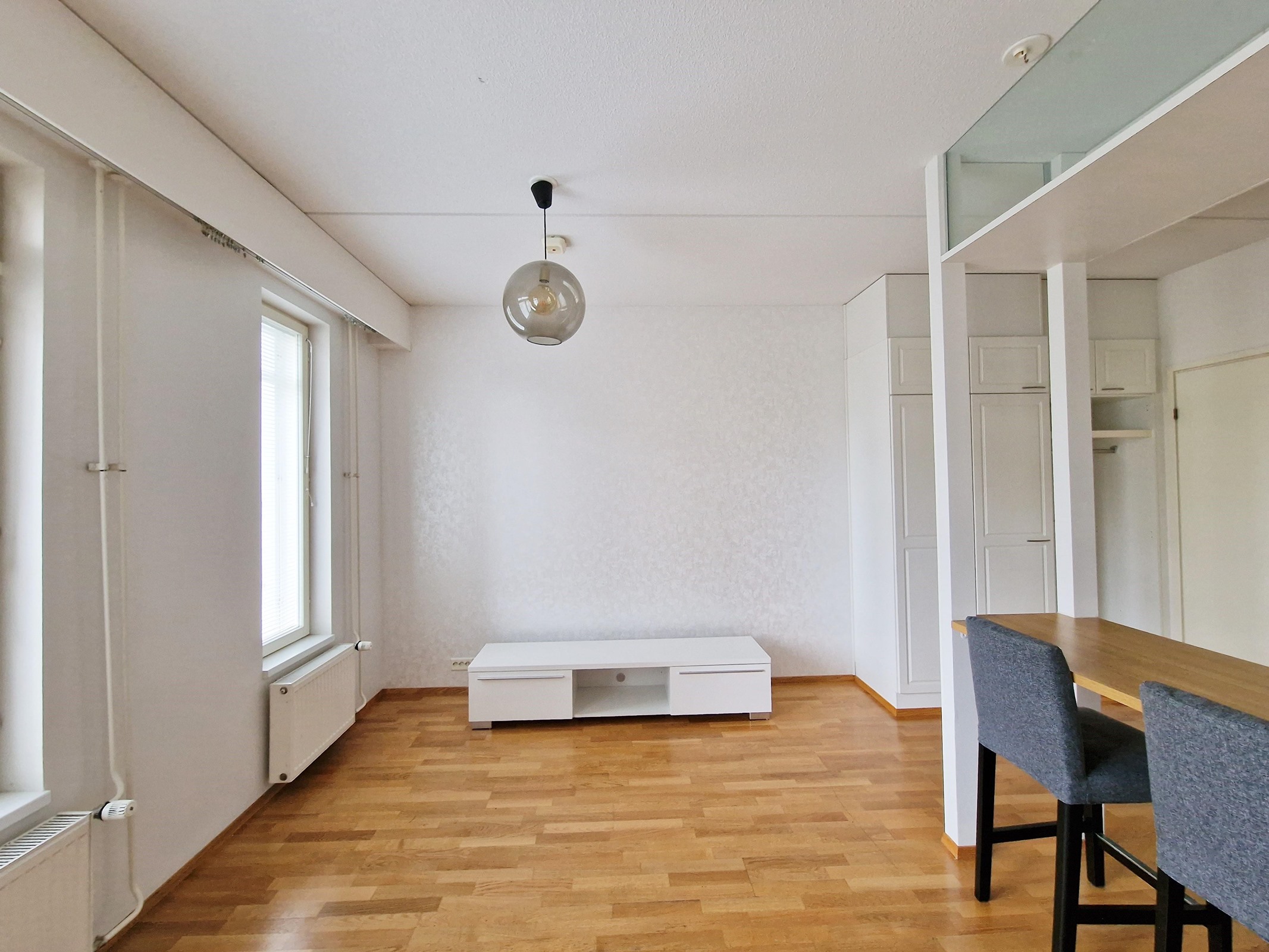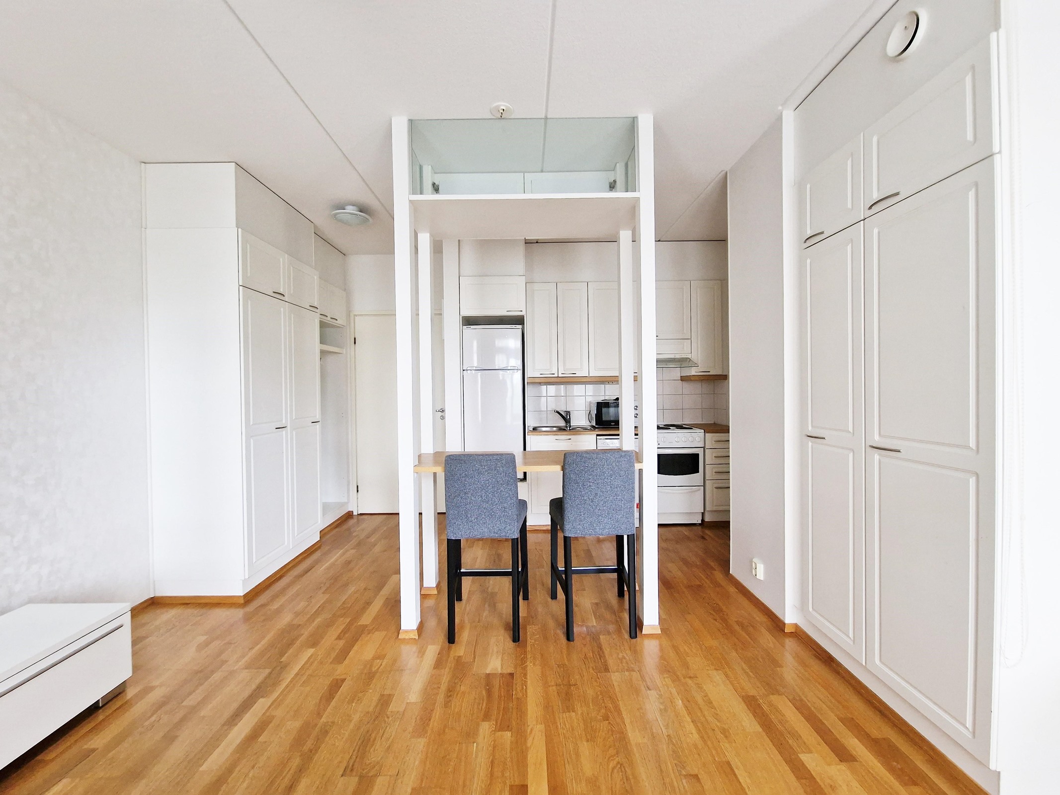 Lattia: parketti. Seinät: tapetti.