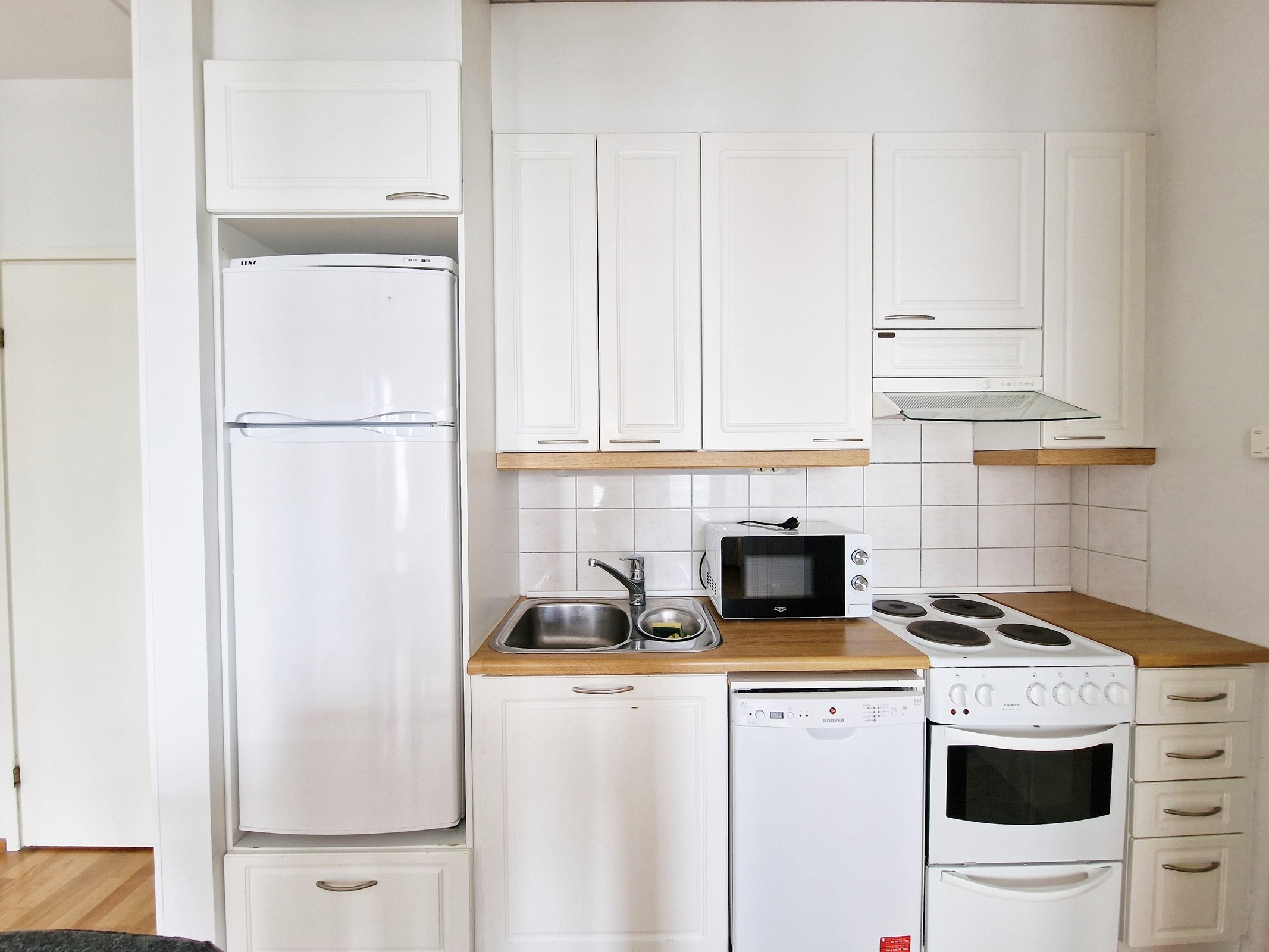 - Jenkkikaappi, lattialiesi, liesituuletin, astianpesukone, kiinteät valaisimet.
