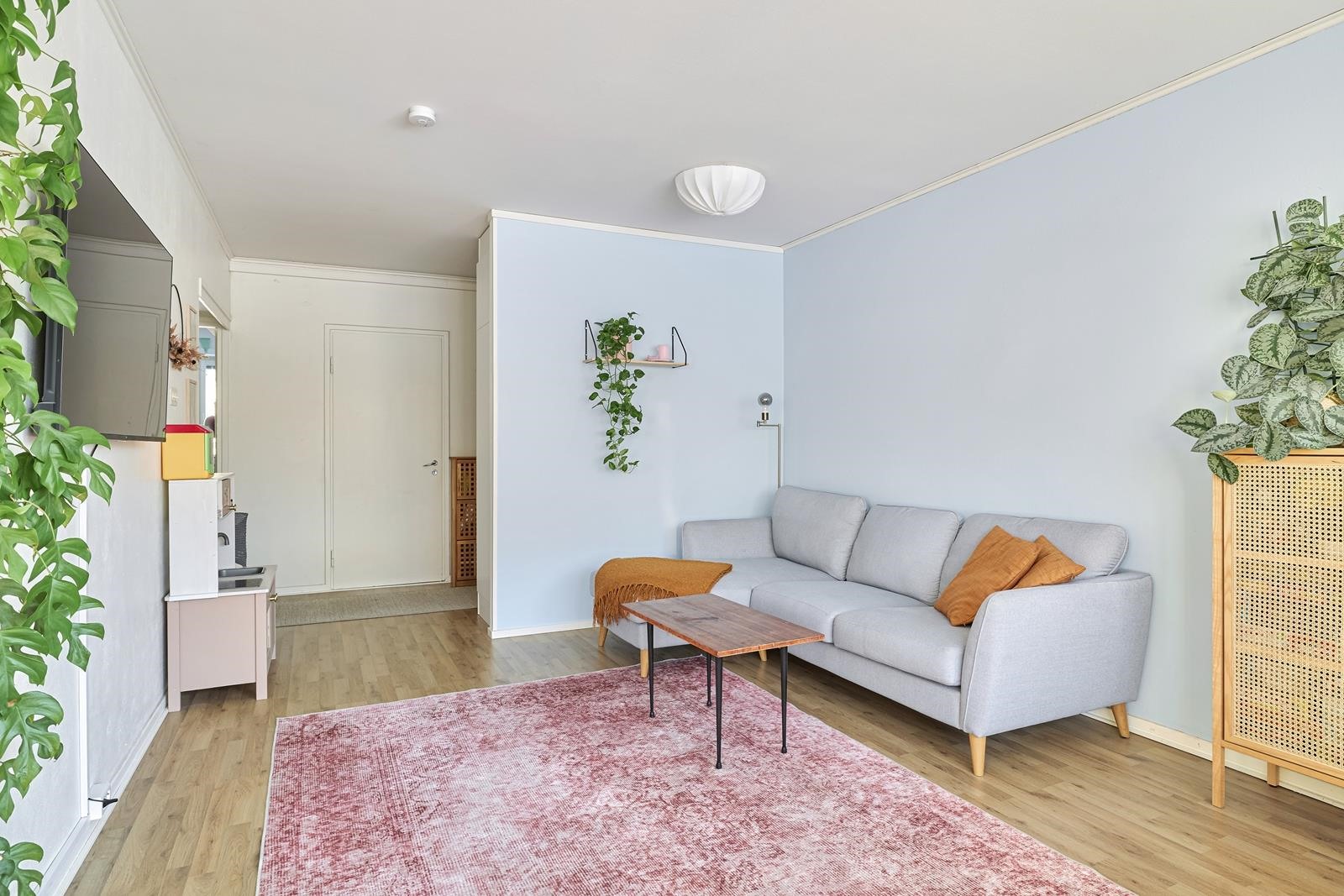 Keittiö: maali, laminaatti. Olohuone: maali, laminaatti. Makuuhuone 1: maali, laminaatti. Makuuhuone 2: maali, laminaatti. Kylpyhuone: kaakelia, laattta. Eteinen: maali, laminaatti.