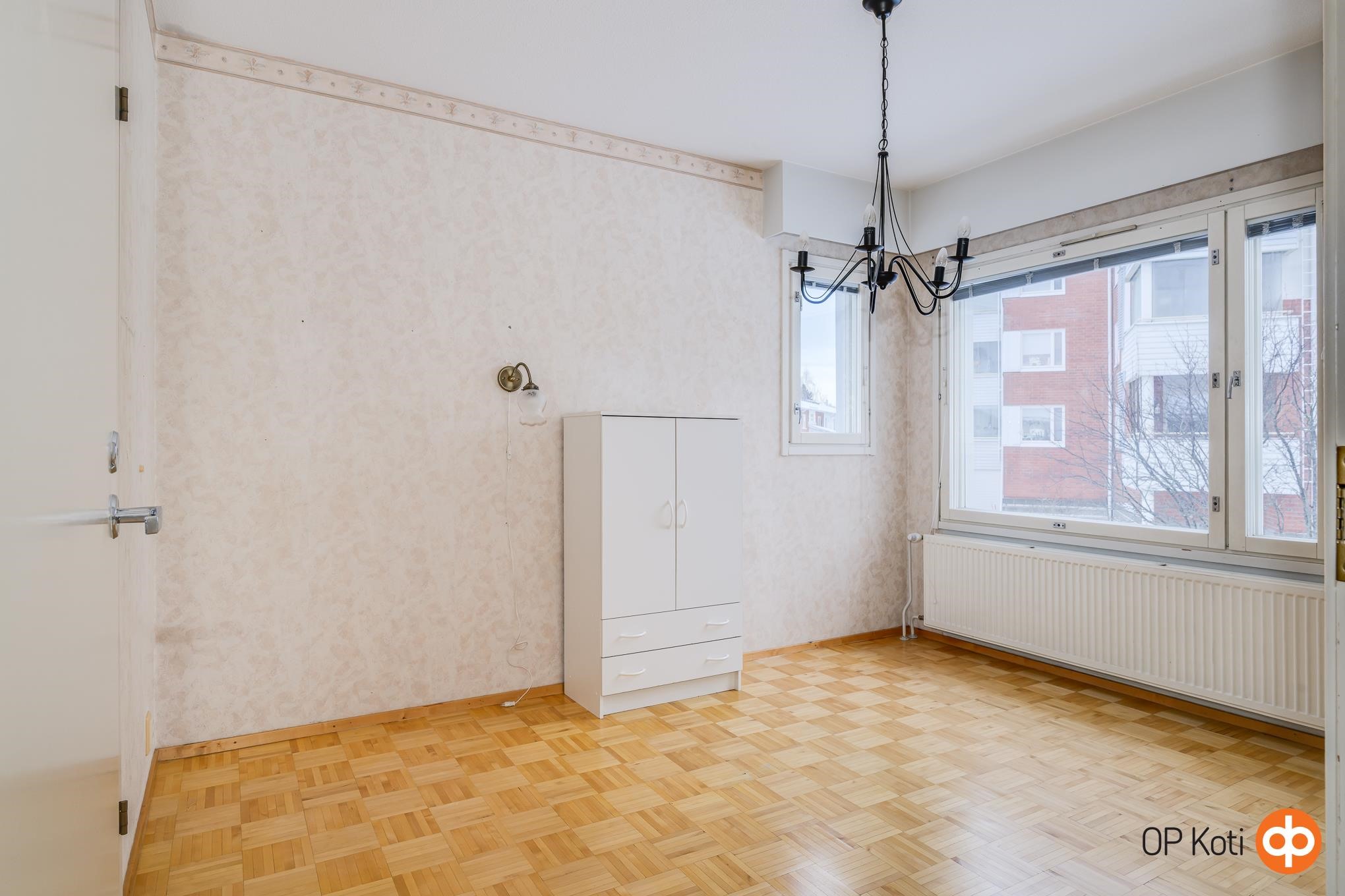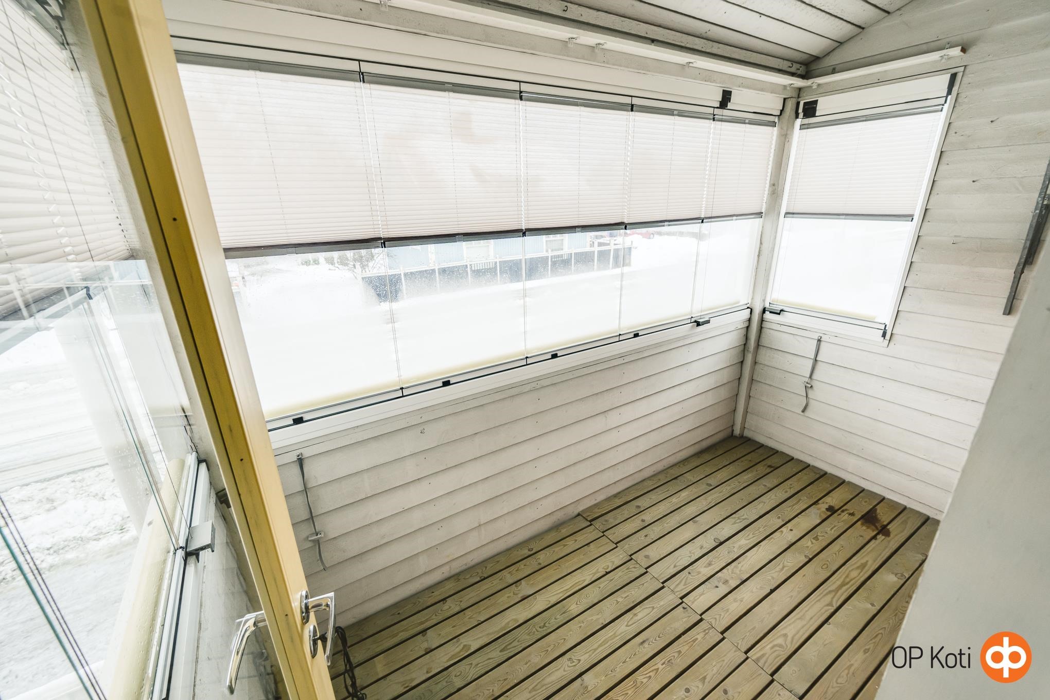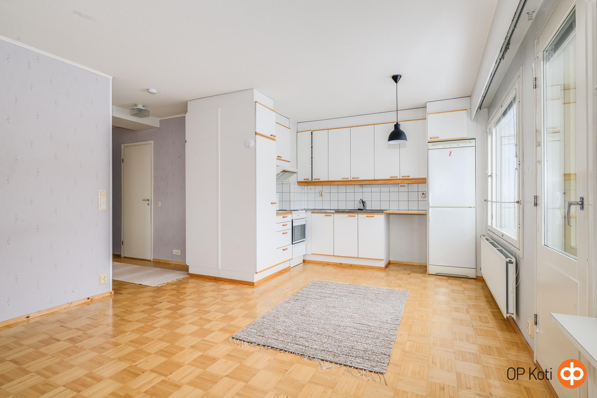 Huoneistossa on tehokas pohjaratkaisu, jossa makuuhuone ja olohuone kytkeytyvät toimivasti keittokomeroon. Lasitettu parveke tarjoaa lisätilaa ja mahdollisuuden nauttia ulkoilmasta ympäri vuoden. Säilytystilaa löytyy runsaasti vaatehuoneesta ja ulkovarastosta.