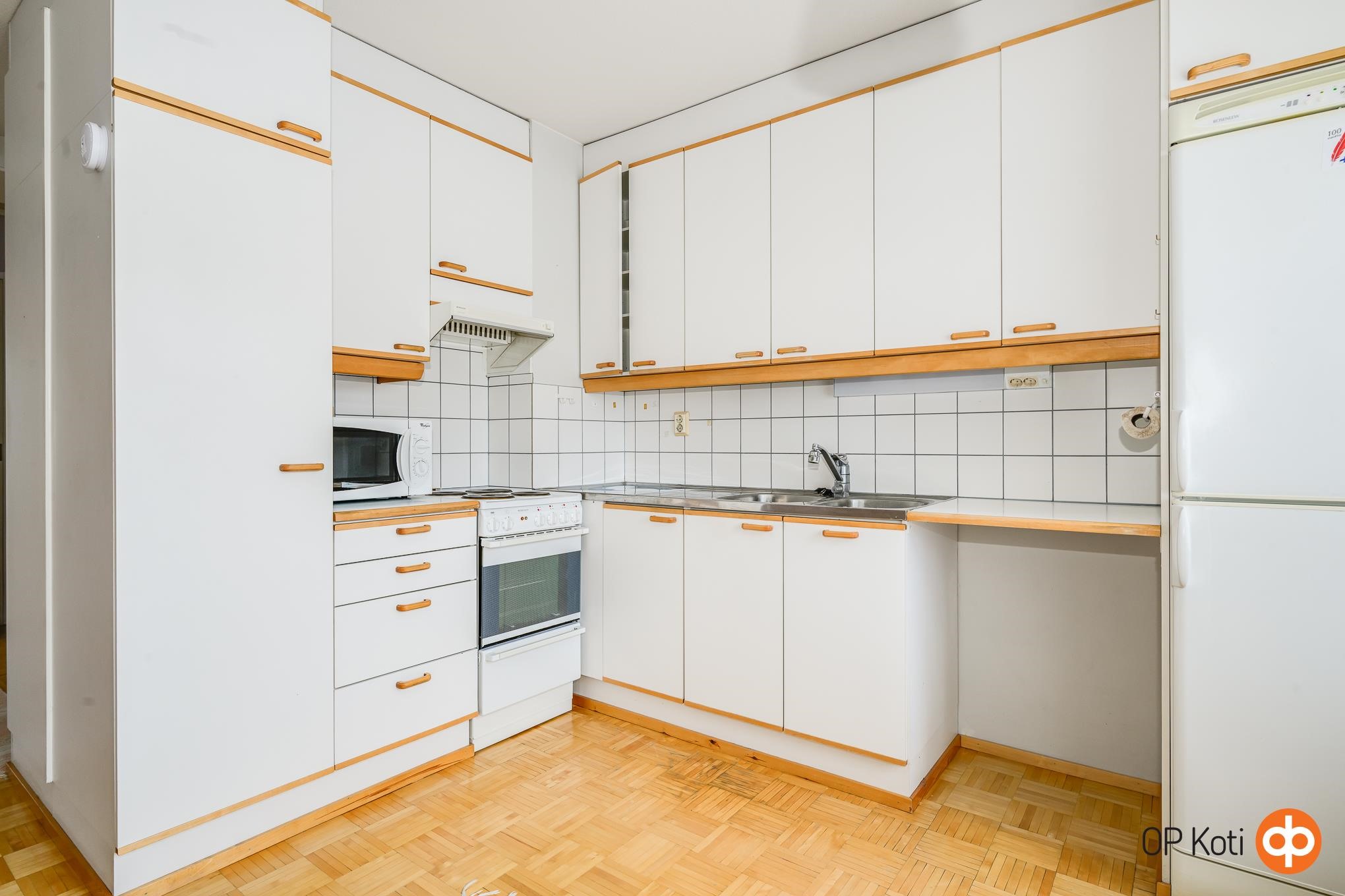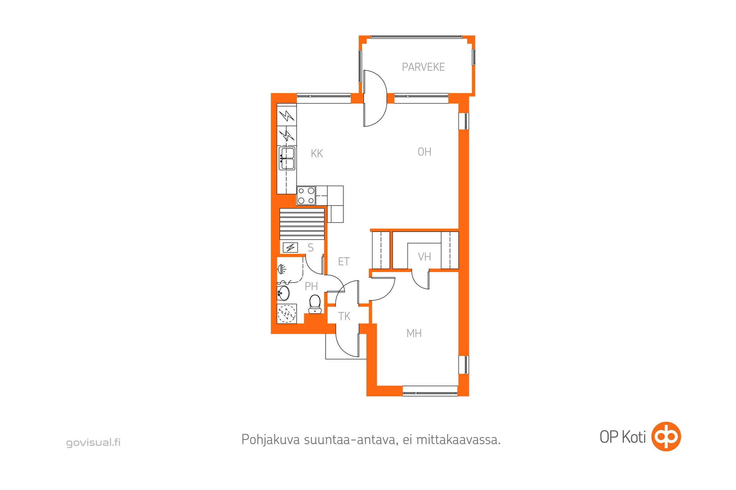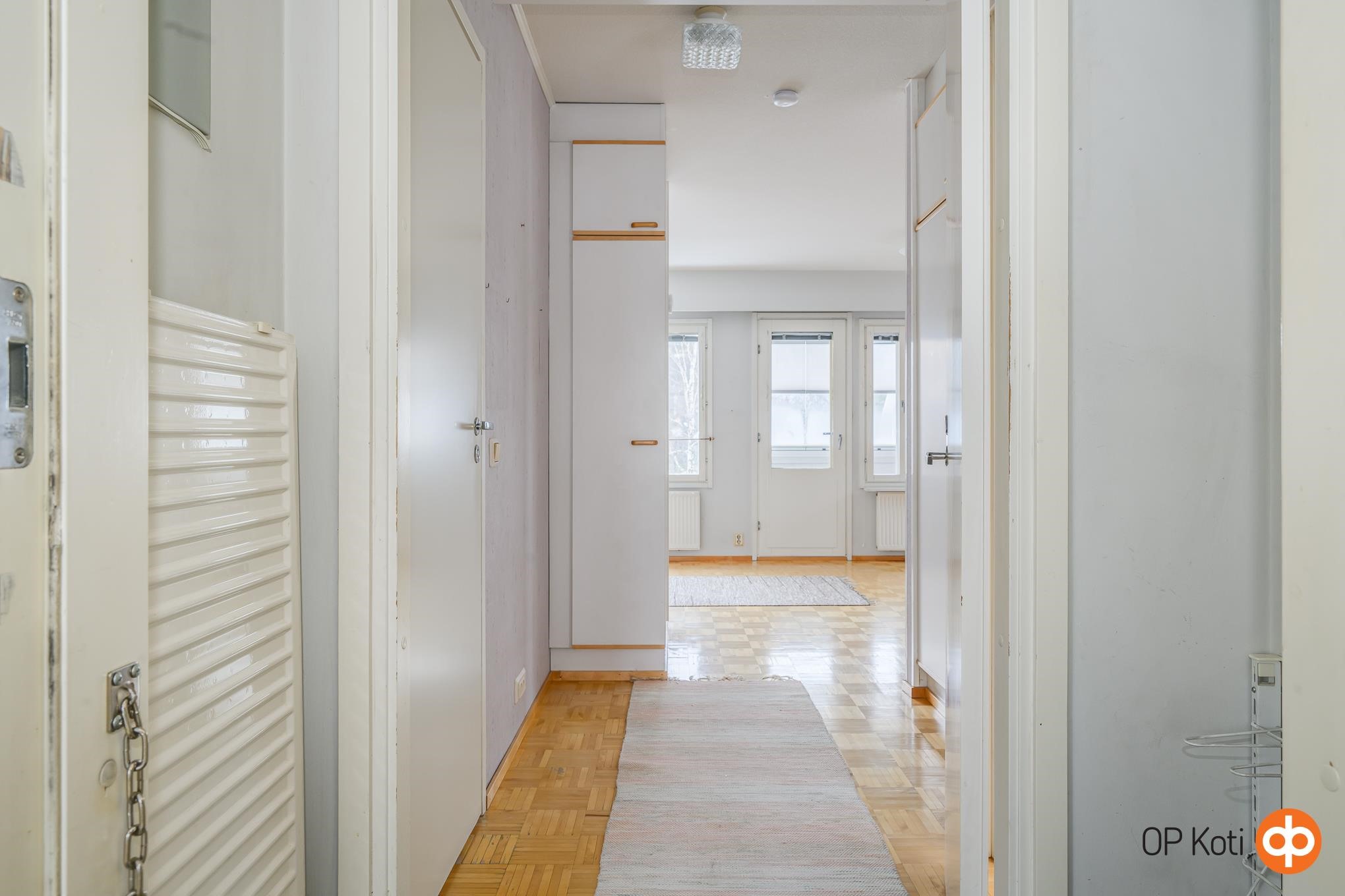 Huoneistossa on tehokas pohjaratkaisu, jossa makuuhuone ja olohuone kytkeytyvät toimivasti keittokomeroon. Lasitettu parveke tarjoaa lisätilaa ja mahdollisuuden nauttia ulkoilmasta ympäri vuoden. Säilytystilaa löytyy runsaasti vaatehuoneesta ja ulkovarastosta.