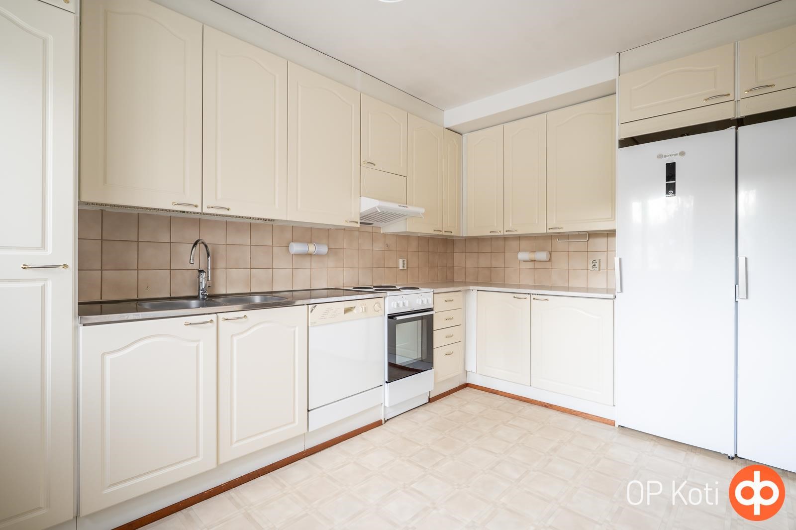 - Jääkaappi, pakastekaappi, sähköliesi, liesituuletin, astianpesukone, kiinteät valaisimet.