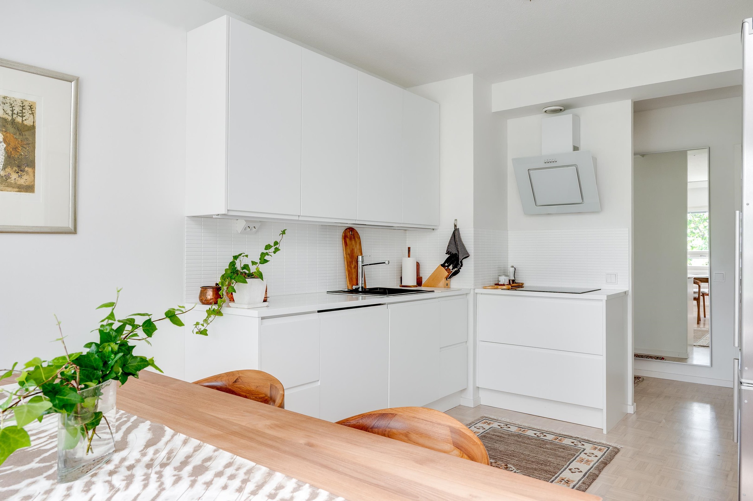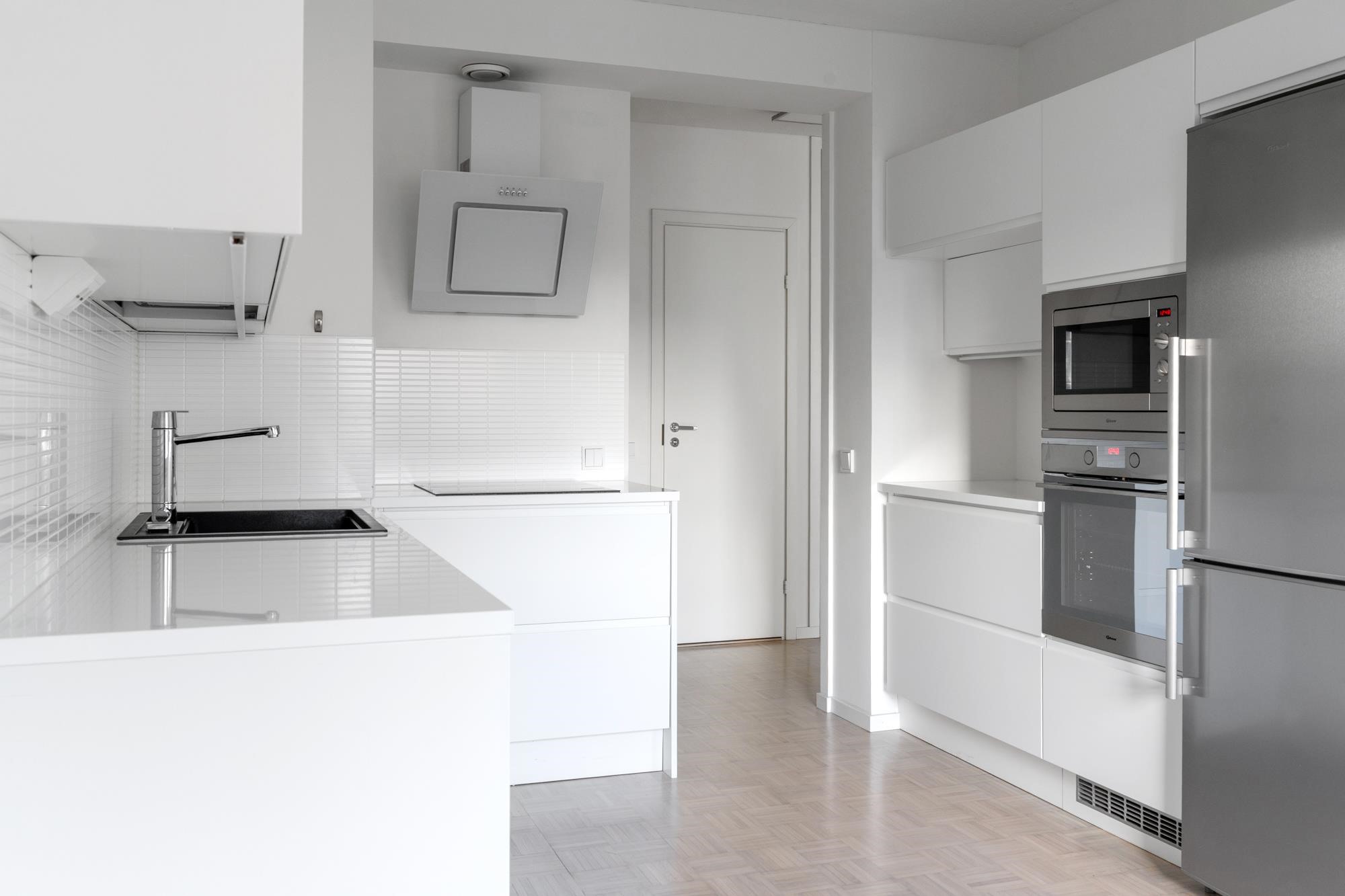 - Asunnon näyttävä keittiö on remontoitu vuonna 2017. Keittiössä on jääkaappipakastin, erillisuuni (induktio), liesituuletin (aktiivihiili), integroitu mikroaaltouuni, ja integroitu astianpesukone. Keittiössä on reilusti tilaa myös suuremmalle ruokapöydälle.