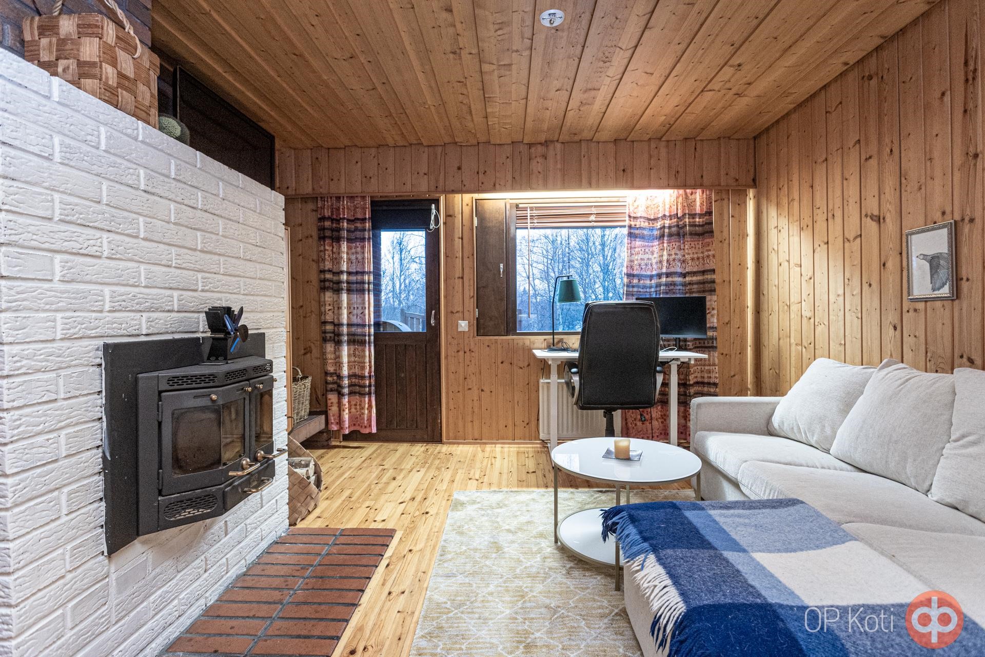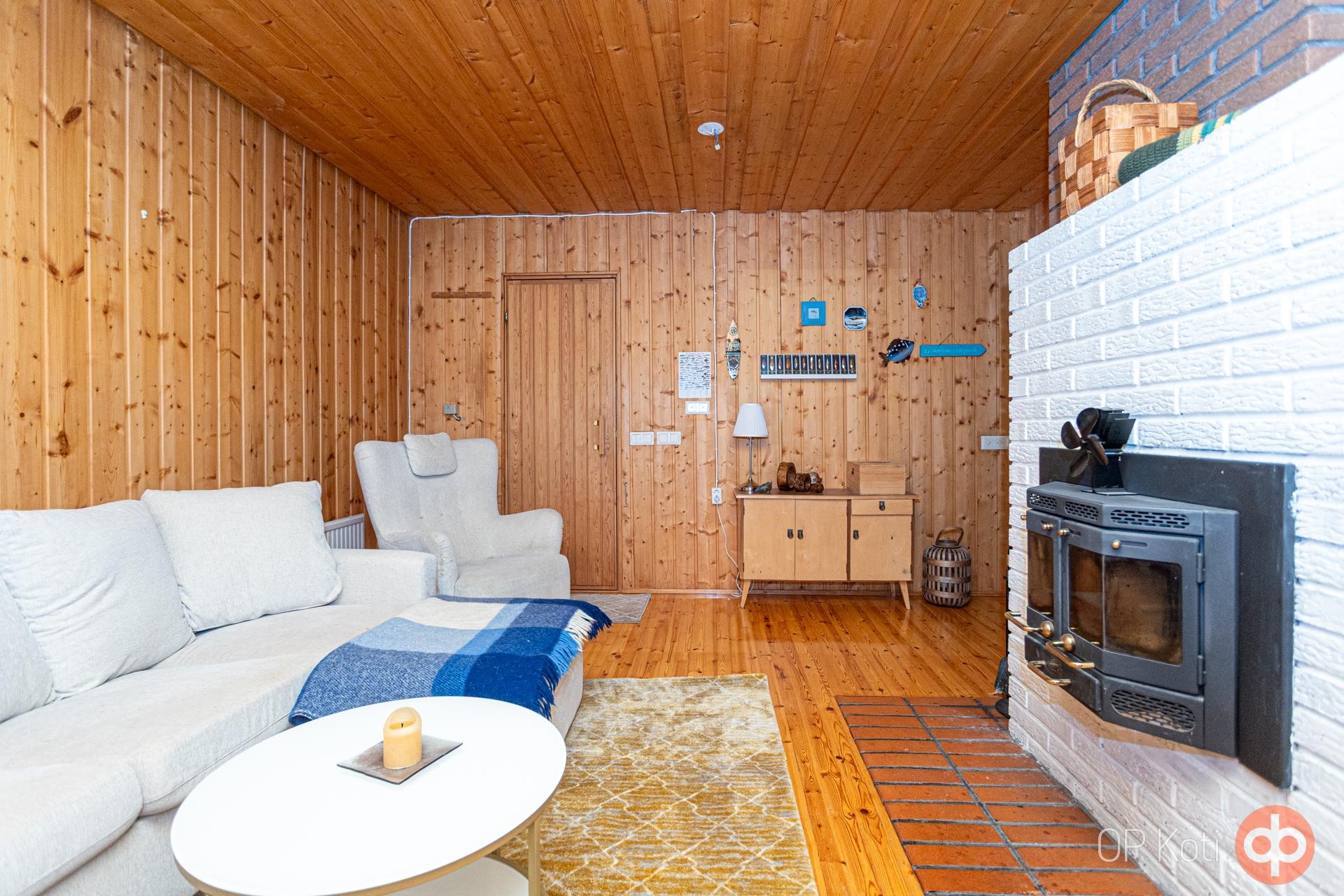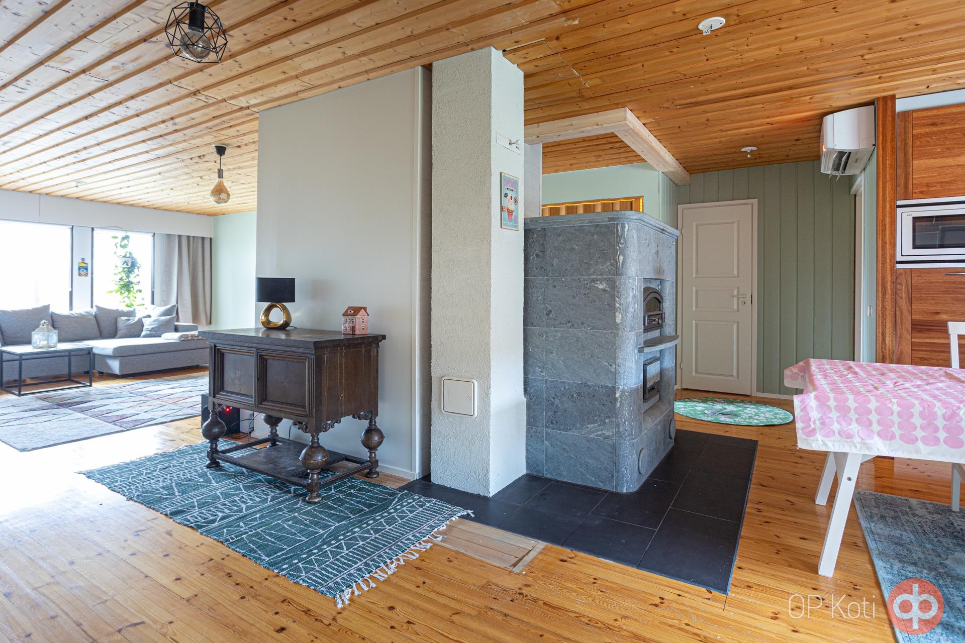 Keittiö on remontoitu vuonna 2008 laadukkailla Nelkon kalusteilla. Entisen kylmiön tilalle rakennettu leivinuuni tuo kotiin sekä tunnelmaa että energiatehokkuutta. Olohuone on tilava ja valoisa. Takkahuoneesta on käynti osittain katetulle terassille, joka toimii aurinkoisten kesäpäivien viihtyisänä keitaana. Terassilla voi nauttia niin keskipäivän auringosta kuin ilta-auringon sävyistä Poroveden suuntaan - vaikka kylpytynnyrissä rentoutuen.