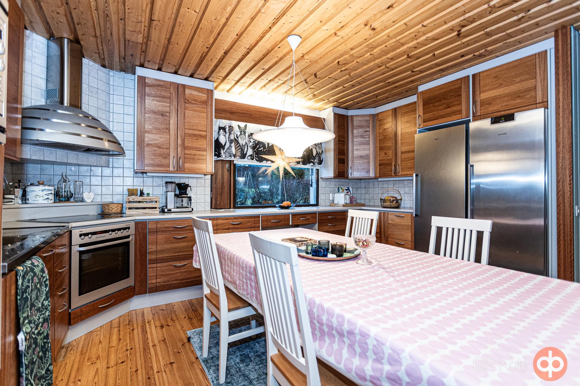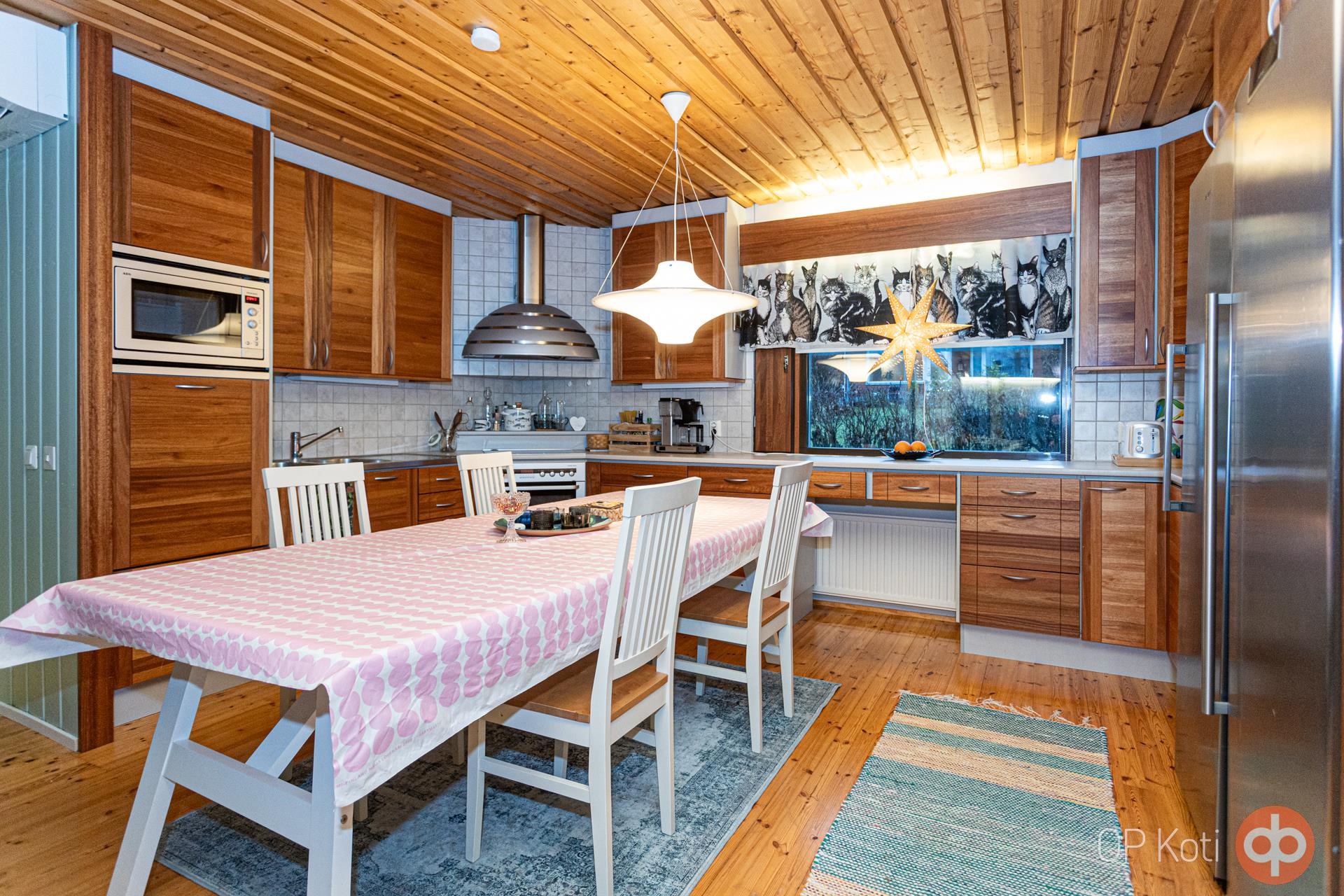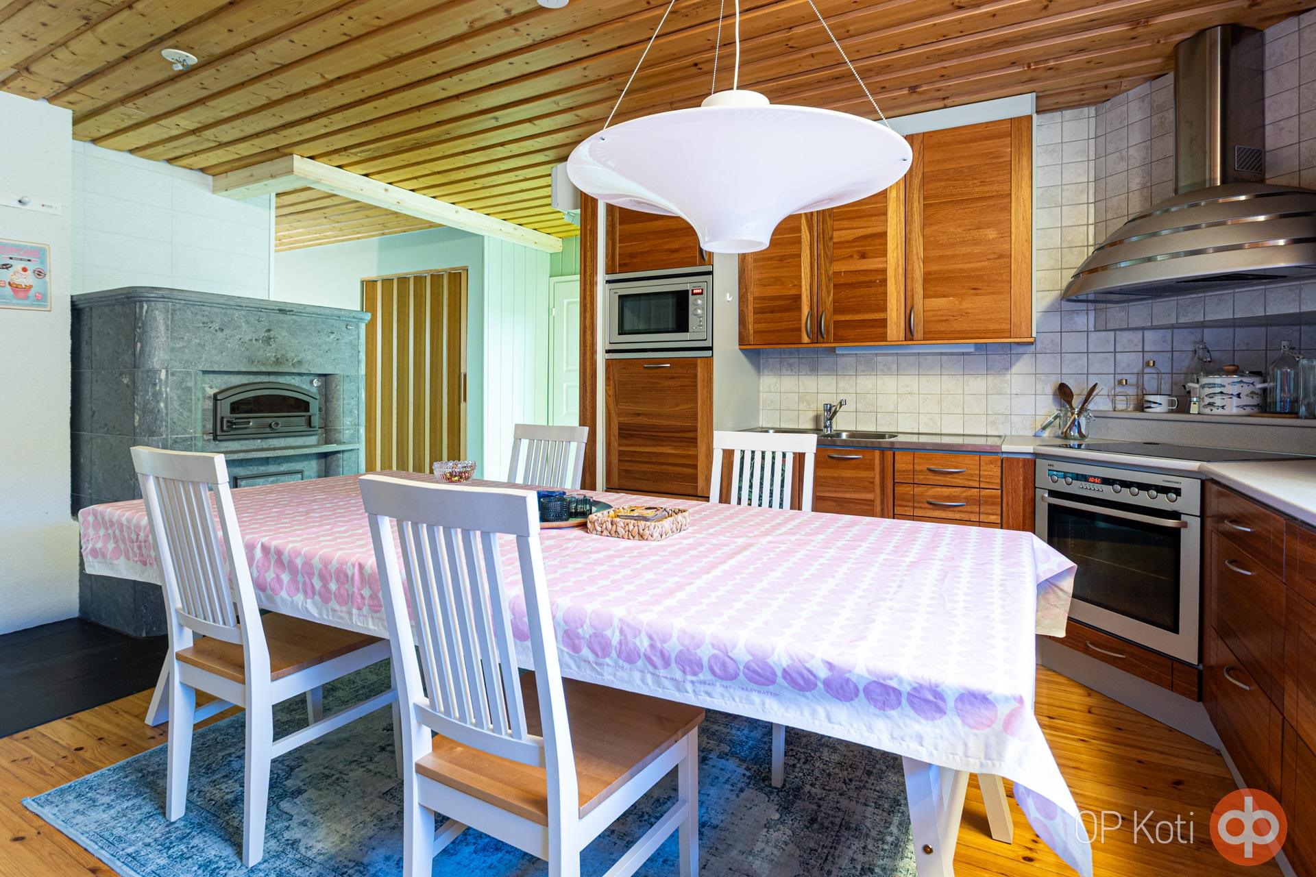- Jääkaappi 2024, pakastekaappi, erillisuuni AEG kiertoilmauuni, liesitaso keraaminen, leivinuuni Tulikivi, 2024, mikroaaltouuni integrjoitu kalusteisiin, astianpesukone 2024, kaapistot Nelko 2008, puuovet, kiinteät valaisimet. Keittiöremontti 2008. Kylmiö purettu pois 2023 ja paikalle tehty iso leivinuuni. Leivinuuni otettu käyttöön 12/2024. Tehty rakennusvalvonnan alaisuudessa asennuspalvelua käyttäen. Muutokset tehty talon piirustukiin ja rakennusvalvonta hyväksynyt. Takuu 5 v. käyttöönotosta. Jääkaappi ja astianpesukone uusittu 2024.