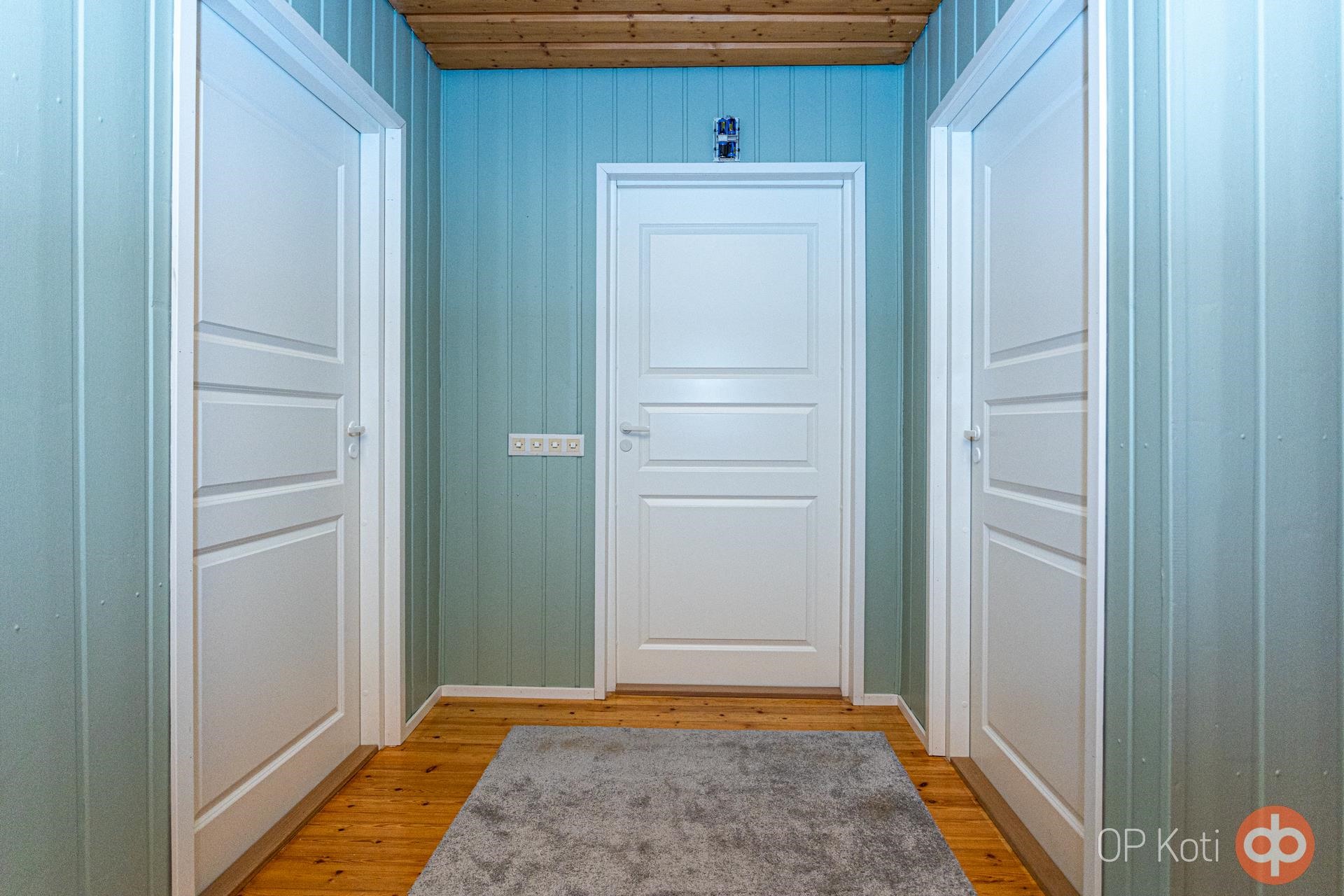 Keittiö: ponttilauta/laatta/paneeli. Olohuone: ponttilauta/maalattu paneeli ja maali/paneeli. Makuuhuone 1: ponttilauta/tapetti ja maalattu paneeli/paneeli. Makuuhuone 2: ponttilauta/maali ja maalattu paneeli/paneeli. Makuuhuone 3: ponttilauta/maali ja maalattu paneeli/paneeli. Kodinhoitohuone: muovi/paneeli ja maalattu levy/paneeli. Sauna: laatta/paneeli/paneeli. Kylpyhuone: laatta/laatta/paneeli. Eteinen: ponttilauta/maalattu paneeli/paneeli. Wc: laatta/laatta/paneeli. Takkahuone: ponttilauta/paneeli/paneeli.