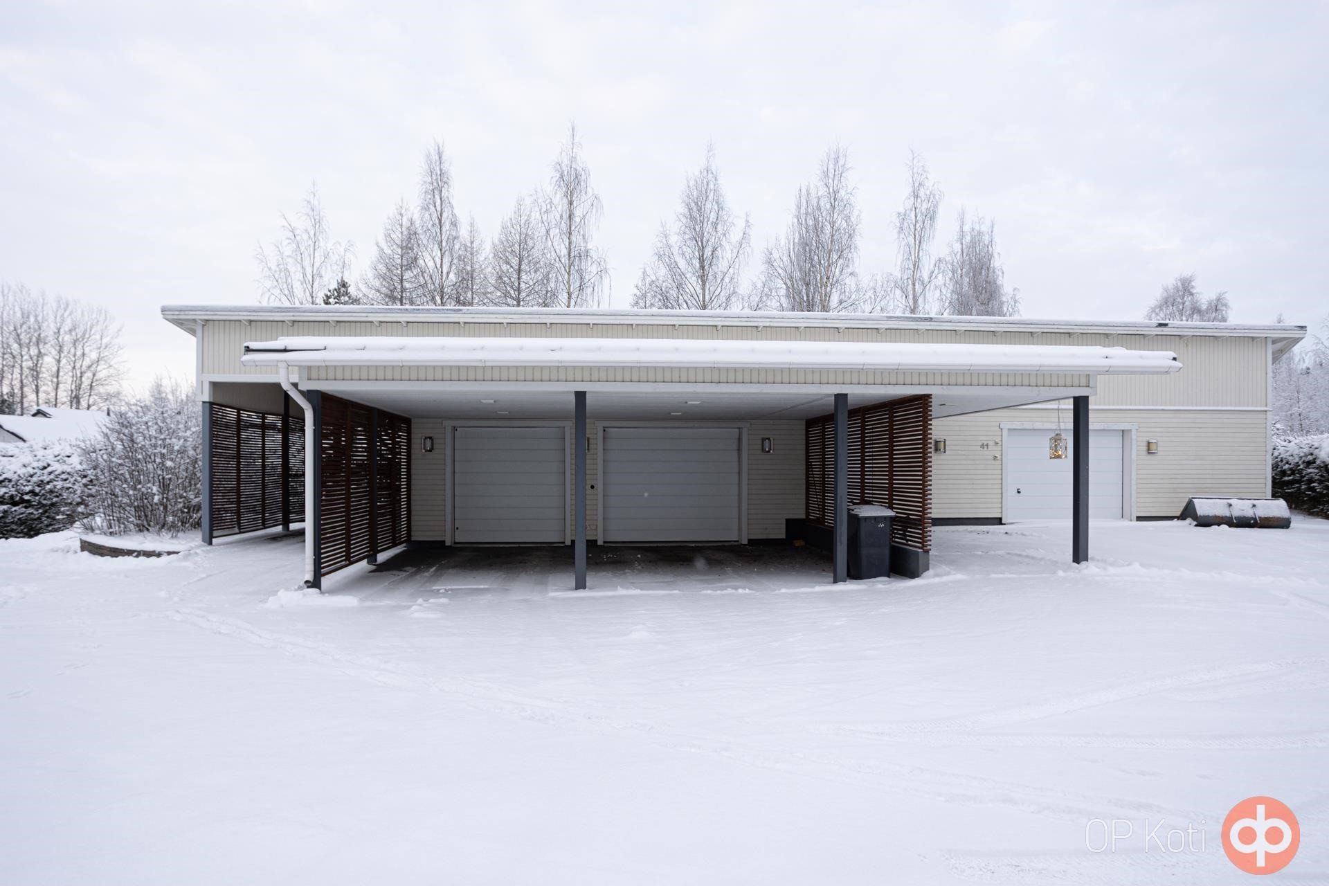 Suuri tontti tarjoaa lisäksi tilat ajoneuvojen säilytykseen ja harrastusvälineiden varastointiin. Sisääntulon yhteydessä sijaitsevassa 172-neliöisessä autotallissa on tilaa kahdelle autolle sekä sähköauton latauspiste, varmistaen harrastus- ja kuljetusvälineiden turvallisen, käytännöllisen ja arvokkaan säilytyksen.