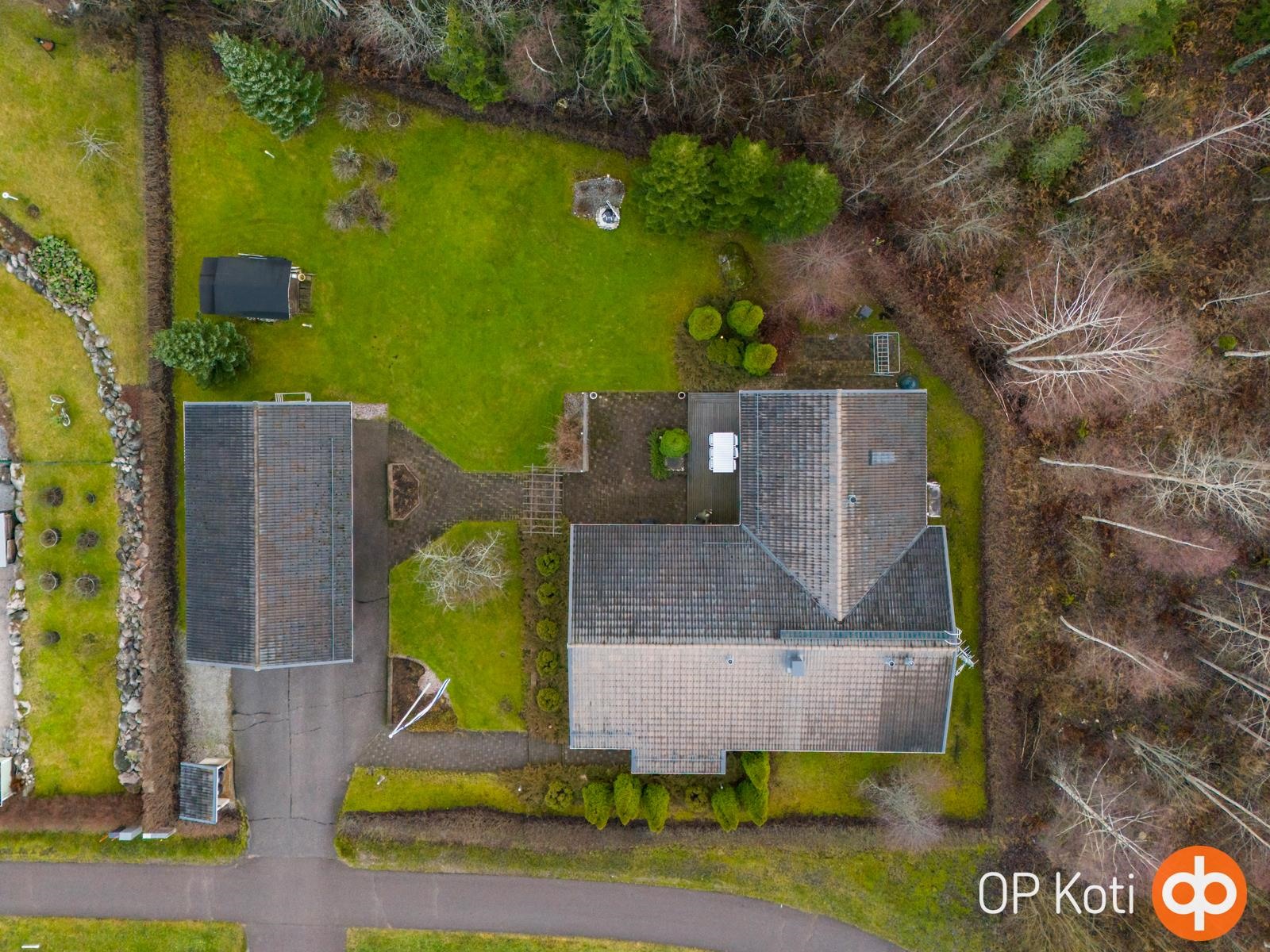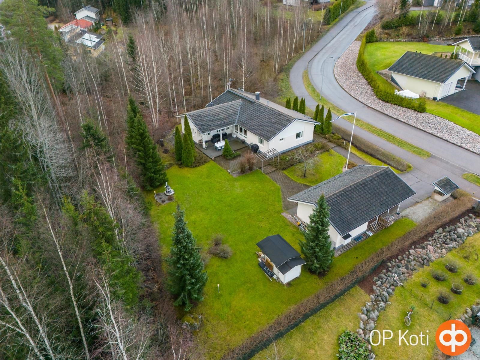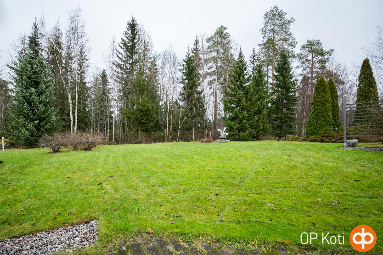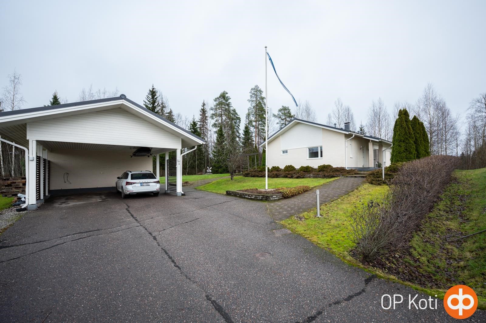 Suojaisa terassi takapihan puolella ja tasainen ja kaunis nurmikkopiha tarjoaa turvallisen ympäristön lasten leikeille ja vapaa-ajan viettoon. Pihapiirissä on erillinen kahden auton autokatos sekä lämmin varasto, jonka koko on noin 30 m².