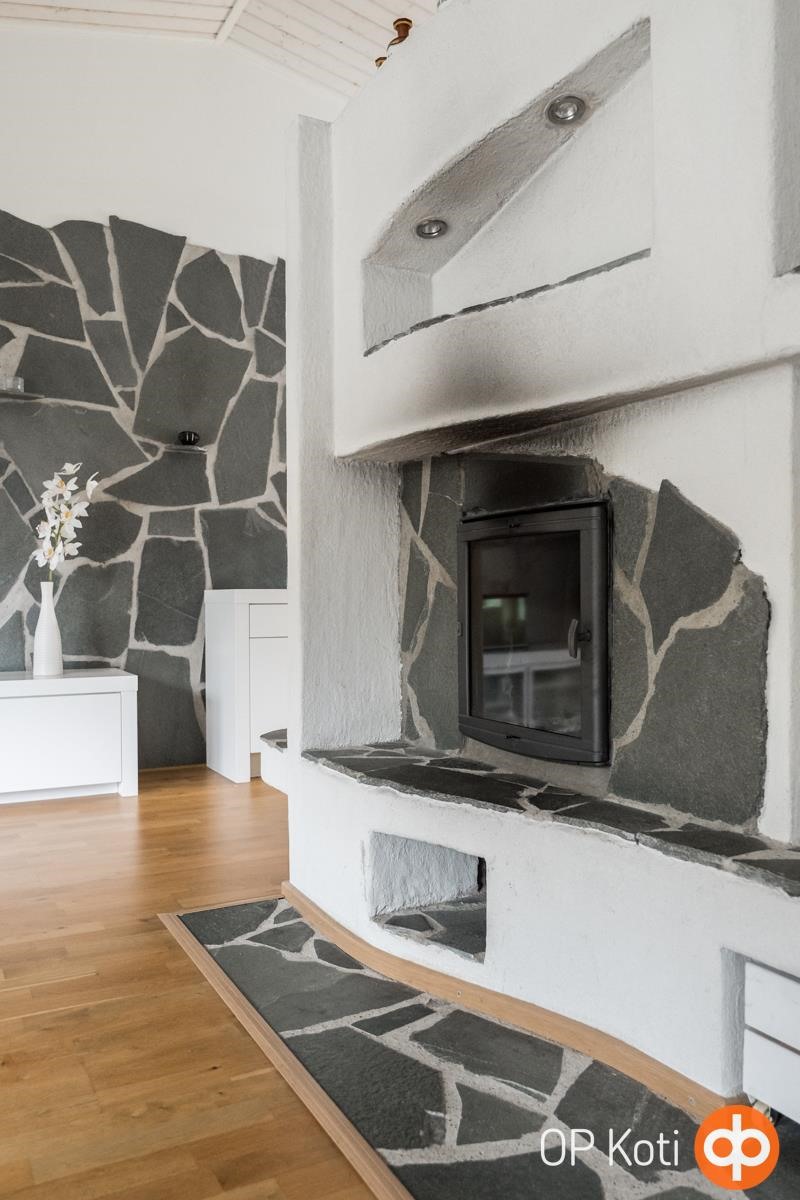 - Lattialämmitys vesi. Lisänä ilmalämpöpumppu, varaava takka ja leivinuuni.