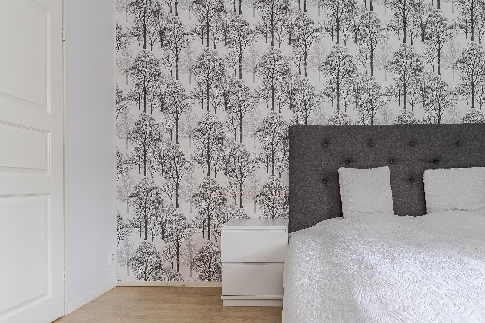Keittiö: laatta/maali. Olohuone: parketti/tapetti. Makuuhuone 1: parketti/tapetti. Sauna: laatta/paneeli. Kylpyhuone: laatta/laatta. Eteinen: laatta/maali. Wc: laatta/laatta.