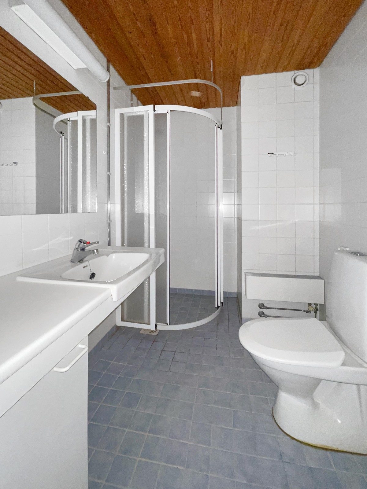 - Kylpyhuone, suihku, suihkukaappi, peilit, kaapit, pesukoneliitäntä, kiinteät valaisimet.