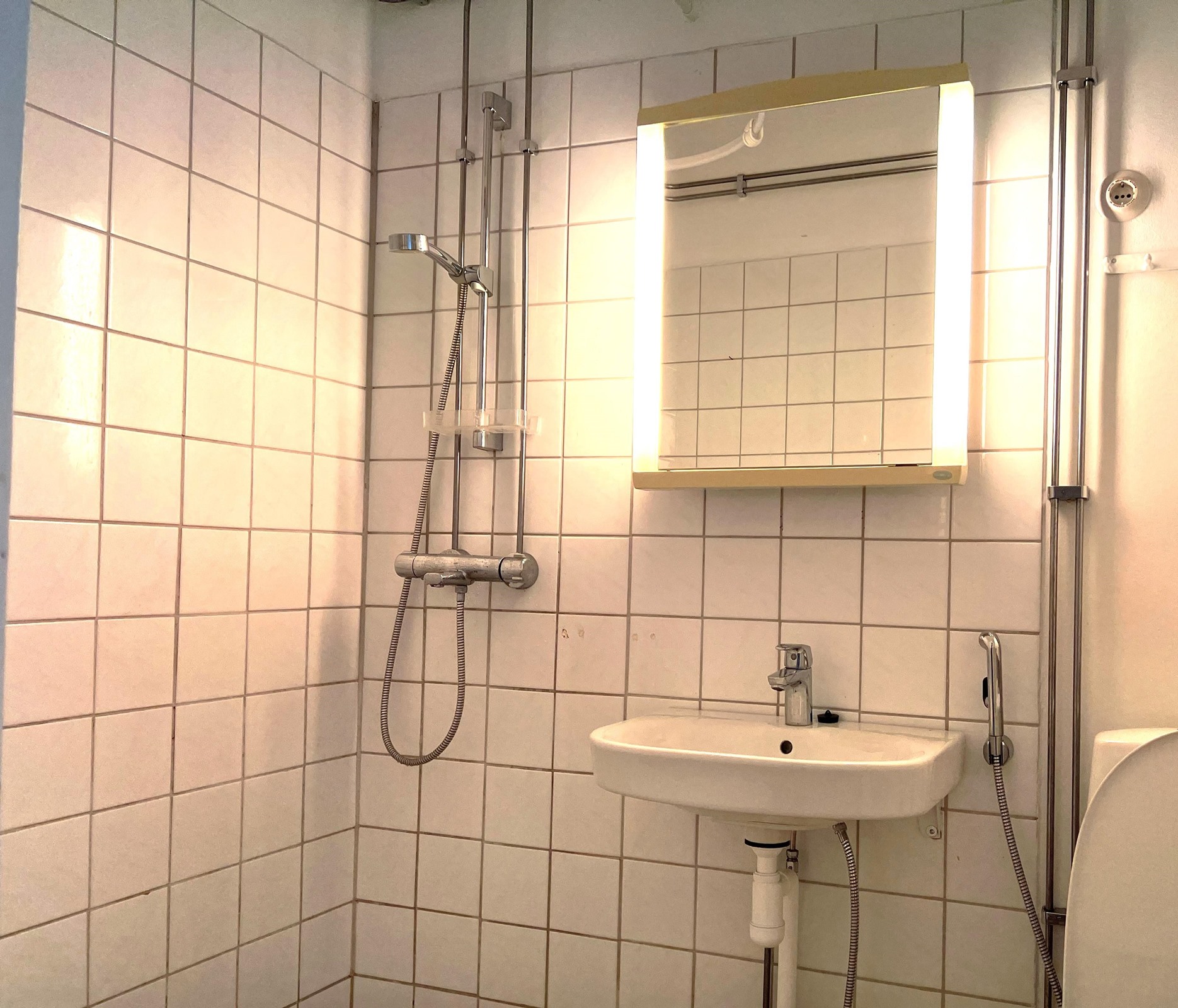 - Kylpyhuone, suihku, peilit, pesukoneliitäntä, kiinteät valaisimet.
