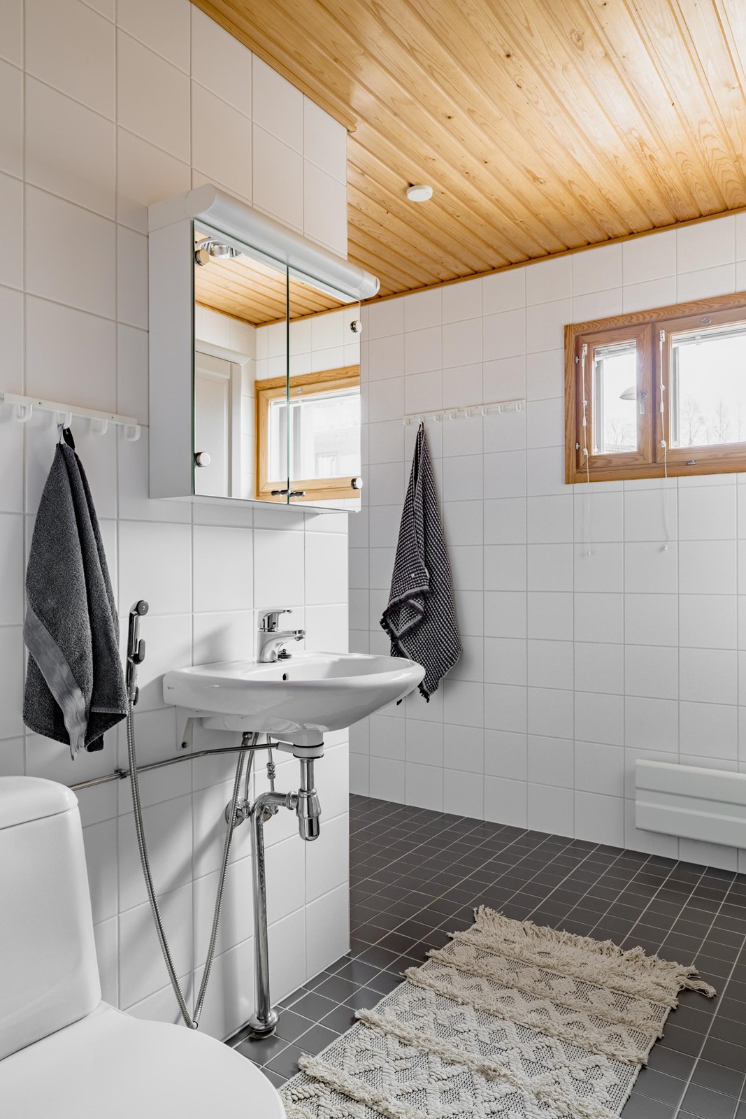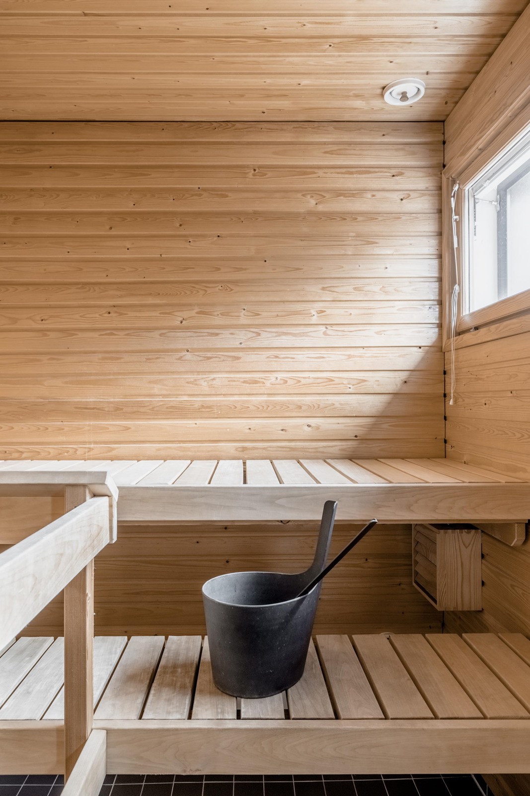- Sauna, sähkökiuas, kylpyhuone, erillinen wc, suihku, peilikaappi, kaapit, allaskaappi, pesukoneliitäntä, lattialämmitys, kiinteät valaisimet.