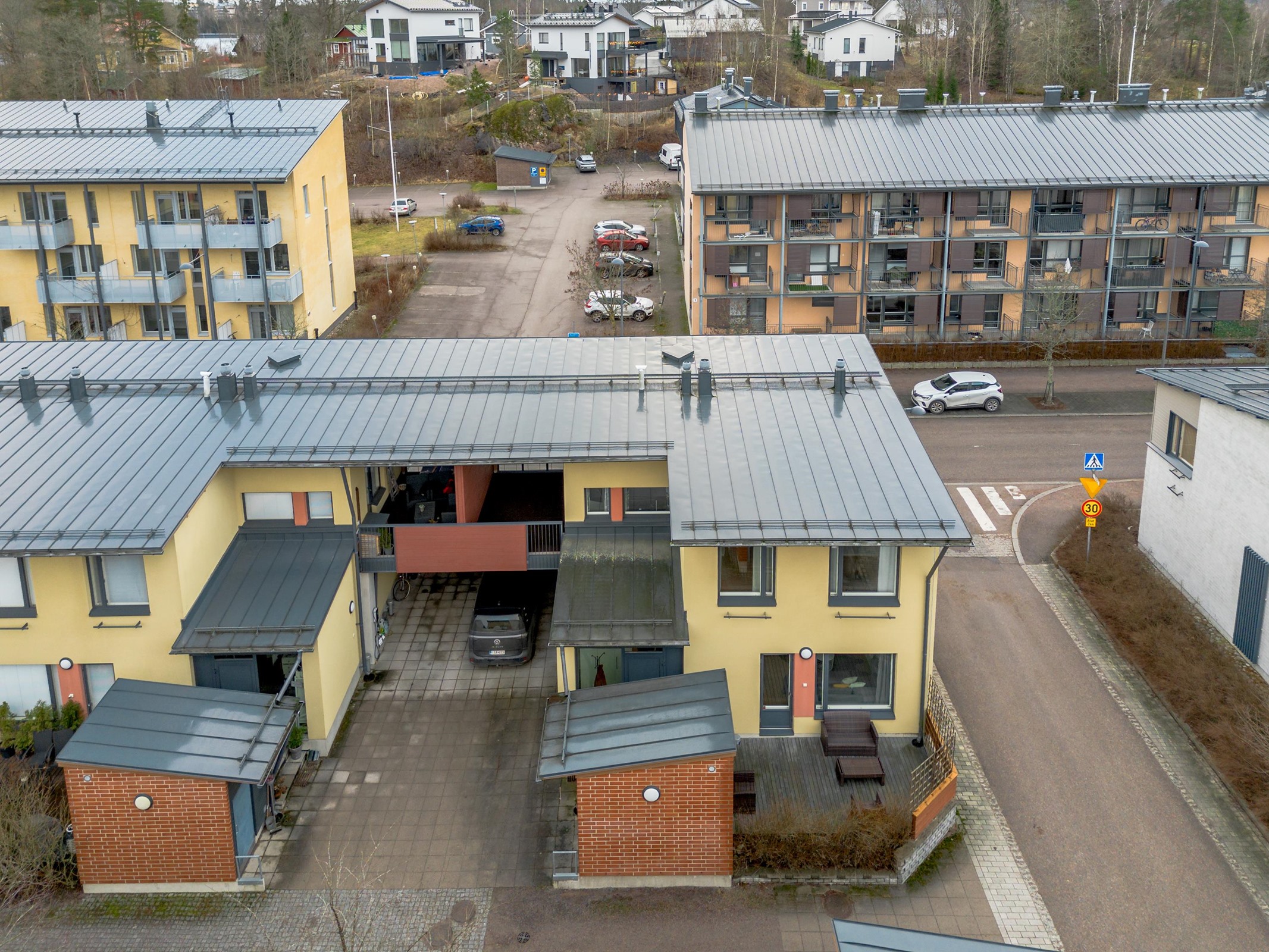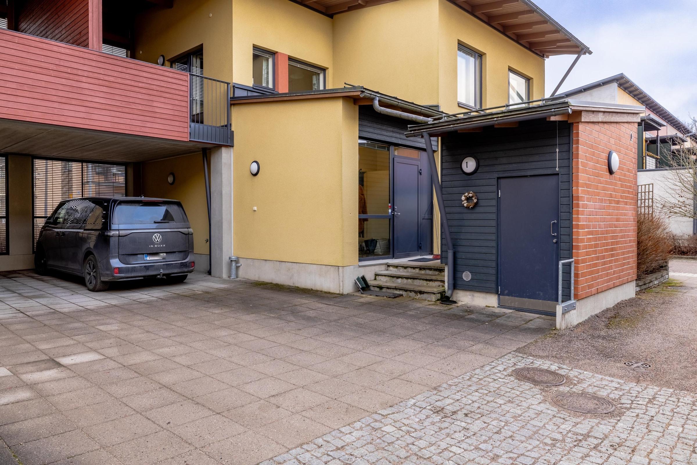Asunnon välittömässä yhteydessä on tilava autokatos ja pihaan saat toisenkin auton pysäköityä. Tämä on erityisen kätevää perheille, joilla on useampi ajoneuvo käytössään.