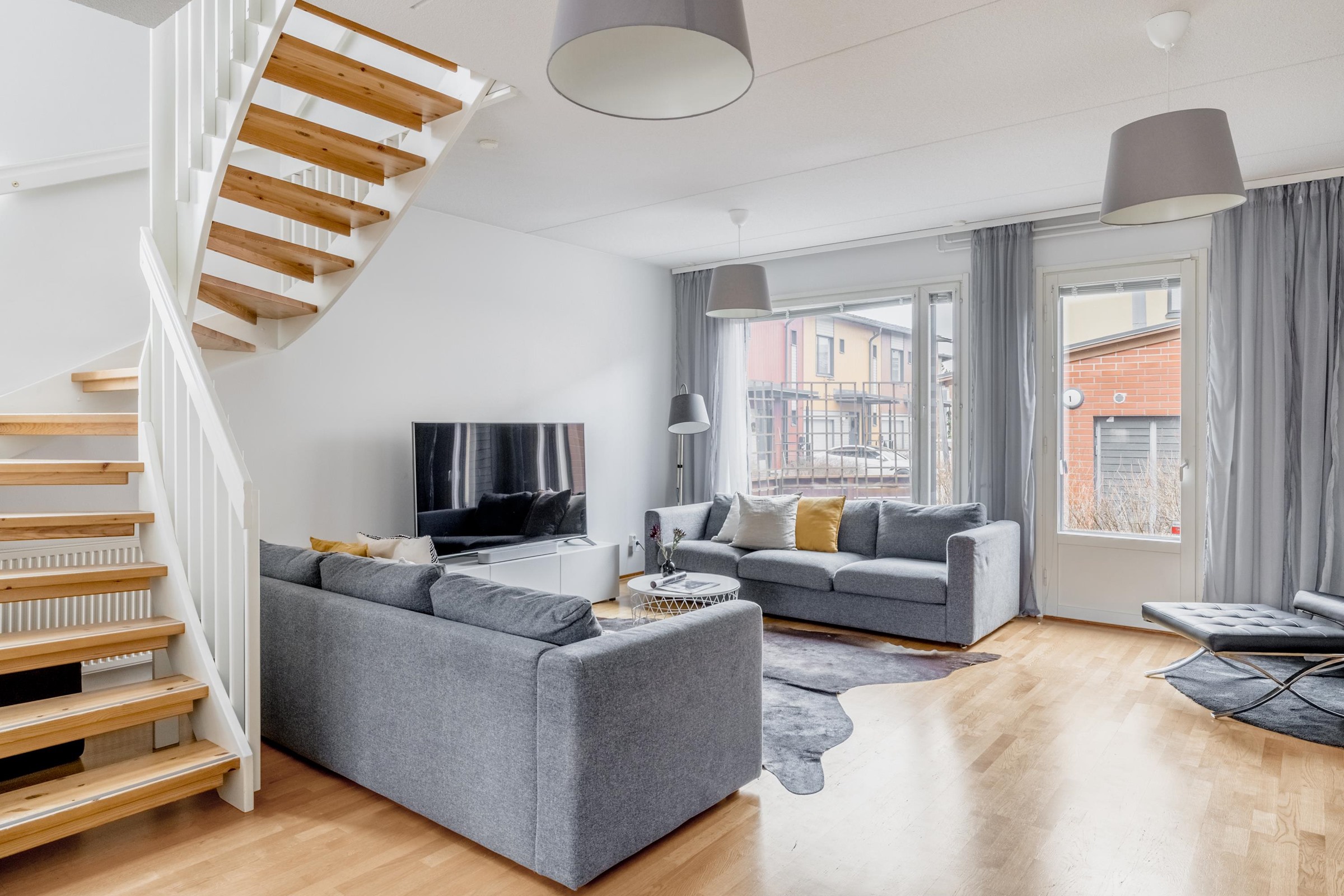 Asunto on siistissä ja muuttovalmiissa kunnossa. Seinät on hiljattain maalattu lähes kauttaaltaan, mikä tuo raikkaan ja modernin ilmeen kodin sisätiloihin. Suuret ja avarat huoneet tarjoavat runsaasti tilaa perheen arkeen ja juhlaan, ja tilaratkaisut on suunniteltu erittäin toimiviksi. Naapurin kanssa yhteisiä asunnon seiniä ei ole, sillä asunnot on kytketty toisiinsa parvekkeen ja autokatoksen kohdalta.